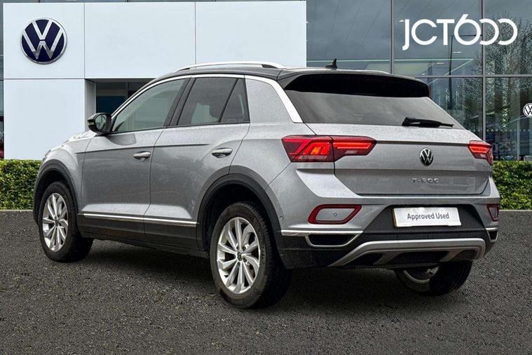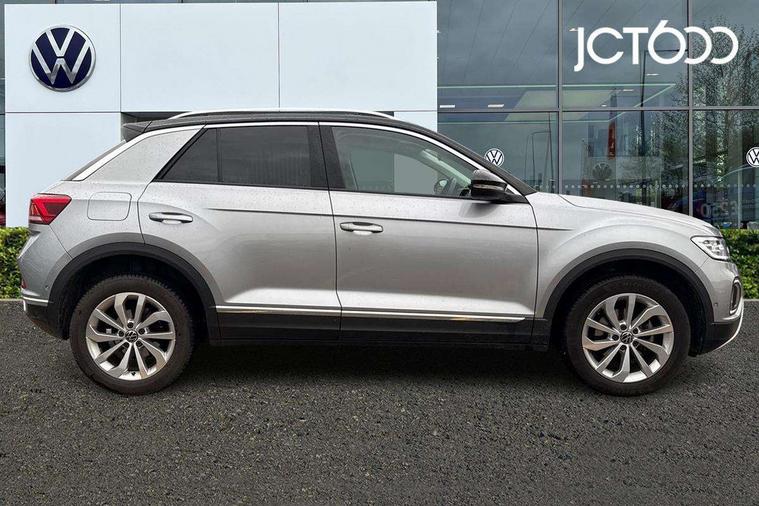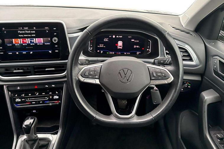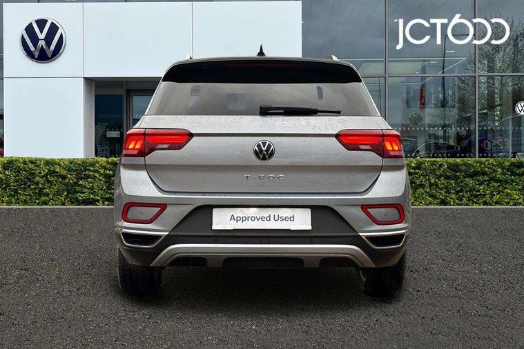 10.25" Digital cockpit pro, Bluetooth mobile phone interface, Driver alert system with fatigue detection, Driver tips and journey analysis, Emergency call service, Lane keeping system Lane Assist, Modified key software - reduce switch off time for key status change to Long no motion, Online services, Park assist including front and rear parking sensors, Service interval indicator, Tailgate/trunk lid release from outside, Think blue trainer driver tips and journey analysis, Warning sound and light for front seatbelts unfastened, Wireless app connect, Battery regeneration during braking, Start/stop function with battery regeneration, Diversity antenna for FM reception, Front and rear 6 speakers, Music playback - MP3, WMA and AAC files, Premium USB cable in choice of either Apple or Android smartphone compatibility, SD card slot, Simultaneous pairing of 2 compatible mobile devices, Title and cover art display, We Connect and We Connect Plus functionality, 3rd brake light, Auto dimming interior rear view mirror, Automatic hazard lights activation under emergency braking, Automatic headlight control with LED separate daytime running lights with coming/leaving home function, Body colour sports bumpers with silver metallic underbody fascia, Dynamic headlight range control with self adjusting whilst driving, Extended roof spoiler, Exterior mirrors aspherical on driver side, convex on front passenger side, External USB type C socket and charging sockets, Front windscreen wiper with intermittent wipe and 4 position delay, Heated rear window, LED Plus headlamps, LED rear combination lamps, LED rear number plate lights, LED tail lamp rear comination lamps, Light mode for poor weather, rain, fog or snow, Power windows with comfort operation and circuit breaker, Rain sensor, Rear exhaust tailpipe, Rear fog light on one side and reversing lights on both sides, Rear side wing doors, Rear wash/wipe with intermittent wipe setting, Remote electrically foldable door mirrors, puddle lights and reverse activated passenger's door mirror, 12V power socket in centre console, 3 rear head restraints, 3 seat bench in 2nd row, 4 load lashing points in luggage compartment, Air care climatronic air conditoning system with active combination filter and 2-zone temperature control, Chrome plated radiator grille inserts, air vent surrounds and light switch surrounds, Door and side trim panel with leatherette insert, Drawer under drivers seat, Front + rear carpet mats, Front centre armrest, Front comfort sports seats, Front cupholders x 2, Front footwell illumination, Instrument lighting, white adjustable panel illumination, Interior ambient lighting and surround lighting, Interior light delay, Isofix child seat preparation, Leather gearshift handle, LED interior light with switch off delay/dimmer and 2 front/rear LED reading lights, Load-through provision with cup holder when folded down ('Unsplit rear seat bench, split folding backrest, with centre armrest), Luggage compartment lighting, Non-folding front passenger seat backrest, Single front passenger seat, Storage compartment in left and right luggage area, Storage compartment in rear doors, Storage compartments in driver and front passenger doors, Sunvisors with illuminated vanity mirrors, Variable boot floor, height adjustable and removable, Driver assistance pack without proactive passenger protection - T-Roc, 3 point height adj front seatbelts + pretensioners, 3 point seatbelts in outer rear with ECE label, ABS, Child locks on rear doors, Driver and front passenger airbag with front passenger airbag deactivation, Driver and front passenger safety-optimised head restraints, Drivers seatbelt reminder, Electronic parking brake, Electronic Stability Control (ESC) inc EDL (Electronic Differential Lock) and ASR (Traction Control), Front and rear passengers curtain airbag system including front side airbags, Front assist with city emergency braking and pedestrian monitoring, Front seat side impact airbags, Predictive pedestrian protection, Rear disc brakes, Single tone horn, Tyre pressure loss indicator, Volkswagen roadside assistance, Alarm with interior protection, Anti-theft alarm system with interior monitoring, backup horn, and towing protection, Remote central locking with SAFELOCK, radio remote control with 2 remote control folding keys, Trims for alloy wheels,