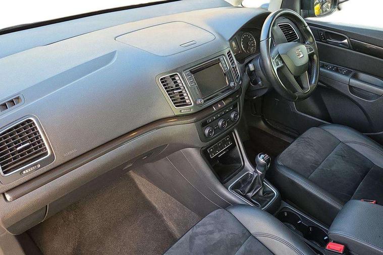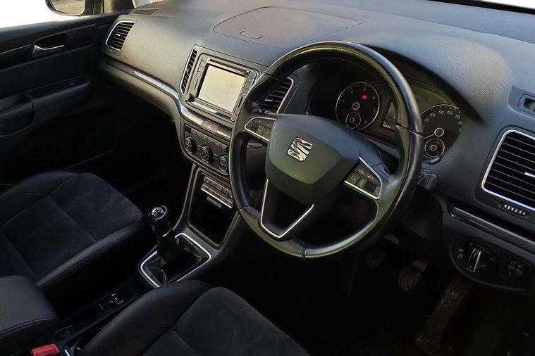 Cruise control, Driver alert system, Electric speed sensitive power steering, Front and rear parking sensors, Low fuel warning light, Multi function display, Outside temperature gauge, Stop/start system, Trip computer, Voice control system, Diesel particulate filter, Electronic limited slip differential, Sports suspension, 6.5" touchscreen, 8 Speakers, Auxiliary input socket, Bluetooth audio streaming, MDI with USB/iPod connection cables, MP3 compatible radio/single CD player, 'Guide me home' headlamps, Auto dimming rear view mirror, Automatic lights on sensor, Automatic rain sensing wipers, Body colour bumpers, Body colour door handles, Body colour door mirrors with integral indicators, Chrome roof rails, Chrome side window trim, Chromed centre radiator grille surround, Cornering front fog lights, Dark tinted rear glass, Electric folding door mirrors with puddle lamps, Electric headlight adjustment, Electric heated + adjustable door mirrors, Electric tailgate and sliding rear side doors, Electric tilt/slide panoramic sunroof, Front and rear electric windows, Heated washer nozzles, High beam assistant, LED tail lights, Rear wiper, Reverse activated kerb-view adjustment on passenger's door mirror, 12 way electric front seats, 230V AC inverter, 3 spoke leather steering wheel, 3 x 12V power sockets, 3 zone climate control, 4 cupholders, 4 Lashing eyes in boot, Adjustable front armrest with storage compartment, Adjustable head restraints, Comfort front sports seats, Dashboard storage with cover, Driver's seat memory, Easy entry seats, Electric sunshade for sunroof, Folding rear seats, Front seat and rear pockets, Front seat back fold out tables with cupholders, Front/rear door stowage bins, Front/rear floor mats, Front/rear reading lights, Heated front seats, Height/reach adjust steering wheel, Integrated sunblind for rear side windows, Isofix child seat preparation, Leather gear knob, Leather upholstery, Lockable/illuminated air conditioned glovebox, Multi function steering wheel, Overhead console with sunglasses holder, Rear air conditioning with separate controls, Reclining 2nd row seats, Removable load compartment cover, Sunvisors with illuminated vanity mirrors, Under floor storage in 2nd row, Seat navigation pack with rear view camera - Alhambra, 3 point seatbelts on all seats, ABS, Auto hold function, Automatic post collision braking, Driver and passenger airbags, Drivers knee airbag, Electrically operated child locks on rear doors, Electronic parking brake, ESP+EBA, Front and rear curtain airbags, Front and rear seatbelt reminder, Front side airbags, Height adjustable front seatbelts with pre-tensioners and load limiters, Passenger airbag deactivate switch, Tiredness recognition system, Tyre pressure monitoring system, Electronic engine immobiliser, Locking wheel bolts, Volumetric alarm with back up horn, Chrome effect dashboard facia, Metal Eye II door & dashboard decorative inserts, Self sealing tyres, Tyre repair kit,