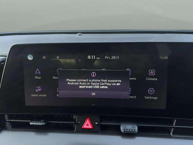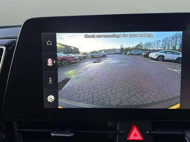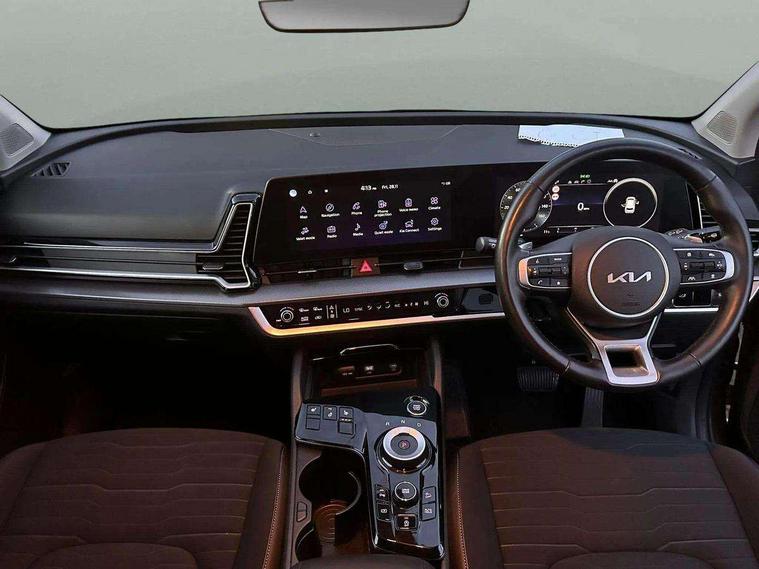 12.3" Display with navigation, 12.3" supervision colour cluster display, Apple car play/Android Auto with voice control, Drive mode selector, E-call, Forward collision avoidance assist (FCA) - city/pedestrian/cyclist/junction covering, Front and rear parking sensors, Highway Driving Assist (HDA), Intelligent speed limit assist, Kia Connect (UVO), Lane Following Assist (LFA), Lane keep assist, Low washer fluid warning, Rear view monitor, Reversing camera system integrated into centre fascia screen, Smart cruise control with stop and go functionality, Speed sensitive power steering, Trip computer, Windscreen washer level indicator, Intelligent Stop and Go, 6 speaker audio system, Bluetooth audio streaming, DAB Radio with MP3, Rear USB port, Steering wheel mounted audio controls, USB C type charging ports on centre console, USB C type charging ports on side of front seats, USB port for connection of a media device, All round electric windows with drivers and front passenger auto up/down function, Automatic headlight control system, Automatic window defogger, Backlite glass heated with timer, Black side sill and wheel arch body mouldings, Body colour and black bumper with silver accents, Body colour door mirrors, Body colour exterior door handles, Electrically adjustable/heated/folding door mirrors with LED indicators, High beam assist, Interior electrochromic mirror, LED daytime running lights, LED front fog lamps, LED headlamps (low and high beam - MFR type), LED High mounted stop light, Rain sensing wipers with aero blades, Rear fog lamp, Rear privacy glass, Rear side wing doors, Rear skid plate - silver, Rear spoiler, Rear wiper, Satin finished beltline, Silver radiator upper garnish and door garnish, Silver roof rack, Trailer stability assist, 12V power socket in front centre fascia and luggage compartment, 2nd row personal lamps, 3 seat bench in 2nd row, 3 x passenger assist grips, 40/20/40 split folding rear seat, All-round height adjustable headrests, Centre console storage box, Cloth/faux leather upholstery, Cupholders in rear armrest, Door courtesy lamps, Drink holder at centre armrest, Driver and front passenger side sunvisors with illuminated vanity mirrors, Drivers seat power lumbar support, Dual zone climate control, Electric height adjustable front seats, Front and rear door storage, Front seat and rear pockets, Front/rear centre armrests, Gear shift indicator, Glovebox illumination, Heated front and outer rear seats, Heated steering wheel, Interior door lock/unlock function, ISOFIX Child seat top tethers and anchor fixings outer rear seats, Leather steering wheel, Luggage area light, Luggage area load cover, Luggage net with hooks, Metal paint interior door handles, Overhead console lamp, Paddle shift controls, Rear coat hooks, Single front passenger seat, Tilt/telescopic adjustable steering wheel, Ventilation ducts to rear compartment, Active front headrests, All round 3-point seatbelts, Anti-lock braking system (ABS), Dual front side airbags, Dual horn, Electronic parking brake, Electronic stability control with downhill brake control, Front passenger airbag cut-off switch, Front seatbelt pretensioners + load limiters, Height adjustable front seatbelts, Hill start assist control (HAC), Impact sensing auto door unlocking, Multi collision brake assist, Rear door child safety locks, Rear seat alert system, Traction control, Twin curtain airbags, Twin front airbags, Tyre pressure monitoring system, Advanced anti-theft system including immobiliser and alarm, Door deadlocks, Engine Start/Stop Button with Smart Entry System, Locking wheel nuts, Speed sensitive auto door locking, Visible vehicle identification number, Aluminium pattern finish centre fascia and door garnish, 18" Alloy wheels, Tyre mobility kit,