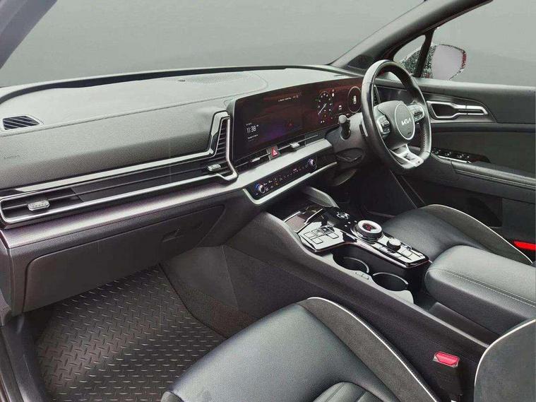 12.3" Display with navigation, 12.3" supervision colour cluster display, 360 degree around view monitor, Apple car play/Android Auto with voice control, Blind spot collision avoidance assist, Blind spot view monitor, Drive mode selector, E-call, Forward collision avoidance assist (FCA) - city/pedestrian/cyclist/junction covering, Front and rear parking sensors, Highway Driving Assist (HDA), Intelligent speed limit assist, Kia Connect (UVO), Lane Following Assist (LFA), Lane keep assist, Low washer fluid warning, Parking collision avoidance assist (PCA), Remote smart parking assist, Reversing camera system integrated into centre fascia screen, Smart cruise control with stop and go functionality, Smart power tailgate, Speed sensitive power steering, Trip computer, Windscreen washer level indicator, Wireless Smartphone charger, Intelligent Stop and Go, Terrain mode select (Mud, Snow, Sand), Bluetooth audio streaming, DAB Radio with MP3, Harman Kardon premium sound system, Rear USB port, Steering wheel mounted audio controls, USB C type charging ports on centre console, USB C type charging ports on side of front seats, USB port for connection of a media device, All round electric windows with drivers and front passenger auto up/down function, Automatic headlight control system, Automatic window defogger, Backlite glass heated with timer, Body colour and black bumper with silver accents, Body colour exterior door handles, Body colour radiator upper garnish and door garnish, Dual LED adaptive headlamps, Electric panoramic glass sunroof (Electric one touch with safety function), Electrically adjustable/heated/folding door mirrors with LED indicators, Front and rear chrome skid plates, Gloss black door mirrors, Gloss black radiator grille, Gloss black side sill and wheel arch body mouldings, Glossy black roof rack, High beam assist, Interior electrochromic mirror, LED daytime running lights, LED front fog lamps, LED High mounted stop light, LED rear combination lamp, Rain sensing wipers with aero blades, Rear fog lamp, Rear privacy glass, Rear side wing doors, Rear spoiler, Rear wiper, Satin finished beltline, Tinted rear glass, Trailer stability assist, 10 way driver/8 way passenger electrically power adjustable seats, 12V power socket in front centre fascia and luggage compartment, 3 seat bench in 2nd row, 3 x passenger assist grips, 40/20/40 split folding rear seat, All-round height adjustable headrests, Ambient lighting, Black headlining, Centre console storage box, Cupholders in rear armrest, D-Shaped sports leather steering wheel and perforated inserts with GT-Line logo, Door courtesy lamps, Drink holder at centre armrest, Driver and front passenger side sunvisors with illuminated vanity mirrors, Driver seat memory function, Drivers seat power lumbar support, Front and rear door storage, Front seat and rear pockets, Front/rear centre armrests, Gear shift indicator, Glovebox illumination, Heated front and outer rear seats, Heated steering wheel, Interior door lock/unlock function, ISOFIX Child seat top tethers and anchor fixings outer rear seats, LED interior personal lamp, LED lighting in overhead console, Luggage area LED light, Luggage area load cover, Luggage net with hooks, Metal paint interior door handles, Paddle shift controls, Rear cabin light, Rear coat hooks, Single front passenger seat, Sports pedals, Suede leather upholstery, Three zone climate control, Tilt/telescopic adjustable steering wheel, Ventilated front seats, Ventilation ducts to rear compartment, Active front headrests, All round 3-point seatbelts, Anti-lock braking system (ABS), Dual front side airbags, Dual horn, Electronic parking brake, Electronic stability control with downhill brake control, Front passenger airbag cut-off switch, Front seatbelt pretensioners + load limiters, Height adjustable front seatbelts, Hill start assist control (HAC), Impact sensing auto door unlocking, Multi collision brake assist, Rear door child safety locks, Rear seat alert system, Traction control, Twin curtain airbags, Twin front airbags, Tyre pressure monitoring system, Advanced anti-theft system including immobiliser and alarm, Door deadlocks, Engine Start/Stop Button with Smart Entry System, Locking wheel nuts, Speed sensitive auto door locking, Visible vehicle identification number, Aluminium pattern finish centre fascia and door garnish, 18" Alloy wheels, Michelin tyres, Tyre mobility kit,