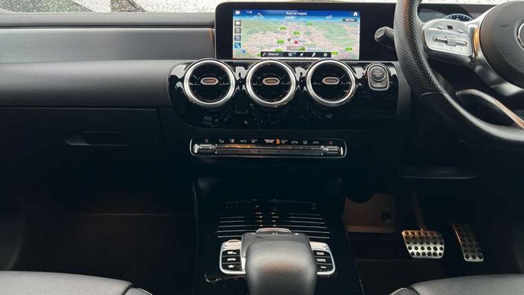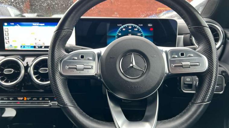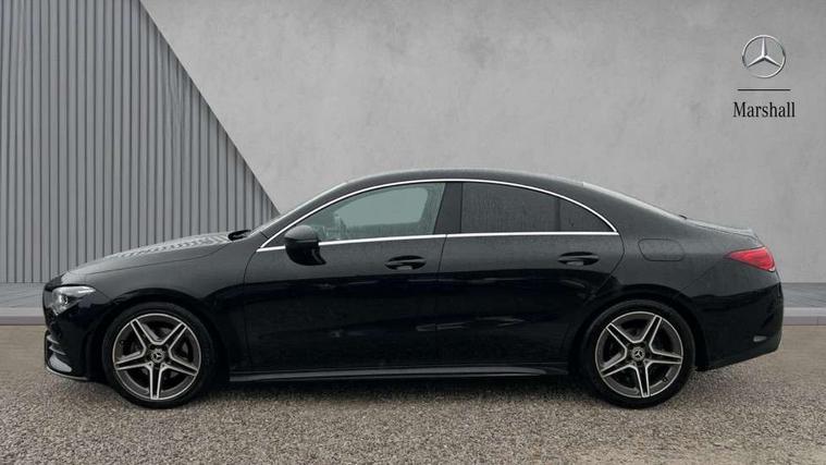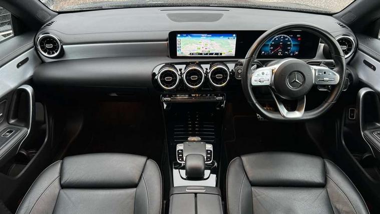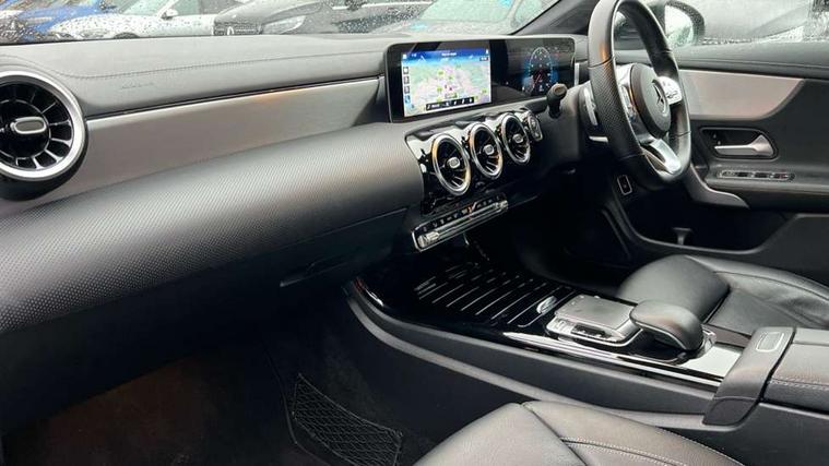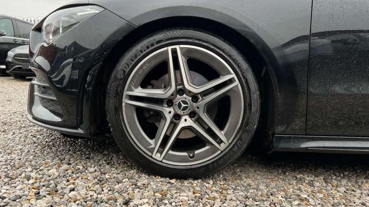 10.25 inch touchscreen central media display, 7 inch Instrument display with digital cockpit, Active lane keeping assist, Attention assist - Monitors steering behaviour and long journey fatigue, Cruise control with limiter, Direct steer system with speed sensitive power steering, Dual bluetooth interfaces, DYNAMIC SELECT with a choice of driving modes (ECO, Comfort, Sport, Sport+ and Individual), ECO start/stop function, Fluid level warning indicator for fuel, oil, coolant and washer fluid, Hard-disk navigation, Hey Mercedes Voice activation, Lamp failure indicator, Mercedes me connect including emergency call system, accident recovery, breakdown and maintenance management, Outside temperature gauge, Owners manual and service booklet in English, Pre-installation of private car share, Preinstallation for Mercedes Benz link, Radio aerial integrated into front and rear windshields, Service indicator (ASSYST), Smartphone integration with Apple CarPlay and Android auto, Speed limit assist, Trip computer in multifunction display with current consumption indicator, Wireless charging, 7G-DCT 7 speed automatic transmission, Lowered comfort suspension, Rear axle multi-link, DAB digital radio tuner, MBUX multimedia system with DAB digital radio and touchpad including satellite navigation, Mercedes Benz sound system (100 W) with 6 speakers, USB (type C) ports (2) in stowage compartment and 1 in front of centre console, Adaptive brake lights, AMG body styling with AMG front apron and rear apron and visible exhaust tailpipe trim elements, AMG bodystyling side skirts, Beltline strips and weather strip in chrome, Body colour bumpers, Body colour door handles with chrome inserts, Diamond radiator grille pins in chrome with silver painted louvres and chrome insert, Electric windows, Electrically adjustable and heated door mirrors with integrated LED indicators, Exhaust system with 2 Visible tailpipe trim elements and rear apron with trim in chrome, Headlamp assist automatic headlamp activation, Heated glass rear windscreen + timer control, High level LED third brake light, LED high performance headlamps with integrated LED daytime running lights, LED tail lamp, Privacy glass with dark tinting on rear side windows and rear window, Rain sensing windscreen wipers with two sensitivity settings, Rear fog lamp, Vehicle Monitoring, Vehicle Setup, 3 spoke flattened bottom nappa leather multifunction steering wheel with perforated leather in grip area, 40:20:40 split folding rear seat backrests, Air conditioning - Two zone thermotronic luxury automatic climate control with display, Air vents with surround in silver chrome, Automatic child seat recognition sensor, Black roof lining, Brushed stainless steel sports pedals with rubber studs, Floor mats with stitched AMG lettering, Front centre armrest with stowage, Front door sills with Mercedes Benz lettering, Front seat cushion length adjustment, Galvanished gear shift paddles on steering wheel, Heated front seats, Illuminated glove compartment stowage, Luggage net on driver/front passenger seat backrest, Manually adjustable front seats, Manually height and reach adjustable steering column, Rear interior lamp, Spectacles compartment for driver, Sport seats with fixed head restraints, Stowage compartment in centre console with retractable cover, Sunvisors with illuminated vanity mirrors, Touchpad on center console, Twin front cupholders, Two outer rear seat isofix and top tether child seat fixing points, Light and sight pack - CLA, Mirror pack - CLA, Parking package - CLA, Seat comfort pack - CLA, Active bonnet pedestrain safety measure which detects an impact and raises bonnet by 65mm, Active brake assist includes forward collision warning system with autonomous braking, Adaptive brake assist with hold function and hill start assist, Anti-lock braking system (ABS), Black seat belts, Bonnet with power domes, Brake pad wear warning indicator, Childproof locks manually operated for rear doors and electrically operated for rear power windows, Crash responsive emergency lighting, Driver and front passenger head and sidebags, Driver and front passenger windowbags, Drivers knee airbag, Dual stage driver and front passenger airbags, Electric parking brake, Electronic stability programme with acceleration skid control, ESP curve dynamic assist, Front and rear seatbelt reminder, Front brake callipers with Mercedes Benz lettering, Front passenger seat occupancy sensor, Three point rear seat belts, Tyre pressure monitoring system, Warning triangle and first aid kit, Alarm system with immobiliser and interior protection -Thatcham category 1, Keyless Go starting function, Remote central locking and crash sensor with emergency opening function, Light aluminium with longitudinal grain interior trim, 18" 5 twin spoke design alloy wheels painted in titanium grey with high sheen finish, Summer tyres, Tirefit tyre sealant kit,