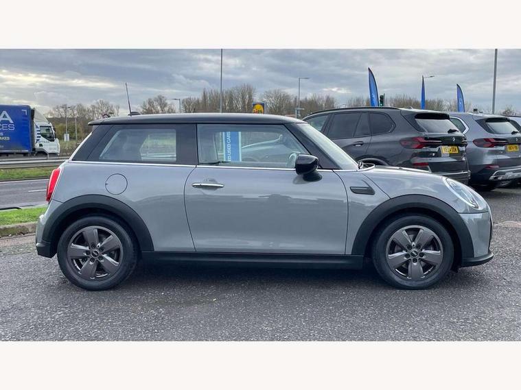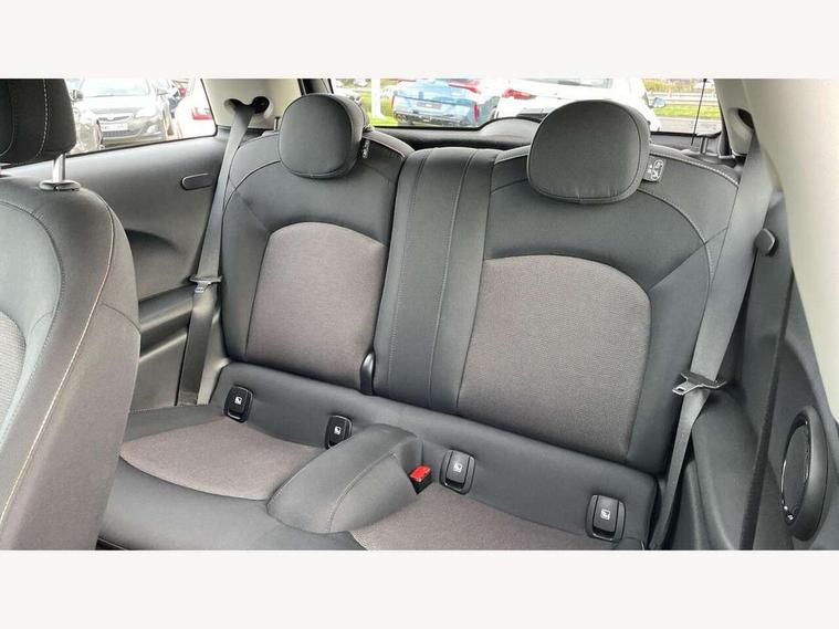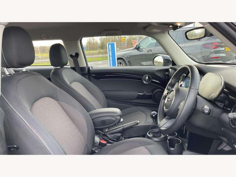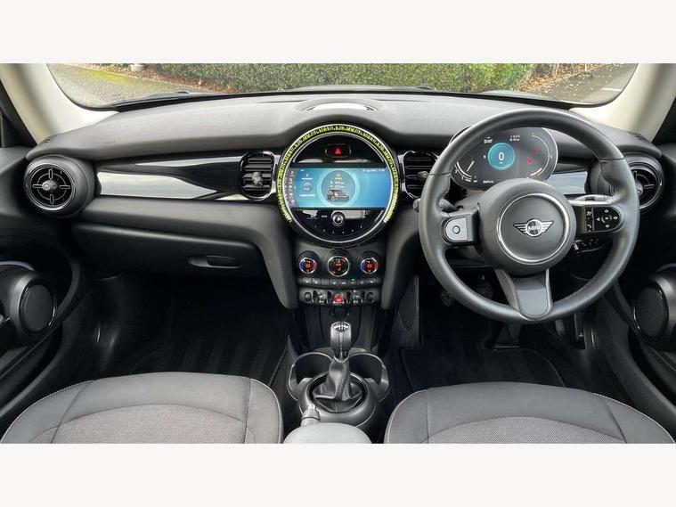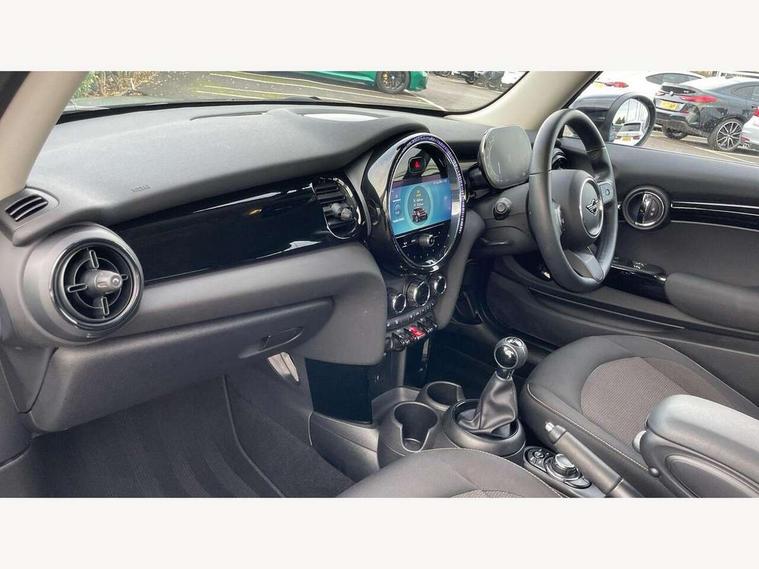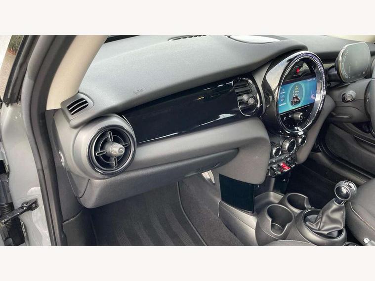Automatic start/stop function with brake energy recuperation, Compatible mobile phone bluetooth with audio streaming, Cruise control with brake assist, Electro-mechanical speed dependant steering assistance, Flexible car sharing preparation, Instrument cluster, Mini E-call, MINI TeleServices, On board computer, Service interval indicator, 6 Speed manual transmission including gear change indicator display, Double Vanos system, Fully variable valve control, High precision injection, Performance Control, 4 speakers in front door trims and underneath front seats, 8.8" touchscreen with LED ring, FM tuner and DAB digital radio, Automatic headlight activation switch, Body colour fuel filler cap, Chrome border high gloss black slats radiator grille, Dynamic brake lights, Electric front windows, Exhaust tailpipe on left with chrome finisher, Heated rear window, Heated windscreen washer jets, LED headlight with closed ring and daytime driving lights, Metal door sill strips with MINI imprint, Model logo Cooper on right of tailgate, Rain sensor window wipers, Rear fog lights, Rear LED lights with union jack design, Rear window wiper, Side scuttle panel with integrated indicator, Sun/heat protection glass, White indicator lenses, 12V Accessory socket in centre console, 4 lashing eyes in luggage compartment, 60/40 split folding rear seat, Ambient lighting, Carbon black colour line - Knee roll and door armrest, Chrome interior highlights, Cupholders, Front and rear head restraints, Front and rear isofix with front passenger airbag deactivation, Glove compartment, Height and length steering column adjustment, Interior lighting with 12 different colours across the dashboard, underneath door bezel with illuminated laser-engraved design on central display, Leatherette gearshift lever and handbrake gaiters, LED reading lights, vanity mirror lights, front foot well light and spotlight on front seats, Manual air conditioning, Mechanical seat adjustment - forward/back & backrest for front seats and driver seat height adjust, Multifunction steering wheel, Passenger seat height adjuster, Satellite grey headlining including grab handles and clothes hooks, Sport leather steering wheel with speed limiter and audio/communication controls, Storage compartments in doors, Sunvisors with vanity mirrors, Velour floor mats, 3 point seatbelts on all four seats, 6 Airbags - front, side, head and seat belt tensioners, Anti-lock braking system (ABS), DSC - Dynamic Stability Control, Front and rear disc brakes, Single tone fanfare horn, Tyre pressure monitoring system, Alarm system with tilt sensor, monitoring doors, bonnet interior and tailgate, Electronic vehicle immobiliser, Start/stop toggle with keyless go, Piano black interior trim, Tool kit, Tyre repair kit,