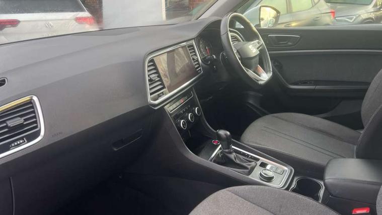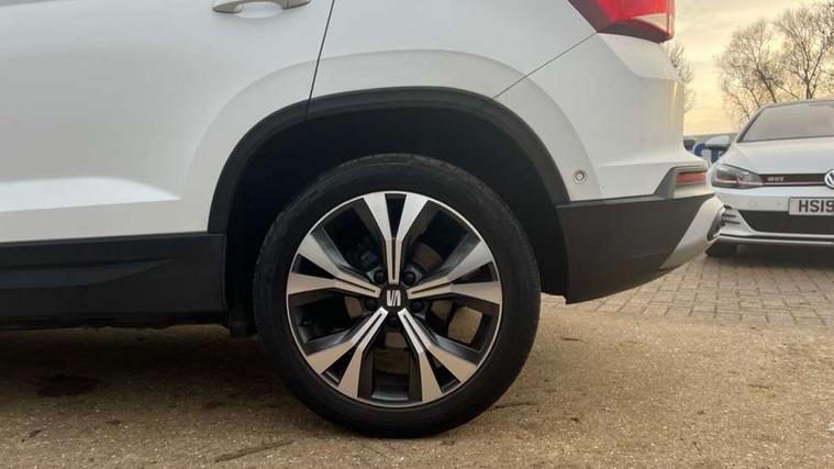 Cruise control system with speed limiter, E-call, Outside temperature gauge, PAS, SEAT drive profile with driving experience button - Normal, Sport, Eco and Individual mode, gearshift, steering and throttle response, Self parking functionality (includes front and rear parking sensors), Trip computer, Wireless full link smartphone integration, Wireless phone charger, Steering wheel mounted audio/phone controls, Black wheel arch surrounds, Body colour bumpers, Chrome front grille frame, Chrome roof rails, Chrome side window trim, Daytime running lights, Door mirrors with welcome light silhouette, Dynamic headlight range control with self adjusting whilst driving, Electric adjustable/heated/folding door mirrors, Front and rear electric windows, Full LED headlamps with lens and LED front fog lamps with cornering function, LED rear tail lights with dynamic indicators, Rear fog lights, Rear side wing doors, Rear wash/wipe, Simulated exhaust pipes, 12V socket in front, 3 seat bench in 2nd row, 60/40 split folding rear seat, Cloth upholstery with front comfort seats, Dual zone climate control, Front and rear head restraints, Front centre armrest, Front seat back storage pockets, Height adjustable driver and passenger seat with lumbar adjustment, ISOFIX points in outer rear seats with top tether anchorage points, Leather steering wheel and gear knob, Rear armrest and easy back seat release mechanism from boot, Single front passenger seat, Storage compartment under driver's seat, Interior lighting pack - Ateca, Navigation system pack with DAB - Ateca, 3x3 point rear seatbelts, ABS, Traction control system (TCS), Electronic stability control (ESC) and Electronic differential lock system (XDS), Airbags - Driver and front passenger airbag with deactivation, front side, two curtain and driver's knee airbags, Electric parking brake with auto hold function, Front and rear seatbelt reminder, Front assist with autonomous emergency braking, Hill hold control, Manual rear child locks, Tiredness recognition system, Traction control, Tyre pressure monitoring system, Alarm, Keyless entry, Locking wheel bolts, Chrome interior detailing, 18" Performance machined alloy wheels 36/2 in nuclear grey,