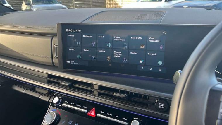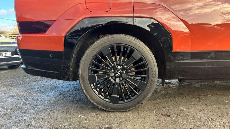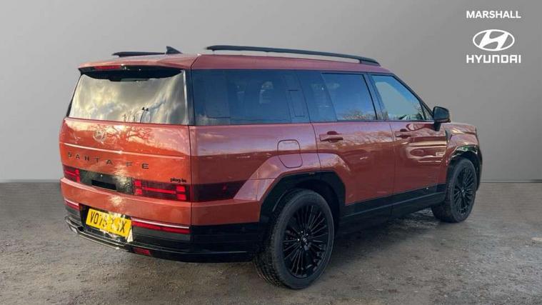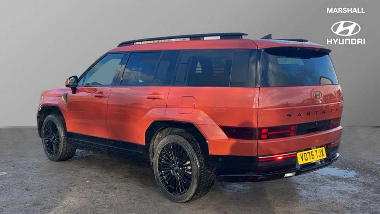 12.3" Drivers supervision instrument cluster with LCD display, 360 degree parking sensors, Blind spot collision avoidance assist (BCA), Blind spot view monitor (BVM), Bluelink and Wireless Apple Carplay/Android Auto, Bluetooth connectivity with voice recognition, Drive mode selector, Driver status monitor (DSM), Dual wireless phone charging pad, Emergency services call system, Forward collision avoidance assist (FCA 2.0), Head up Display, Highway drive assist 2 (HDA 2), Intelligent speed limit assist (ISLA), Lane departure warning system (LDW), Lane Follow Assist 2 (LFA 2), Lane keeping assist (LKA), Low washer fluid warning, Navigation based smart adaptive cruise control with stop and go, Over the air software updates (OTA), Parking Collision Avoidance Assist-Reverse (PCA-R), Power assisted steering, Remote smart parking assist, Safe exist assist (SEA), Smart electric tailgate with hand's free opening function, Surround view monitor, Self levelling suspension, Shift by Wire Gear Selector (SBW), 12.3" Touchscreen display with satellite navigation, 2nd Row USB C Ports x2 Charging, 3rd Row USB C Ports x2 Charging, Front USB C port 1 charging and 1 data/charging, Premium BOSE sound system with 12 speakers and subwoofer, Steering wheel audio, phone and cruise controls, Automatic headlights with dusk sensor, Automatic windscreen wipers with rain sensor, Black Styling (Skid plate, Fender upper garnish, Door side garnish, C/D pillars, Rear bumper moulding, DLO), Body colour bumpers, Digital centre mirror, Dynamic welcome lights, Electric adjustable/heated/auto power folding door mirrors, Front and rear electric windows, Heated rear window, Hidden C pillar assist handle, Hidden rear wiper, High beam assist, LED daytime running lights, LED Headlights, LED indicator lights, LED indicators in door mirrors, LED positioning lights, LED taillights, LED third brake light, Manual rear door blinds, Rear side wing doors, Rear windows and tailgate privacy glass, Roof rails, Solar glass windscreen and front windows, Windscreen acoustic film, Windscreen auto defog function, 2nd and 3rd row center armrest with cupholder, 3rd row head restraints, Centre rear head restraint, Driver and front passenger premium relaxation seats, Dual zone climate control air conditioning, Electrically adjustable front seats with 2 way electric lumbar support, Front head restraints, Front seats with memory, Heated front seats, Heated rear seats, Height and reach electrically adjustable steering column, Leather wrapped heated steering wheel, Luggage cover, Luggage hooks, Luggage net, Multi colour LED ambient lighting, Nappa leather upholstery, Rear head restraints, Single front passenger seat, Split folding (50/50) third row seats, Split folding (60/40), sliding and reclining second row seats, Sun Visors with driver and passenger illuminated vanity mirrors, Two front cup holders, UV-C Tray, Ventilated front seats, Trailer wiring pack - Santa Fe, 3 point seatbelts on all seats, Adjustable regenerative braking paddle shifters, Airbag - Front, front side, curtain and centre front airbags, Anti-lock brake system (ABS), Dynamic brake control, Electric parking brake with auto hold function, Electronic Stability Control (ESC), Hill start assist control (HAC), Manual child lock in rear doors, TSA (Trailer Stability Assist), Tyre pressure monitoring system, Immobiliser, Smart Key - Keyless entry with Power On/Off button, Black ink interior decals, 20" Black calligraphy alloy wheels, Tyre mobility kit,