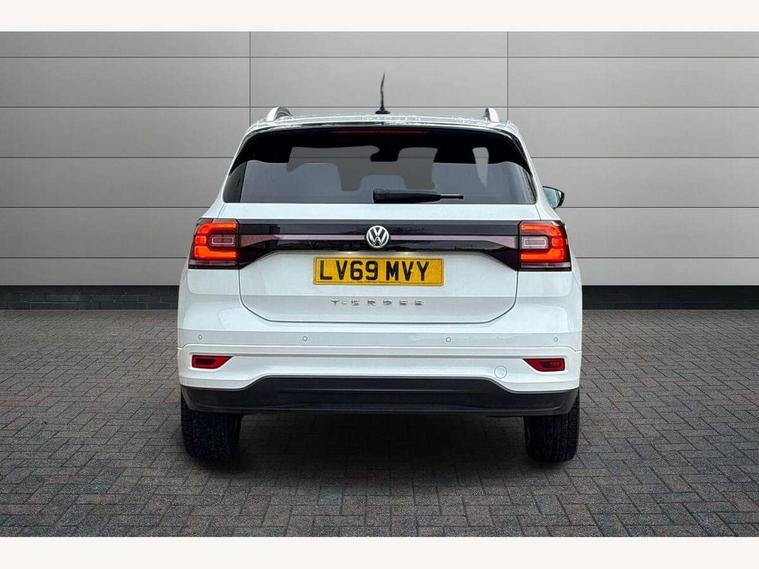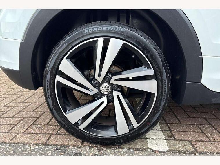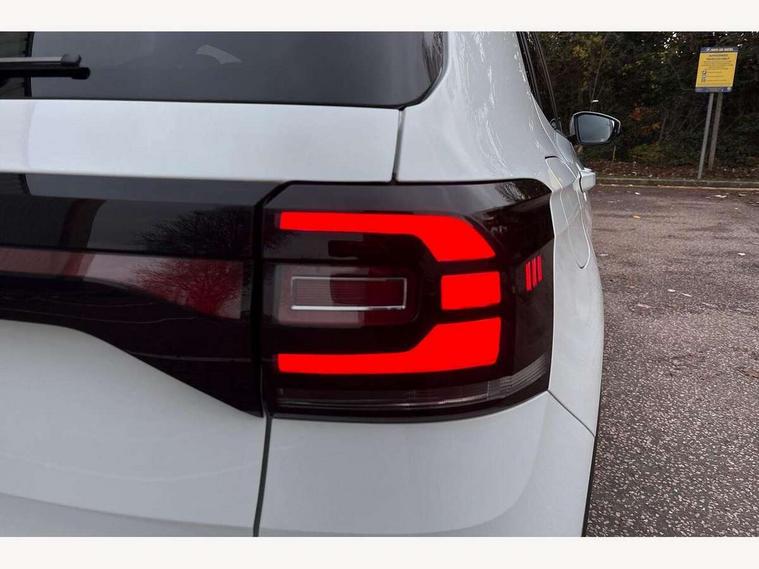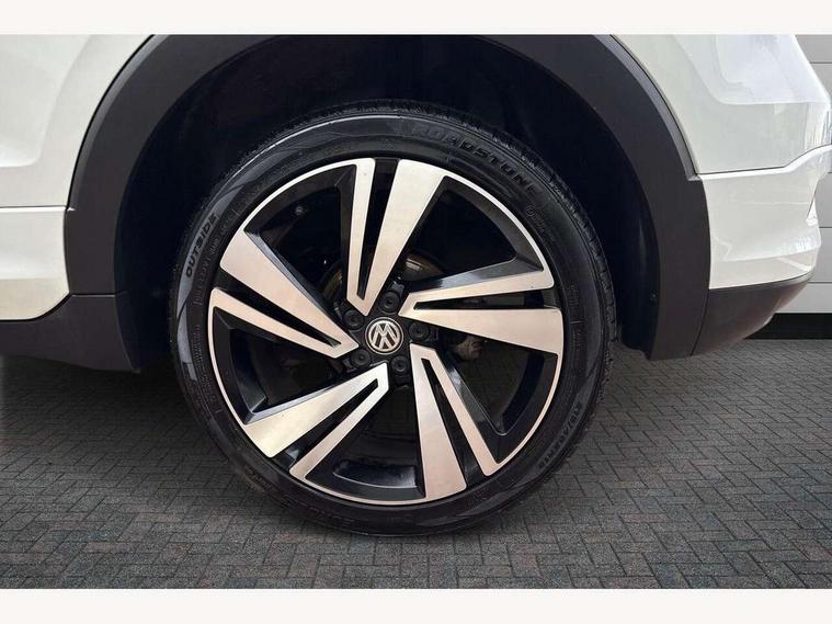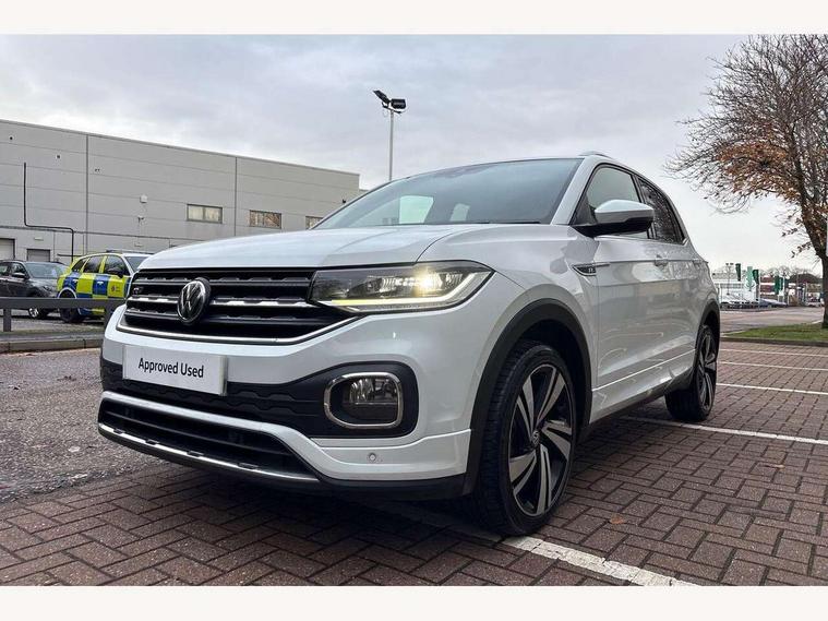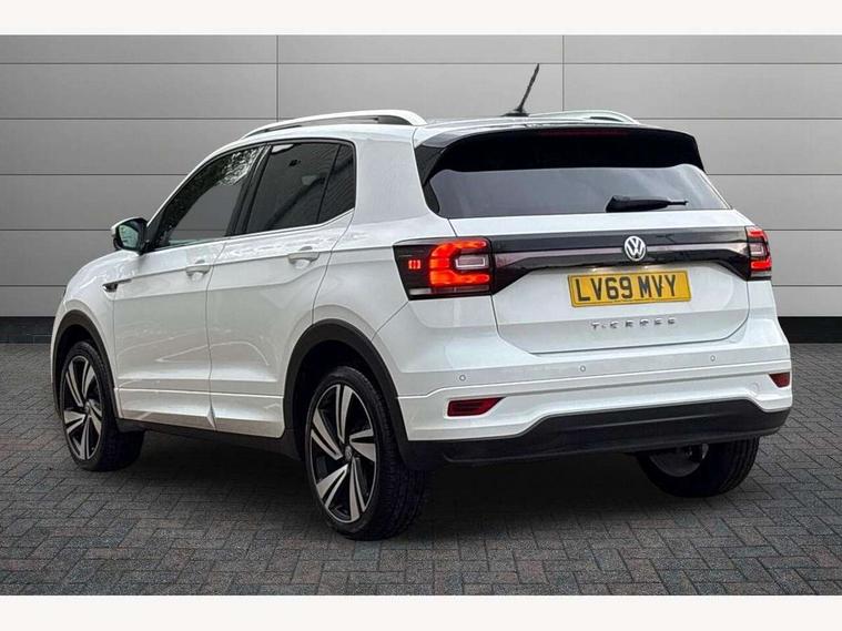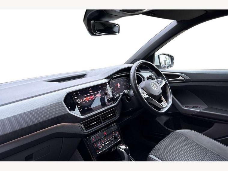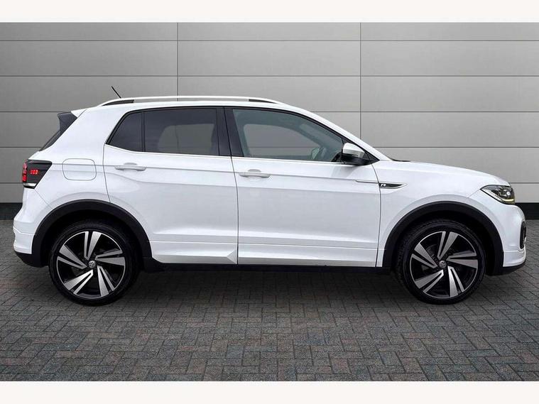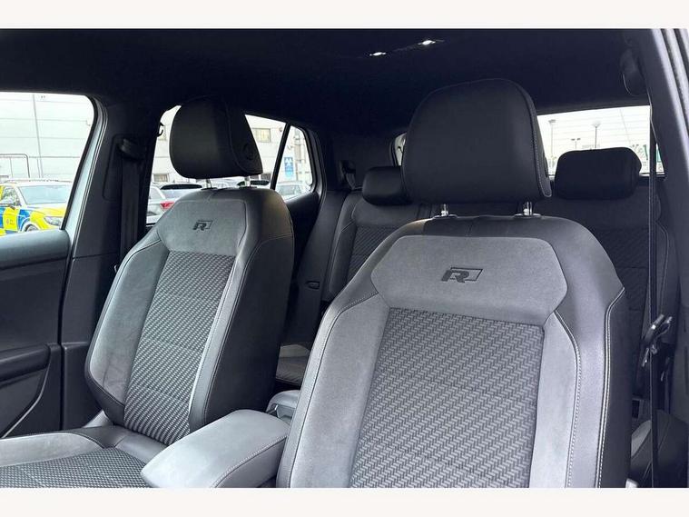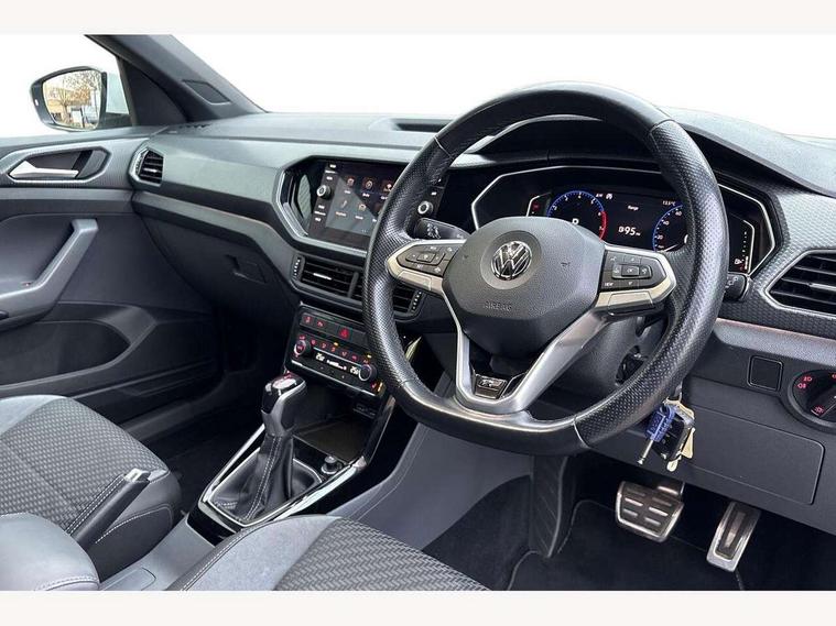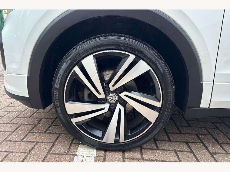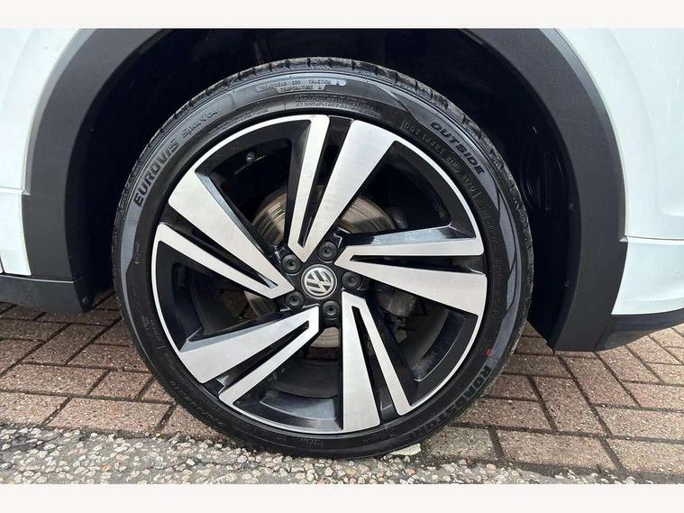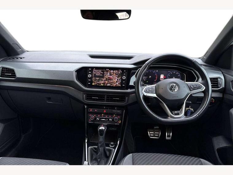 'Lights On' Reminder warning buzzer, Active Info display 10.25" high resolution TFT dash display with customisable menu and information, Adaptive cruise control including front assist, radar sensor controlled distance monitoring system, city emergency braking, cruise control/speed limit, Car-Net App-Connect with VW media control, Discover navigation system with 8.0" colour screen, radio/CD player, European map data, Driver alert system, eCall emergency call system, Lane assist with blind spot plus lane keeping system, Multifunction computer with visual gear change recommendation for fuel consumption, Power assisted speed sensitive steering, Progressive steering, Side scan blind spot detection, Speedo, rev counter, electronic odometer, trip, service interval display, exterior temperature and fuel gauge, Stop/start system, Warning sound and light for doors and tailgate open, Warning sound and light for front seatbelts unfastened, Battery regeneration during braking, Misfuel prevention device, 2 USB sockets in rear, Composition Media with 8"colour touch screen including DAB/CD drive, MP3/WMA, AUX-in/SD slot, 1 USB port and Bluetooth telephone connectivity, Multi device interface (MDI) with USB connection, Premium USB cable for Apple or Android smartphone compatibility, Simultaneous pairing of 2 compatible mobile devices, Title and cover art display, Automatic dimming interior rear view mirror with rain sensor, Automatic hazard lights activation under emergency braking, Body colour door handles, Body colour door mirrors with integrated indicators, Body colour rear roof spoiler, Body coloured bumpers, Dusk sensor, Front and rear electric windows, Front fog lights with static cornering function, Galvanised body, Heated rear window, High level 3rd brake light, LED headlights with auto range adjustment + LED daytime running lights, Lower door sills and door pillars in black, Manual coming/automatic leaving home lighting function, Radiator grille with chrome lamelel and bumpers in wagon paint, Rear tail lights LED except turn signals, Rear tinted glass 65% approx light absorbing from B pillar backwards, Rear window aerial, Rear windscreen washer and wiper with interval delay, Reflectors in all doors, Silver roof rails, Stainless steel door sill protection, Tailgate with integrated roof spoiler, Unique R Line badging, Windscreen wipers/ intermittent wipe + 4 position delay, 12V Accessory socket in centre console, 2 Front and rear reading lights incorporating LED technology, 2 Zone electronic climate control with automatic air recirculation, 3 rear head restraints and 3 rear three point seat belts with ECE label, 60/40 split folding rear seat backrest, Aluminium pedals, Black headlining, Carbon flag cloth upholstery, Drawer under drivers seat, Driver and front passenger sunvisor with vanity mirror, Driver's sunvisor with ticket holder, DSG Paddle Shifts, Dust and pollen filter, Front + rear carpet mats, Front centre armrest with storage compartment and two rear air vents, Front comfort seats, Front seat back storage pockets, Front seat R Line logo with rear seat backrest, Front sports seat with height and lumbar adjustment, Glovebox, Heating and fresh air system with 4 stage blower, Height/reach adjust steering wheel, Instrument lighting white adjustable panel illumination, Interior light with delay, Isofix child seat preparation for 2 rear child seats, Luggage compartment cover, Luggage compartment lighting, Moveable and foldable Rear bench seat, Removable luggage cover, Storage compartment in driver and passenger doors, Three spoke multi-function leather trimmed steering wheel and gearknob, Variable boot floor, R Line styling pack - T-cross, 3 point seat belt with electric pre tensioner, Anti-lock Braking System (ABS) with Hydraulic Brake Assist (HBA), Automatic post collision braking system, Driver and front passenger safety-optimised head restraints, Drivers and Front Passengers airbags with front passengers airbag deactivation switch, ESC with EDL, ASR, EDTC and trailer stabilisation function, Extended and proactive pedestrian protection, Front and rear curtain airbags, Front seat side impact airbags, Front ventilated disc brakes and rear disc brakes, Height adjustable 3 point automatic front seatbelts with pretensioners, Hill start assist, Pre crash preventive occupant protection, Rigid safety cell with front and rear crumple zones, Tyre pressure loss indicator, Volkswagen roadside assistance, Alarm with remote central locking and interior protection, Central locking without safe fuse with radio remote control and 2 radio folding keys, Child security locks in rear doors, Electronic engine immobiliser, Remote tailgate unlocking using key fob, Race decorative inserts in dash and doors, 18" Nevada black alloy wheels + anti theft wheel bolts,
