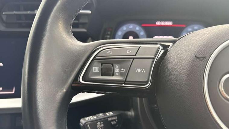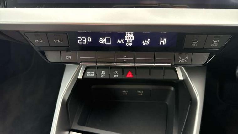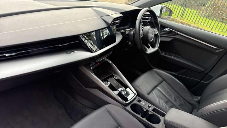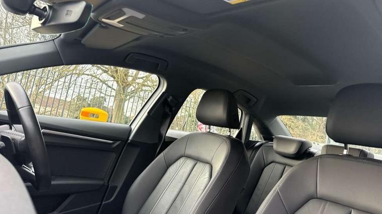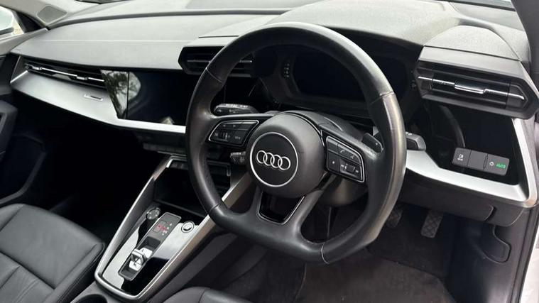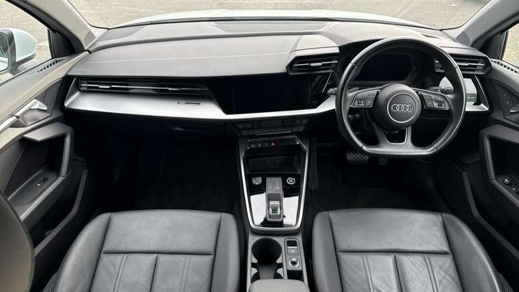 Audi connect emergency call and service, Audi drive select (Auto, Comfort, Dynamic, Efficiency and Individual), Audi smartphone interface, Audi Virtual Cockpit - 10.25" digital and colour instrument cluster, Automatic start/stop system with recuperation, Bluetooth interface, Collision avoidance assistant, Electromechanical power speed sensitive steering, Lane departure warning system, MMI Navigation Plus with high resolution 10.1" colour touch screen display, Service indicator, Voice control system with natural language interaction, Standard suspension, 2x USB Type C ports (for charging and data transfer), 6 passive loudspeakers, CD player, DAB Digital radio, 3rd brake light, Acoustic glass windscreen, Aluminium window trim, Auto dimming frameless rear view mirror, Body colour exterior mirrors, Body colour roof spoiler, Electrically adjustable/heated/folding/auto dimming door mirrors with integrated LED indications + kerb view function for passenger side, Front electric windows, LED daytime running lights, LED headlights and halogen rear lights, Light and rain sensors, Model and engine designation badges at rear, Rear boot, Rear electric windows, Rear side wing doors, Rear window, rear door windows and rear side windows in clear glass, 12V socket and storage compartment in front centre console, 3 seat bench in 2nd row, 40/20/40 split folding rear seat bench with cupholder, Dual zone electronic climate control, Front and rear headrests, Front centre armrest, Front door sill trims with aluminium inlay, Front/rear floor mats, Height and reach adjustable steering wheel, Interior lighting - Front and rear roof module including reading lights, glove compartment light and right hand side, Luggage compartment floor covering, Manual boot compartment lid, Manually adjustable front seats, Seat side bolsters, Single front passenger seat, Steel grey cloth headlining, Twin leather upholstery, Aluminium interior elements pack - A3, Sport styling pack - A3 Saloon, 3x3 point rear seat belts, Driver and front passenger airbag with passenger airbag deactivation, Electronic Stabilisation Control (ESC) including ABS, ASR and EDL, First aid kit with warning triangle and 2 safety vests, Front side airbags with head airbags and interaction airbag, Hill hold assist, Pre-sense front with pedestrian and cyclist detection, Seatbelt monitoring, Tyre pressure loss indicator, Anti theft alarm, Anti-theft wheel bolts, Immobiliser, Manual child locks, Remote control central locking, Aluminium air vent surrounds, Aluminium trim elements, Inlays with silk effect paint in platinum grey,