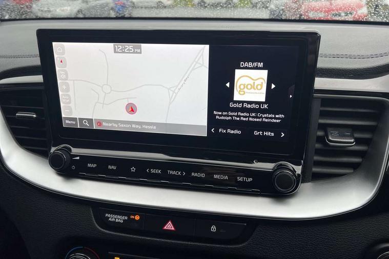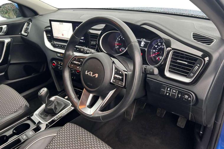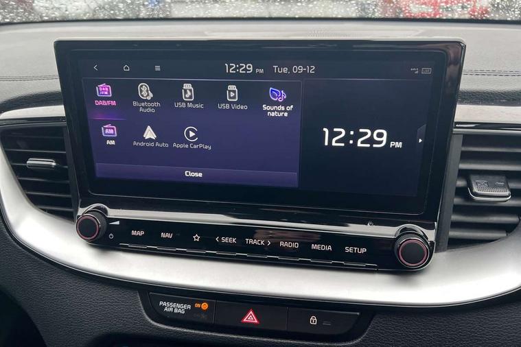 10.25" touchscreen satellite navigation with telematics, 4.2" supervision colour cluster display, Android auto with voice control, Apple car play with voice control, Bluetooth with Voice Recognition & Music Streaming, Cruise control + speed limiter, Driver attention warning, Emergency call service, Forward Collision-Avoidance Assist (FCA) - City/Pedestrian/Cyclist, Lane Following Assist (LFA), Lane keep assist, Motor driven power steering, Rear parking sensor, Reversing camera with dynamic guide lines, Tailgate, Trip computer, Intelligent Stop and Go, 1x Rear USB-C, 2x Front USB (1x USB-C, 1x USB-A), 7 speakers, DAB Radio with MP3, Rear console USB C-type charge port, Steering wheel mounted controls, All-round Electric Windows with Auto Up & Down Function, Auto dimming rear view mirror, Automatic defog system, Automatic headlights, Black side sill mouldings with chrome inserts, Black wheel arch trim, Body colour bumpers, Body colour exterior door handles, Body colour rear spoiler, Body coloured door mirrors with matt black lower housing, Body coloured shark fin antenna, Electrically folding, adjustable and heated door mirrors with integrated LED indicator lights, Heated rear window with timer, High beam assist, High glossy black and satin chrome rear skid plate, LED Bi-Function projection headlights, LED daytime running lights, LED front fog lights, LED High-mounted Brake Light, LED rear fog light, LED rear lights, Matt black and satin chrome radiator grille, Privacy glass - Rear windows and tailgate, Rain sensing front wipers, Rear side wing doors, Rear wiper, Satin chrome window surround, Silver roof rails, Smaller XCeed badge on rear left hand tailgate, Tinted glass, Variable front intermittent wipers, Wide view drivers door mirror, Windscreen Washer Level Warning, 3 seat bench in 2nd row, 60/40 split folding rear seat, All-round height adjustable headrests, Centre Console with Storage Box and Sliding Armrest, Chrome interior door handles, Cloth/faux leather upholstery, Cupholders in centre console, Driver + front passenger electric lumbar support, Driver and passenger front seat pockets, Driver's seat height adjuster, Dual zone automatic air conditioning, Faux leather door trim, Front and luggage area 12V power sockets, Front and rear door storage, Front cabin map light with sunglasses case, Front Passenger Seat Height Adjuster, Heated front seats, Heated steering wheel, Illuminated driver and front passenger sunvisors with vanity mirror, ISOFIX Child seat top tethers and anchor fixings, Leather steering wheel, Luggage area light, Luggage area parcel shelf, Luggage hooks, Rear cabin light, Rear centre armrest with cupholders, Single front passenger seat, Tilt/telescopic adjustable steering wheel, ABS with Electronic Brakeforce Distribution (EBD) and Brake Assist System (BAS), All round 3-point seatbelts, Dual horn, Electronic parking brake, Electronic stability control (ESC) and vehicle stability management (VSM), Front passenger airbag cut off switch, Height adjustable front seatbelts, Hill start assist control (HAC), Impact sensing auto door unlocking, Rear door child safety locks, Seatbelt reminder warning, Traction control, Twin curtain airbags, Twin front airbags, Twin front side airbags, Tyre pressure monitoring system, Alarm system, Engine Immobiliser & Deadlocks, Locking wheel nuts, Smart key with engine start/stop button, 18" alloy wheels, Tyre mobility kit,