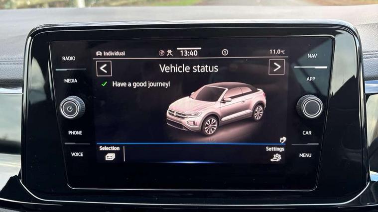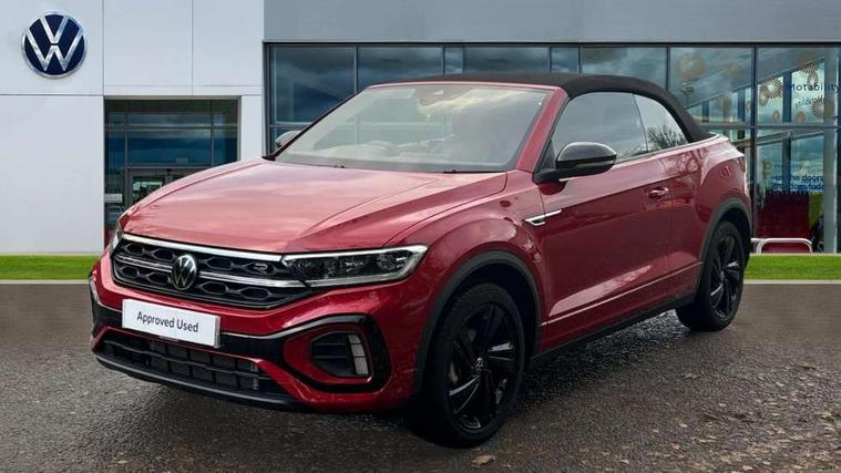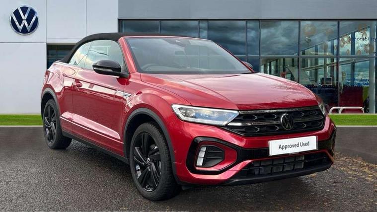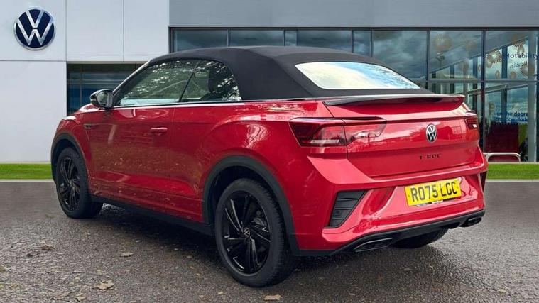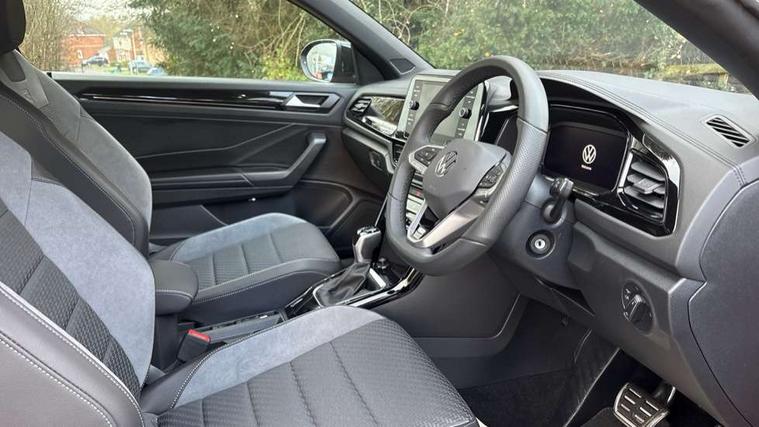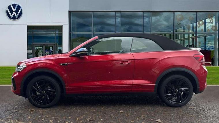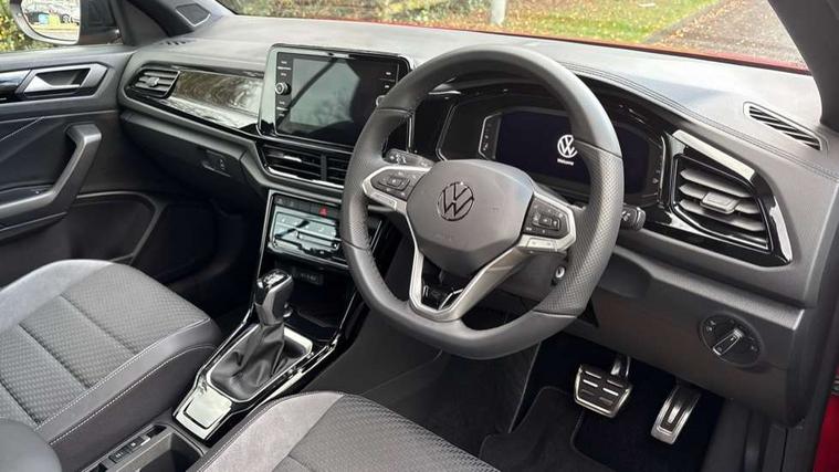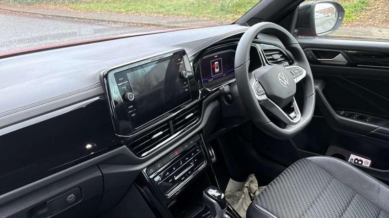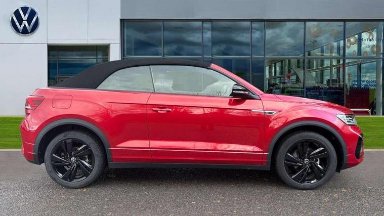 Adaptive cruise control and speed limiter, Advanced driver attention and drowsiness monitor, Brake pad wear indicator, Car information display, Digital Cockpit Pro with 10.25" Display, Driver tips and journey analysis, Dynamic road sign display, Emergency call service, Modified key software - reduce switch off time for key status change to Long no motion, Multifunction computer with visual gear change recommendation for fuel consumption, Multifunction front facing camera, Online services, Park assist including front and rear parking sensors, Speedo and rev counter, electronic odometer, trip, service interval display and exterior temperature gauge, Start/stop system with brake energy recovery, Tailgate/trunk lid release from outside, Warning sound and light for front seatbelts unfastened, Wireless App-Connect for apple Carplay and android Auto, Digital radio reception (DAB), Diversity antenna for FM reception, Mobile phone interface with inductive charging feature, Music playback - MP3, WMA and AAC files, SMS functionality - read, compose and send SMS messages using touch-screen display, Title and cover art display, USB-C Interface and USB charging socket, We Connect and We Connect Plus functionality, Ambient lighting with logo projection, Auto dimming interior rear view mirror, Automatic hazard lights activation under emergency braking, Automatic headlight control with LED separate daytime running lights with coming/leaving home function, Black roof, Body colour door handles, Body colour rear boot spoiler, Chrome effect left and right trapezoid exhaust tailpipe fascia surround, Chrome trim on upper and lower radiator grille, Dark red rear combination lamps in LED technology, Dusk sensor, Exterior mirrors aspherical on driver side, convex on front passenger side, Heat insulating glass windscreen, LED 3rd brake light, LED rear number plate lights, Power operated canvas convertible top, Power windows with comfort operation and circuit breaker, R-Line design body coloured bumpers, Rain sensor, Rear boot, Rear exhaust tailpipe, Rear fog light on one side and reversing lights on both sides, Remote electrically foldable door mirrors, puddle lights and reverse activated passenger door mirror, Volkswagen roundel, Windscreen wiper with intermittent wipe light, Without exterior ambient lighting, 12V socket in centre console storage area, 2 LED front reading lights, 2 seat bench in 2nd row, 50:50 Split folding rear seat backrests with fixed rear seat bench, Air care climatronic air conditoning system with active combination filter and 2-zone temperature control, Black door lower parts with chrome trim, Chrome plated surround to light, mirror and window switch, Door and side trim panel with leatherette insert, Easy entry backrest release, Front and rear carpet mats with black stitching, Front centre armrest, Front cupholders x 2, Front door pockets, Front seat back storage pockets, Front sports comfort seats with manual height adjustment, Heated leather wrapped multi function sports steering wheel with tiptronic, Height/reach adjust steering wheel, Inserts of front seats and outer rear seats in ArtVelours titan black, Instrument lighting, white adjustable panel illumination, Interior light delay, Interior light in footwell, Interior lighting with switch off delay and contact switches on all doors, Interior white ambient lighting and surround lighting, Isofix child seat preparation, Lockable glove compartment with light, Luggage compartment lighting, Power adjustable lumbar support in front, Rear head restraints, Single front passenger seat, Stainless steel pedals, Sun visors with illuminated vanity mirrors, Unique R Line door sill protectors, Driver assistance pack without proactive passenger protection - T-Roc Cabriolet DSG, 2 x 3-point seatbelts/outer rear seats with ECE label, Driver and front passenger airbag with front passenger airbag deactivation, Driver and front passenger safety-optimised head restraints, Drivers seatbelt reminder, Electronic parking brake, Electronic Stability Control (ESC) including ABS, ASR and EDL, Front and rear disc brakes, Front assist with autonomous emergency braking, Pedestrian monitoring, Predictive pedestrian protection, Rigid safety cell with front and rear crumple zones, Side airbag/thorax airbag system, for front passengers, Three point height adjust front seatbelts + pretensioners, Two tone horn, Tyre pressure loss indicator, Volkswagen roadside assistance, Anti-theft alarm system with interior protection and central locking system with SAFELOCK, radio remote control and 2 remote control folding keys, Electronic engine immobiliser, Trims for alloy wheels,