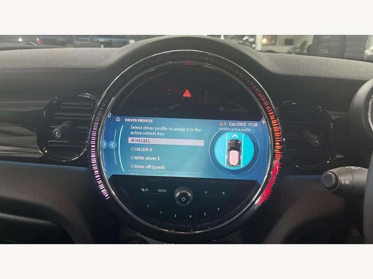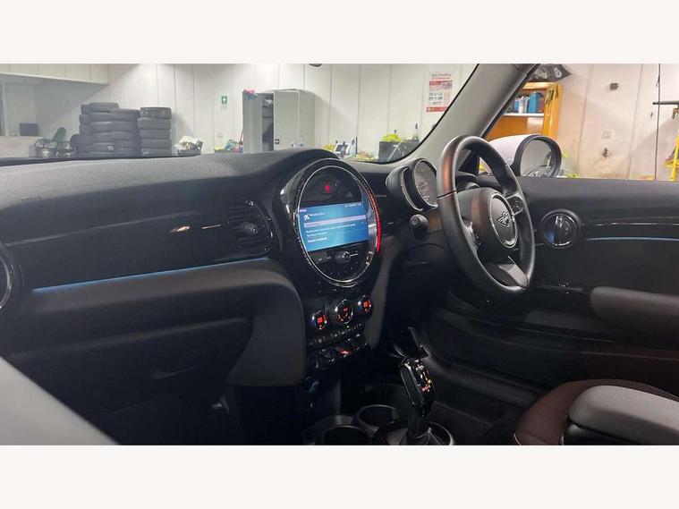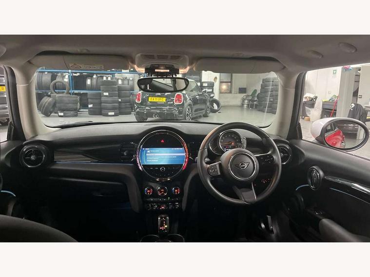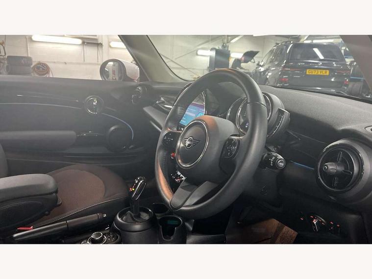 Apple CarPlay, Automatic start/stop function with brake energy recuperation, Compatible mobile phone bluetooth with audio streaming, Cruise control with brake assist, Electro-mechanical speed dependant steering assistance, Flexible car sharing preparation, Instrument cluster, Mini E-call, MINI TeleServices, On board computer, Service interval indicator, Double Vanos system, Fully variable valve control, High precision injection, Performance Control, Steptronic transmission with double clutch, 8.8" touchscreen with LED ring, FM tuner and DAB digital radio, 3rd brake light, Automatic headlight activation switch, Body colour fuel filler cap, Chrome border high gloss black slats radiator grille, Dynamic brake lights, Electric front windows, Exhaust tailpipe on left with chrome finisher, Heated rear window, Heated windscreen washer jets, LED headlight with closed ring and daytime driving lights, Metal door sill strips with MINI imprint, Model logo Cooper on right of tailgate, Rain sensor window wipers, Rear fog lights, Rear LED lights with union jack design, Rear window wiper, Side scuttle panel with integrated indicator, Sun/heat protection glass, White indicator lenses, 12V Accessory socket in centre console, 2 seat bench in 2nd row, 4 lashing eyes in luggage compartment, 60/40 split folding rear seat, Ambient lighting, Carbon black colour line - Knee roll and door armrest, Chrome interior highlights, Cupholders, Front and rear head restraints, Front and rear isofix with front passenger airbag deactivation, Front floor mats in velour, Glove compartment, Height and length steering column adjustment, Interior lighting with 12 different colours across the dashboard, underneath door bezel with illuminated laser-engraved design on central display, Leatherette gearshift lever and handbrake gaiters, LED reading lights, vanity mirror lights, front foot well light and spotlight on front seats, Manual air conditioning, Mechanical seat adjustment - forward/back & backrest for front seats and driver seat height adjust, Multifunction steering wheel, Passenger seat height adjuster, Satellite grey headlining including grab handles and clothes hooks, Single front passenger seat, Sport leather steering wheel with speed limiter and audio/communication controls, Storage compartments in doors, Sunvisors with vanity mirrors, 3 point seatbelts on all four seats, 6 Airbags - front, side, head and seat belt tensioners, Anti-lock braking system (ABS), DSC - Dynamic Stability Control, Front and rear disc brakes, Single tone fanfare horn, Tyre pressure monitoring system, Alarm system with tilt sensor, monitoring doors, bonnet interior and tailgate, Electronic vehicle immobiliser, Start/stop toggle with keyless go, Piano black interior trim, Tool kit, Tyre repair kit,