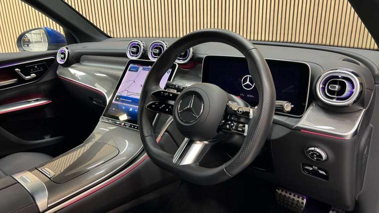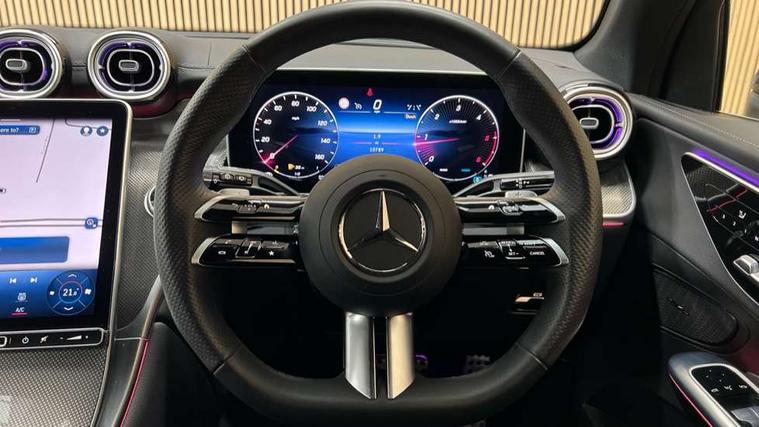 11.9" high resolution multimedia colour display, 12.3" Digital individually configurable instrument display, Acoustic presence indicator, Active lane keeping assist, Attention assist, Blind spot assist, Bluetooth interface for hands free telephone, Collision prevention assist plus, Cruise control with speedtronic variable speed limiter, Dashcam - front camera for video recording, Direct steer speed sensitive steering, DYNAMIC SELECT with a choice of driving modes (ECO, Comfort, Sport, Sport+ and Individual), eCall emergency call system, ECO start/stop function, Fingerprint scanner, Fluorescent jacket for driver, Hard disc navigation, Instrument display in miles with English lettering, MBUX augmented reality for navigation, MBUX navigation premium, MBUX voice control activated by keywords "Hey Mercedes", Mercedes me connect, Outside temperature display, Remote boot release, Remote services, Road sign recognition system, Service indicator (ASSYST), Smartphone integration, Status display for rear seat belts in instrument cluster, Traffic sign assist, Trip computer, Wireless charging, 48V Mild hybrid technology, 4MATIC permanent four wheel drive, 62 litre fuel tank, 9G TRONIC plus automatic transmission, Diesel particulate filter, Sport suspension, DAB digital radio tuner, MBUX extended functions, Mercedes benz sound system, Pre installation for Mercedes Benz Link, Adaptive brake lights, Adaptive high beam assist plus, Aluminium look running boards with rubber studs, Aluminium roof rails, AMG bodystyling front apron, rear apron and side skirts, AMG Line exterior, Auto headlights, Body colour bumpers, Body colour door mirrors, Digital light LED headlights, Electrically adjustable door mirrors, Front and rear electric windows, Headlight washers, Heat insulating dark tinted glass, Heated rear window, High level LED brake light, Integrated LED daytime running lights, LED indicator lights, LED rear fog lights, LED tail lamp, Motor way mode function and locator lighting, Noise acoustic glass, Radiator grille with Mercedes Benz pattern and integreated Mercedes star and louvre in dark grey matt with chrome inlay and black frame, Rain sensor windscreen wipers, Range adjustable headlights, Rear side wing doors, Rear wiper, Transparent Bonnet, Two chrome plated tailpipe trim elements, Variable front intermittent wipers, Welcome and follow-me home light functionality, Wider wheel arch for AMG wheels, 3 seat bench in 2nd row, 40:20:40 split folding rear seats, Ambient lighting premium, AMG line interior, Artico man-made leather upholstery, Audio and onboard settings control on multifunction steering wheel, Automatic child seat recognition sensor, Black fabric roof lining, Black floor mats with AMG lettering, Double cup holder in centre console, Easy-pack removable load compartment cover, Electrically height/reach adjustable steering column, Front centre armrest with stowage compartment, Front head restraints, Galvanised steering wheel gearshift paddles, Heated front seats, Illuminated door sill panels with Mercedes Benz lettering, Illuminated glove compartment, Instrument panel and beltlines in ARTICO manmade leather in nappa look, Multifunction sports steering wheel in nappa leather, Rear centre headrest, Rear head restraints, Rear top tether child seat ISOFIX attachment, Single front passenger seat, Sports pedals with stainless steel surfaces and rubber studs, Sports seats, Sun visors, THERMATIC 2 zone automatic climate control, Anti theft protection package - GLC, Boot comfort package - GLC, Exterior chrome package - GLC, Interior chrome package - GLC, Interior lighting pack - GLC, Keyless-Go comfort package - GLC, Memory pack - GLC, Mirror pack - GLC, Parking package with 360 degree camera - GLC, Seat comfort package - GLC, Stowage space package - GLC, USB Plus Pack - GLC, 3 rear 3 point seatbelts, Active braking assist, Anti-lock braking system (ABS), ASR traction control, Automatic front passenger airbag deactivation, Black seat belts, Brake calipers with Mercedes-Benz lettering + perforated brake discs, Braking system with larger brake discs on the front axle, Child proof door locks, Dual-stage airbags - driver and front passenger, driver knee bag and window bags for driver, front passenger and rear passengers, Electronic parking brake, Electronic stability programme (ESP) with curve dynamic assist and cross wind assist, Front and rear seatbelt reminder, Front passenger seat occupancy sensor, Front seatbelt pretensioners, Hill start assist, Tyre pressure monitoring system, Warning triangle and first aid kit, Automatic door locking, Guard 360 degree vehicle protection plus, Interior protection/immobiliser, Remote central locking, Centre console in metal structure finish, Metal structure trim, 20" AMG 5 spoke aerodynamically optimised light alloy wheels in painted black with high sheen finish, Summer tyres, TIREFIT with tyre inflation compressor,