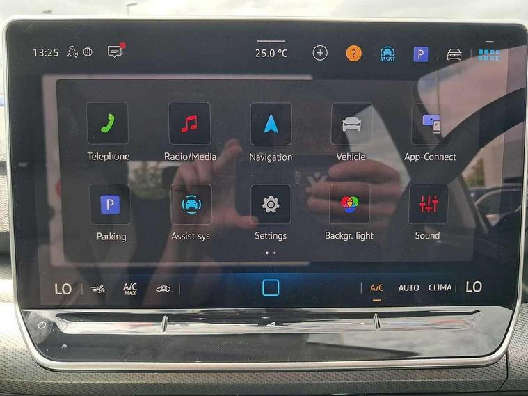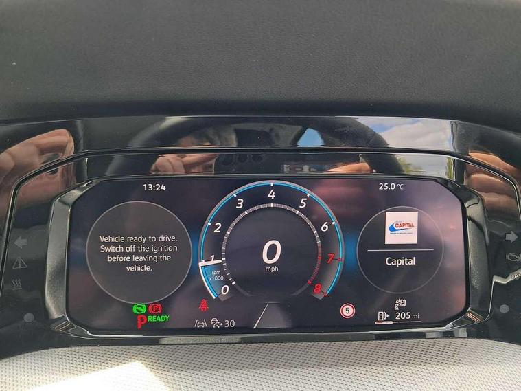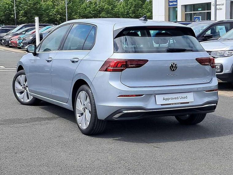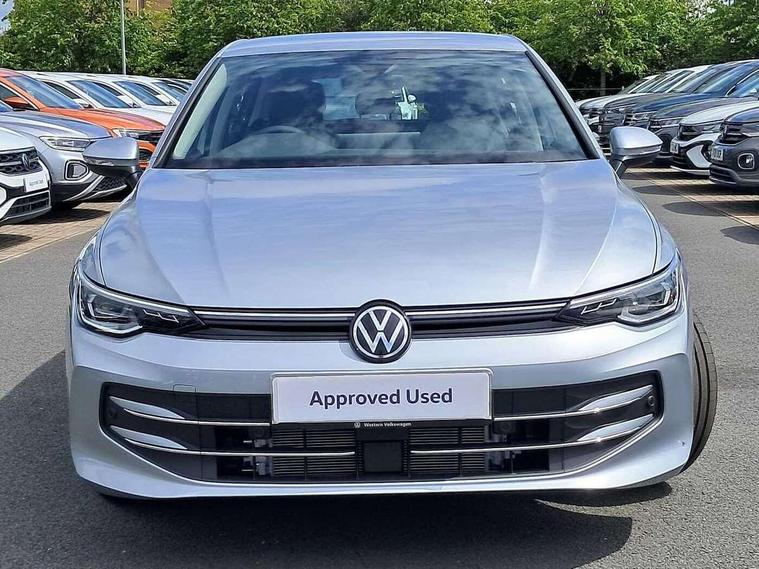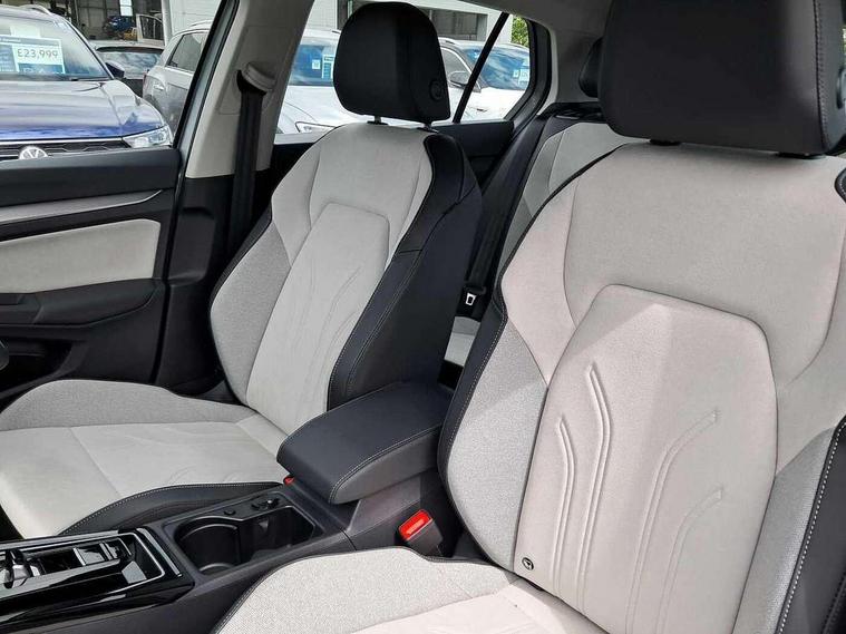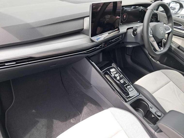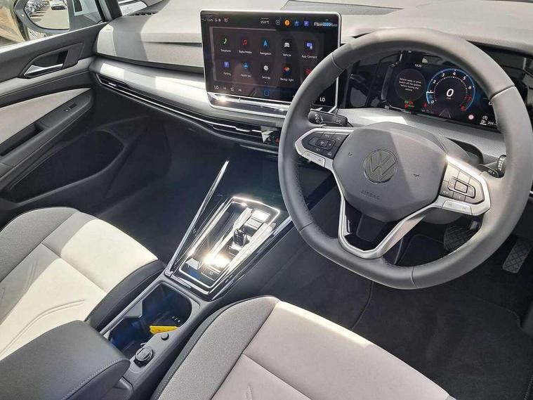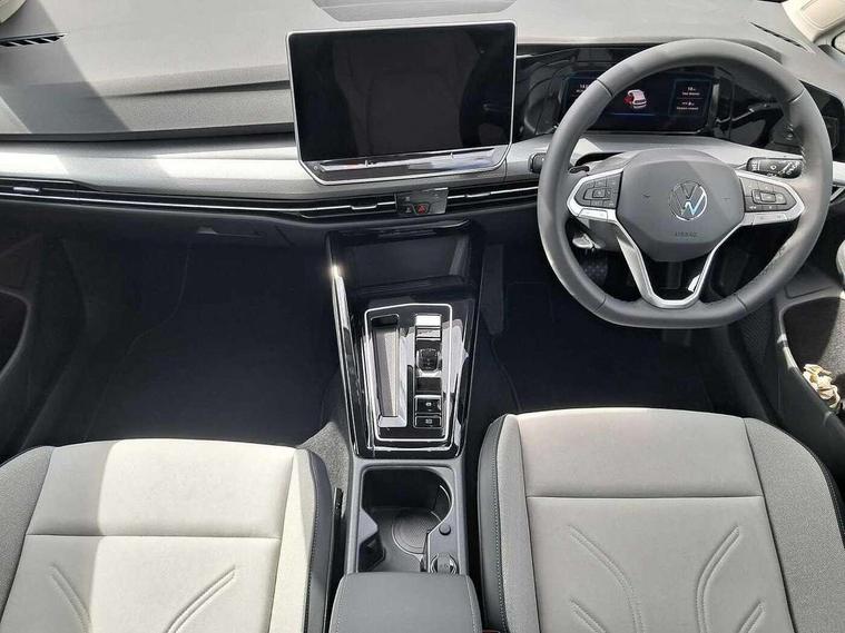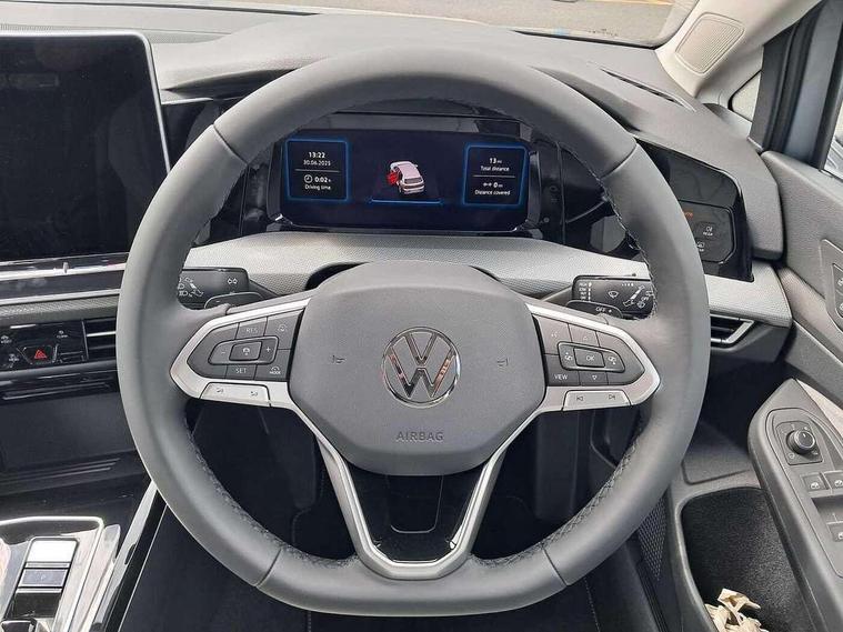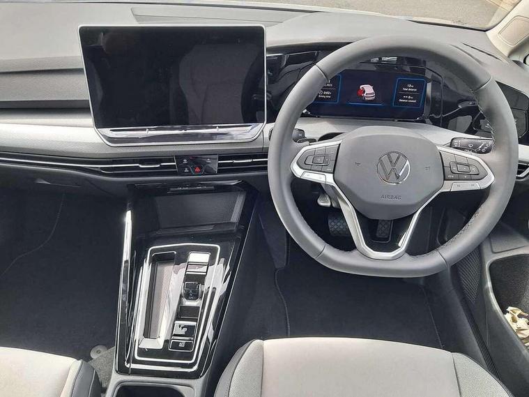 Activated carbon canister, Adaptive cruise control (ACC), Advanced driver attention and drowsiness monitor, Dynamic road sign display, E-Sim card for online connectivity, eCall emergency call system, Multi-color Digital cockpit pro, selection of different info profile possible, Multifunction front facing camera for distance control, Navigation system, Oncoming vehicle braking when turning including swerve support, Side assist blind spot lane change system, rear traffic alert and exit warning system, Speed limiter, Speedo, rev counter, electronic odometer, trip, service interval display, exterior temperature and fuel gauge, Traffic jam assist, Voice enhancer and voice control, Warning signal and warning light for front and rear seatbelts not fastened, We connect plus preparation, We connect preparation, Wireless app connect, Hybrid propulsion system, Petrol Particulate Filter, Start-stop system with battery regeneration (recuperation - energy recovery during braking), XDS electronic differential lock for improved traction and handling, 2 USB C ports in front, 2 USB charging sockets on the centre console in the rear charging capacity upto 45W, Digital radio reception (DAB), Diversity antenna for FM reception, Gaming platform via car app, Infotainment system with 12.9" display, Mobile phone interface with inductive charging feature, 3rd brake light, Automatic headlamp activation with Coming home and Leaving home feature, Body colour bumpers, Body colour door handles, Body colour door mirrors, Chrome trimmed front air intake surrounds, Chrome trims on the side window bottom, Exterior mirrors convex on the left and aspherical on the right, Front and rear electric windows, Heat insulating windshield made of laminated glass, LED separate daytime running light, Rear exhaust tailpipe, Rear fog light on one side and reversing lights on both sides, Rear side wing doors, Rear windscreen washer and wiper with interval delay, Remote electrically foldable door mirrors, puddle lights and reverse activated passenger's door mirror, Welcome light with surround lighting, 12V socket in front centre console, 12V socket in luggage compartment, 3 rear head restraints, 3 seat bench in 2nd row, Air care climatronic 3 Zone automatic climate control with rear air conditioning control panel, Ambient lighting with 30 colour including LED light unit in front footwell with selectable light colour, Art velours cloth upholstery, Chrome plated radiator grille inserts, air vent surrounds and light switch surrounds, Door insert, side trim panel and arm support in leatherette, Front + rear black carpet mats, Front centre armrest, Front head restraints, Front seat lumbar support adjuster, ISOFIX anchors for child seats on outer rear bench seats and on front passanger seat compatible for i-Size, Luggage compartment lighting, Manual height adjustable front passenger seat, Manually height adjustable driver seat, Plastic gear knob, Rear cupholder and loadthough, Single front passenger seat, Soul black instrument panel, Split folding backrest with centre armrest and unsplit rear seat bench, Sports comfort seats in front, Standard pedal cluster, Storm grey roof lining, Sun visors with illuminated vanity mirrors, Driver assistance pack - Golf Estate/Hatchback Auto, 3 point height adj front seatbelts + pretensioners, 3 rear three point seatbelts, ABS, Autonomous emergency braking front assist with pedestrian and cyclist monitoring, Child locks on rear doors, Driver and front passenger airbag with front passenger airbag deactivation, Electronic parking brake with auto hold, ESC (Electronic Stability Control), Extended pedestrian protection measures, Hill start assist, Rear disc brakes, Two tone horn, Tyre pressure loss indicator, Volkswagen roadside assistance, Anti theft wheel bolts, Preparation for alcohol interlock, New brushed dark metal decorative inserts for dashboard and front door panels,