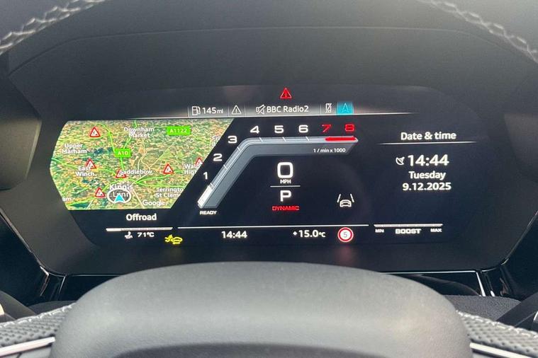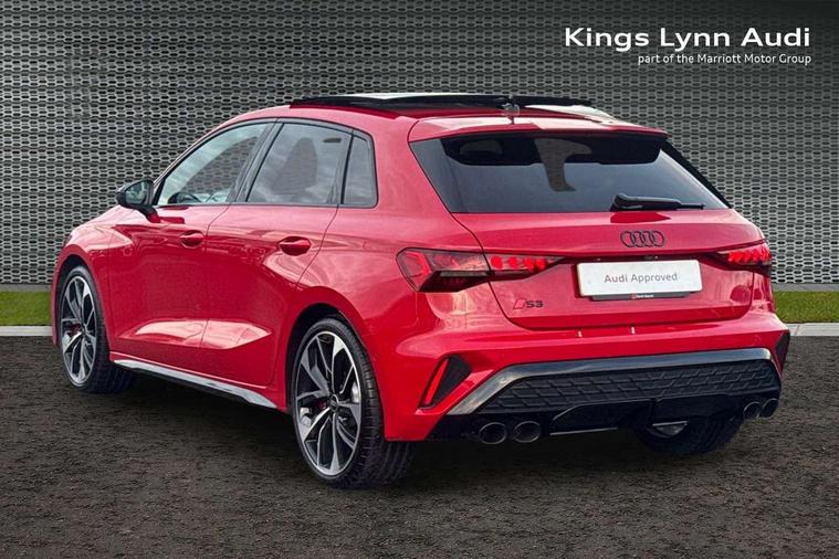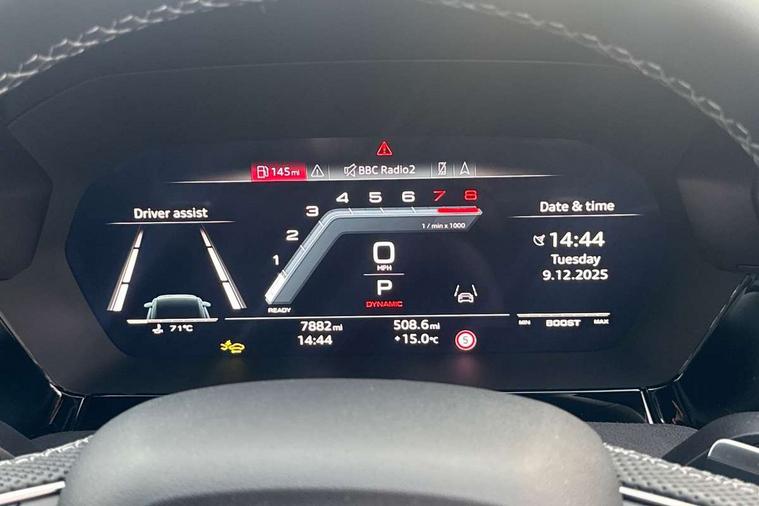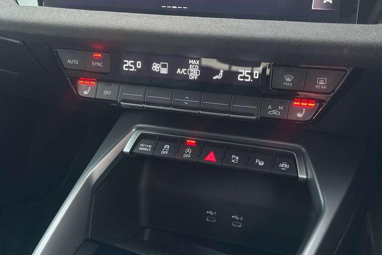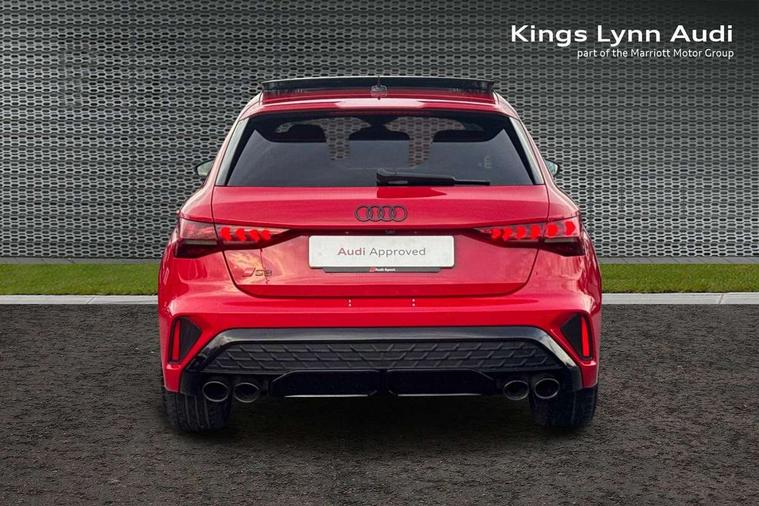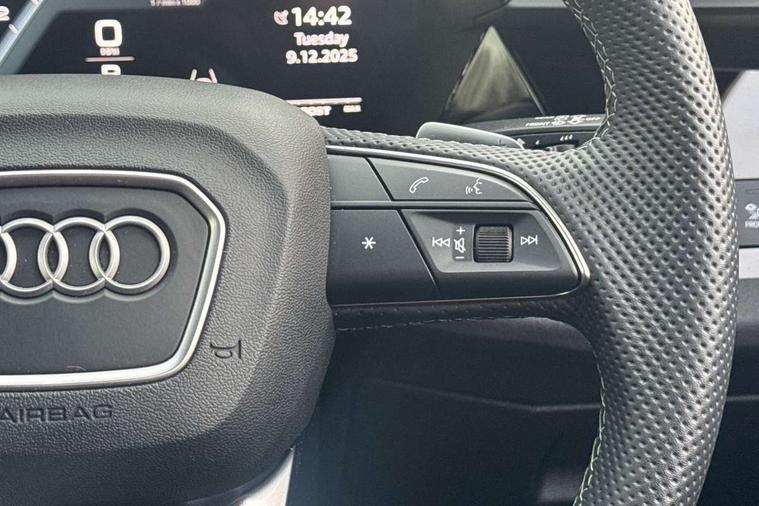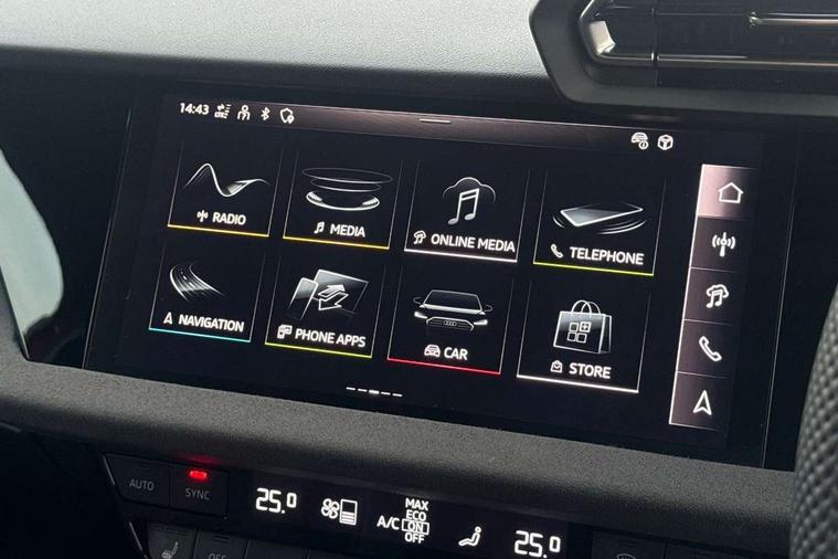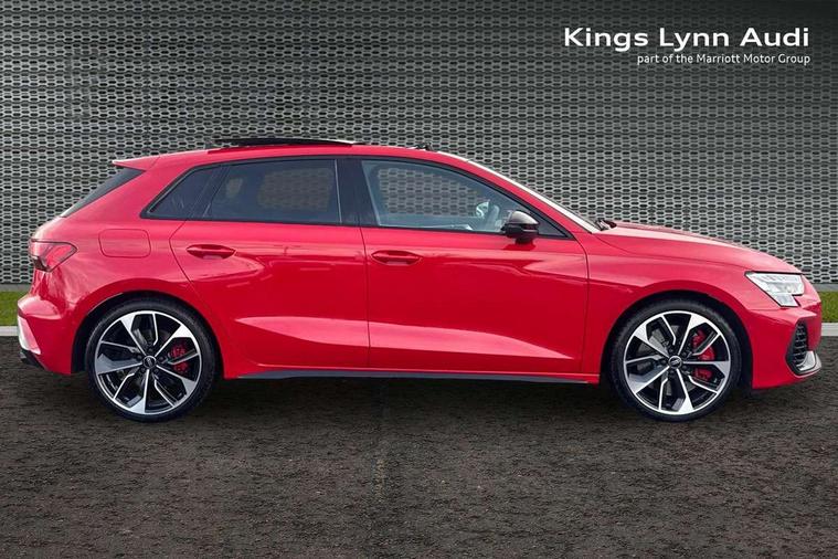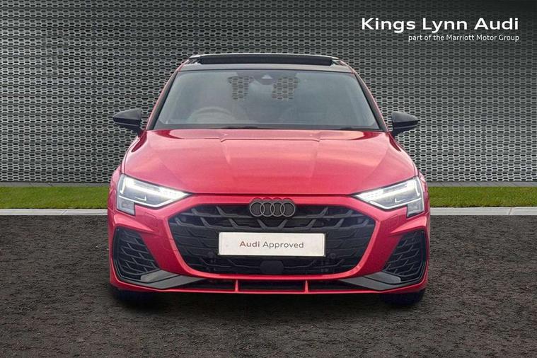 Adjustable speed limiter, Audi drive select, Audi smartphone interface with app store includes wireless Apple carplay, Android auto and Amazon alexa integration, Audi virtual cockpit plus - 12.3" full HD resolution dynamic digital instrument cluster, Automatic start/stop system with recuperation, Bluetooth interface, Camera based traffic sign recognition, Collision avoidance assistant, Distraction and Fatigue warning, e-Call (emergency call), Emergency assist, Lane departure warning system, MMI Navigation Plus with high resolution 10.1" colour touch screen display, Park Assist with parking system Plus, Progressive steering, Service indicator, Tailgate, Trip computer, Voice control system with natural language interaction, quattro permanent all-wheel drive with torque splitter, S sport suspension with spring damper adjustment and lowering by 15mm, Audi Phonebox light with wireless charging, DAB Digital radio, USB ports with charging function in the rear, All weather light, Anthracite grey Audi rings (front and rear), Audi Beam uses LEDs to project the rhombus S logo onto the ground as you exit your S3, Auto dimming frameless rear view mirror, Automatic dynamic range control, Black accents front and rear bumpers including air inlets, Black accents in front grille and frame, Black accents in window trims, Dipped beam, main beam, position light and turning light, Electrically adjustable/heated/folding/auto dimming door mirrors with integrated LED indications + kerb view function for passenger side, Exterior model badging, Front electric windows, Headlight washers, Heat insulating glass windscreen, Illuminated door sills with aluminium inserts at the front with S logo, Intersection light, LED 3rd brake light, LED brake lights, LED daytime running x3, LED headlights with LED rear lights and dynamic rear indicators, LED rear number plate lights, LED reverse light, LED tail lights, Light and rain sensors, Manoeuvring light, Motorway light, Privacy glass - dark tinted rear window, rear door and side windows, Rear diffuser and grill in grained matt black with inlay in dark liquid chrome, Rear electric windows, Rear side wing doors, Rear wiper, S grille, S3 front bumper with S specific air intake grilles, S3 roof spoiler, Static cornering light, 12V socket and storage compartment in front centre console, 3 seat bench in 2nd row, 3 spoke flat bottomed leather multifunction sport steering wheel with gear shift paddles, 3-zone deluxe automatic air conditioning, 4 way electrically adjustable lumbar support for driver and front passenger, 40/20/40 split folding rear seat bench, Black cloth headlining, Black front and rear floor mats, Fine Nappa leather upholstery with front sports seats S embossed logo, Front and rear centre armrest in artificial leather with contrasting stitching on armrests and instrument panel, Front and rear headrests, Heated front seats, Height and reach adjustable steering wheel, Manual boot compartment lid, Manually adjustable front seats, Rear centre armrest with cupholder, S badging on the steering wheel, Seat side bolsters, Single front passenger seat, Stainless steel pedals and front footrest in black, Aluminium interior elements pack - A3, Storage package - A3, Technology package - A3, 3x3 point rear seat belts, Driver and front passenger airbag with passenger airbag deactivation, Electronic Stabilisation Control (ESC) including ABS, ASR and EDL, First aid kit with warning triangle and 2 safety vests, Front side airbags with head airbags and interaction airbag, Hill hold assist, Pre-sense front with pedestrian and cyclist detection, Seatbelt monitoring, Tyre pressure loss indicator, Anti theft alarm, Anti-theft wheel bolts, Electronically operated child locks, Immobiliser, Remote central locking with safelock, Black dashboard, Tyre repair kit,
