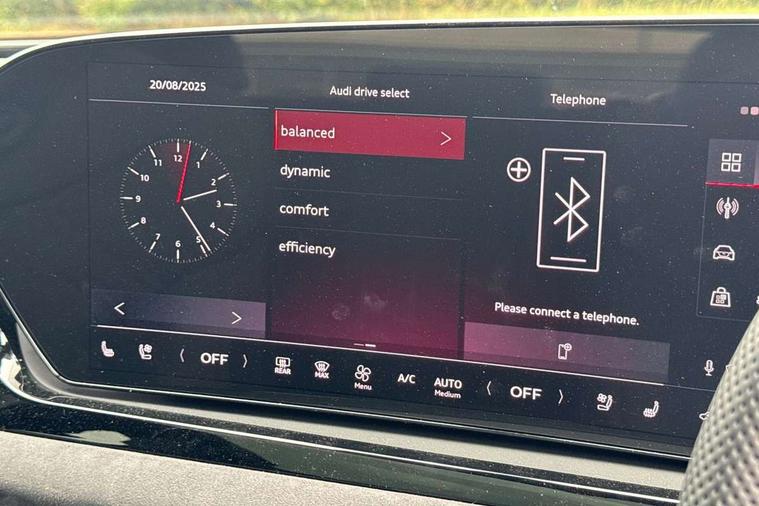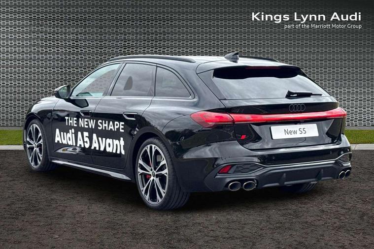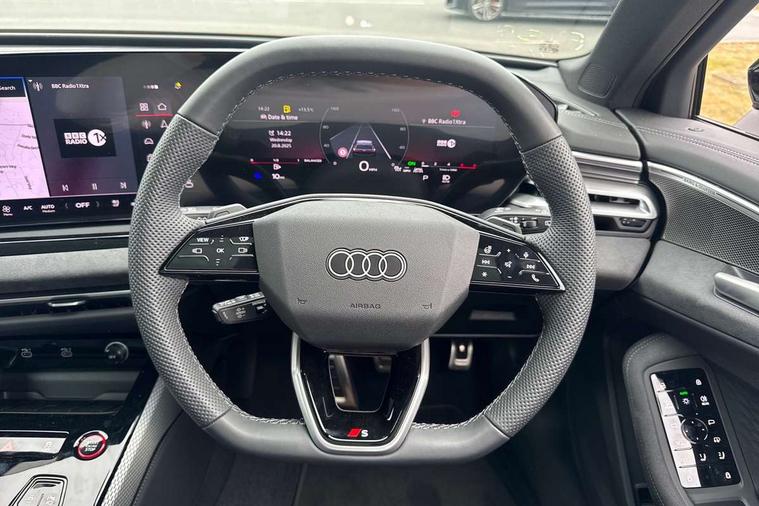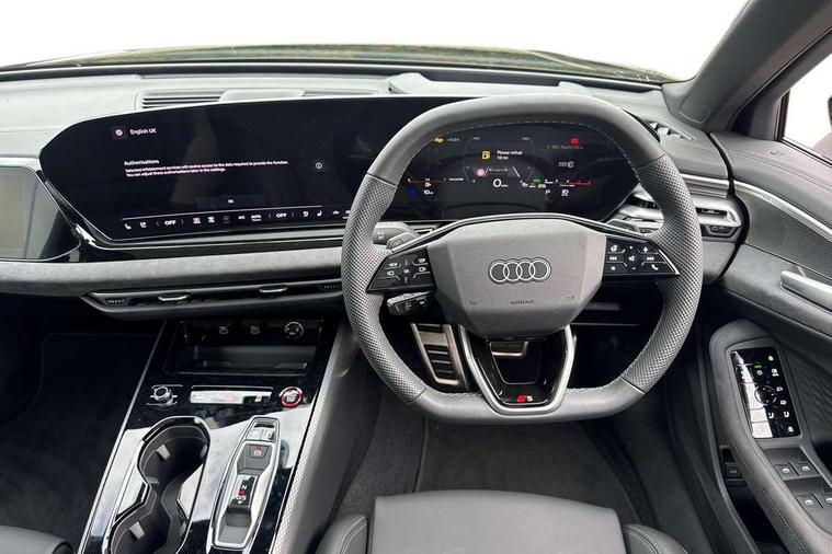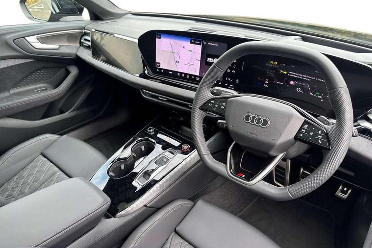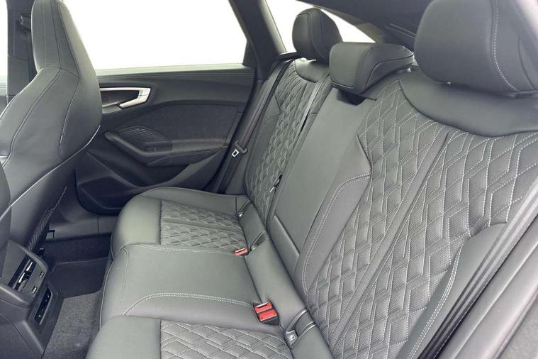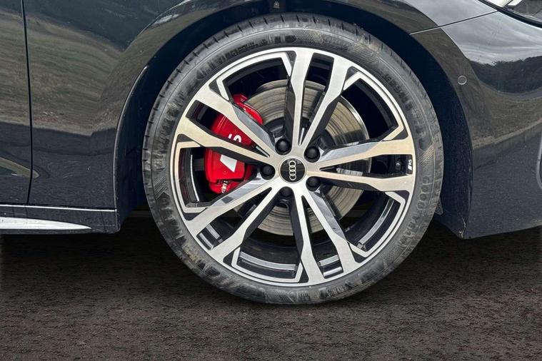 Adaptive cruise assist plus with steering intervention, Advanced driver attention and fatigue montior, Audi application store, Audi assistant, Audi connect emergency call and service, Audi drive select, Audi smartphone interface, Audi virtual cockpit plus with 11.9" OLED colour display, Automatic start/stop system with coasting functionality, Camera based traffic sign recognition, Garage door opener, Intersection assist, Lane change assistant with exit warning system, rear cross traffic alert and rear turn assist, Lane departure warning with emergency assist, MMI 10.9" front passenger touch display, MMI navigation plus with high resolution 14.5" OLED touchscreen colour display, Park assist plus, Parking system plus with 360 display, Progressive steering with servotronic, Rear view camera, Swerve assist and turn assist, Top view camera, Traffic sign based speed limiter, S sports suspension with damper control lowered by 20mm, 2 USB-C ports in both the front and rear, DAB digital radio reception, Smartphone compartment with wireless charging, Aluminium window trims, Auto dimming rear view mirror, Black door handles, Black door mirrors, Black roof rails, Dark chrome-plated tailpipe trims, Digital OLED tail lights including communication light, Door mirrors - electrically adjustable, heated, folding and auto dimming on both sides, Front and rear electric windows, Front door sill trims with aluminium inlays, illuminated with 'S' logo, Headlight cleaning system, Heated rear window, High beam assist, LED daytime running lights, LED third brake light, Matrix LED headlights with eight light signatures selectable via the MMI or the myAudi app, Panoramic glass roof with switchable transparency, Privacy glass, Rear and side windows with heat insulating glass, Rear side wing doors, Rear wash/wipe, Red S rhombus badging with S lettering on rear, S bumpers, radiator grille and diffuser in matt black and diffuser insert in matt silver, White rhombus logo projection light in exterior mirrors, Windscreen with acoustic glazing, 3 rear headrests, 3 seat rear bench, 3 spoke leather steering wheel with multi-function buttons with touch control, flattened on top and bottom, with S badging and contrast stitching, 3-zone automatic climate control, 40:20:40 split folding rear seat bench with centre armrest and cup holders, Comfort centre armrest, Electric steering wheel adjustment, Electrically adjustable front seats, Fine Nappa leather upholstery, Front and rear floor mats, Front sport seats plus with integrated headrest and S embossed logo, Headlining in black cloth, Heated front and outer rear seats, Heated steering wheel, i-Size child seat mounting on the front passenger side and i-Size and top tether on the outer rear seats, Luggage compartment lid, electrically opening and closing, Memory function for driver seat, Pneumatically adjustable lumbar support, Single front passenger seat, Stainless steel pedals and footrest, Steering wheel grips in perforated leather and shift paddles, Ventilation seat and massage function for the driver and front passenger, Black styling package plus - A5, Sound and vision pack - A5, 3x3 point rear seat belts, Acoustic vehicle alerting system, Convenience key with safelock, Driver airbag, Electric child safety locks, First aid kit with warning triangle and vests, Front emergency brake assist, Front passenger airbag, Front passenger airbag deactivation, Hill hold assist, Occupant detection in rear seat area, Proactive passenger protection system for front, sides and rear, Red brake calipers, Seat belt monitoring with rear seat occupant reminder, Side airbags in front and rear with head airbag system and front interaction airbag, Tyre pressure loss indicator, Anti theft alarm, Anti-theft wheel bolts, Keyless Go, Accent surfaces and control buttons in gloss black, Black dashboard with contrast stitching, Inlays in matt brushed aluminium with linear embossing, anthracite, Softwrap in Dinamica with contrast stitching, Upper and lower interior elements in dinamica microfiber, 20" 5 twin spoke design Audi Sport alloy wheels in metallic black and gloss turned finish, Tyre repair kit,