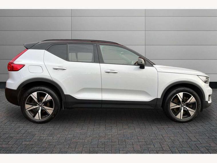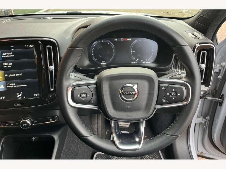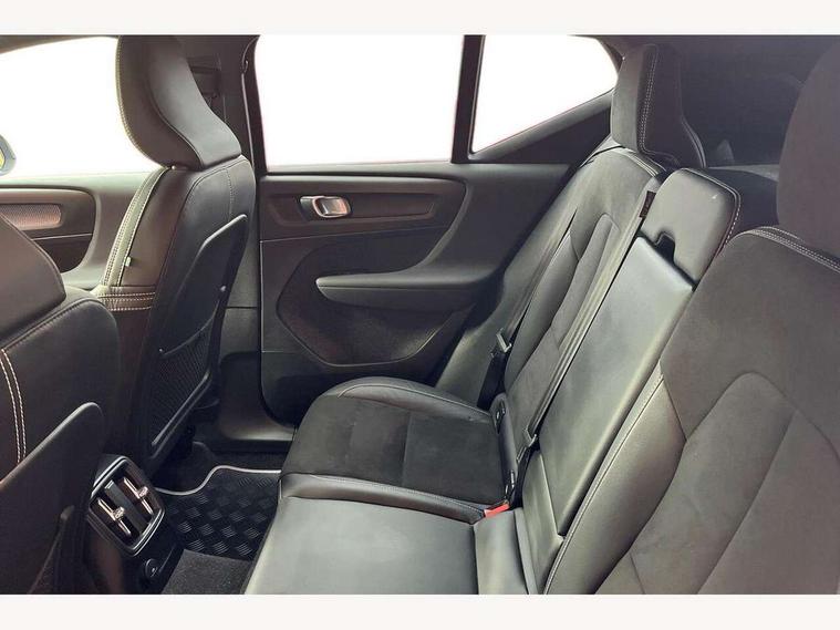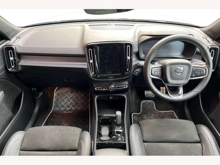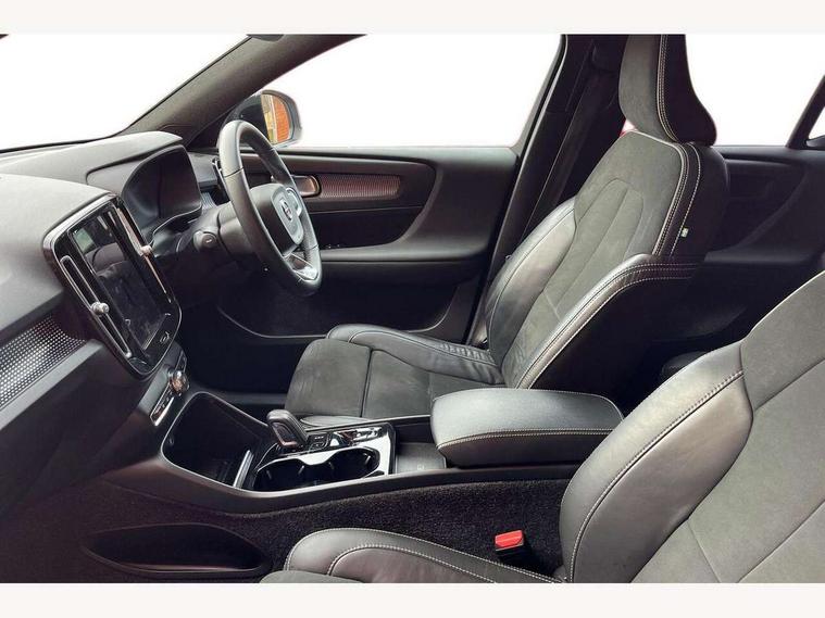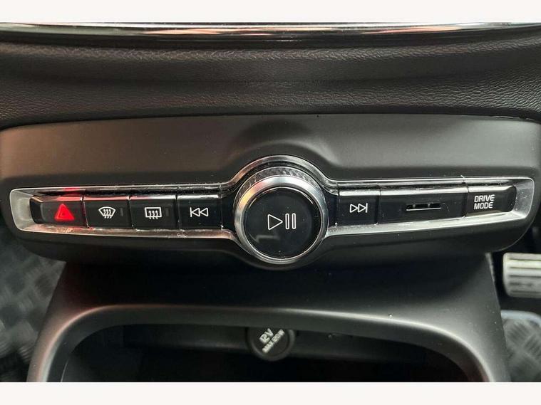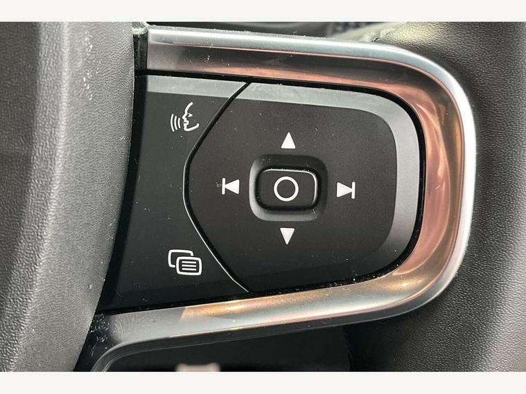12.3" Active TFT crystal driver's instrument display, 9" centre console portrait touch screen, Adjustable steering wheel force, Bluetooth hands free telephone kit, Drive mode selector, E-call, Lane keep assist with driver alert control, Oncoming Lane Mitigation, Power operated tailgate, Sensus navigation with European mapping and traffic information, Speed limiter, Speed sensitive steering, Voice activated control for key functions, Volvo on call, 7m 10amp charge cable with 3 pin plug and 7m 1 phase 16amp type 2/mode 3 charge cable, Electric front axle drive, Recharging port located in nearside front wing, Sports chassis, DAB Digital radio, Low speed exterior sound speaker, Steering wheel mounted remote controls, Adaptive brake lights with high level LED brake lights, Auto dimming interior mirror, Automatic headlamp levelling, Automatic LED Headlights + Active high beam incorporating daytime running lights, Dark tinted windows for rear door side windows and cargo compartment, Electric adjustable/heated/auto folding door mirrors, Front aluminium tread plates, Front and rear electric windows, High gloss black front and rear skid plate, High gloss black lower front bumper, High gloss black mesh front grille with high gloss black surround, High gloss black sensus surround deco, High gloss black window trim, Home safe and approach lighting, Integrated roof rails in high gloss black, Rain sensor with automatic windscreen wiper activation, Rear side wing doors, Rear wiper, Roof antenna, Roof spoiler, Visible VIN plate, 12V socket in front tunnel console and luggage compartment, 2 zone electronic climate control and rear air vent, 3 seat bench in 2nd row, 60/40 versatile split folding rear seat, A-pillar parking ticket holder, Centre console cupholders and storage, Charcoal headlining, Front footwell illumination, Front headrests, Front reading light and theatre lighting, Front seat cushion extensions, Glovebox bag hook, Height adjustable passenger seat, Height/reach adjustable steering column, Height/tilt adjustable driver's seat, High gloss centre tunnel deco, Illuminated glovebox, Illuminated luggage compartment, Illuminated vanity mirrors, Isofix attachments on outer rear seats, Key integrated remote, Leather gearknob, Load protection net, Multi directional lumbar support, Rear armrest / integral cup holders / storage tray, Rear coat hook, Rear headrests, Single front passenger seat, Sports floor mats, Sports pedals, Sports tailored steering wheel, Underfloor cargo storage, Vanity mirror with ticket holder, 3x3 point rear seatbelts, City safety includes pedestrian, cyclist and large animal detection and front collision warning with full auto brake, Drivers knee airbag, Dual stage driver/passenger airbags, Electronic parking brake with auto hold, First aid kit, Front and outer rear seatbelt reminder and pretensioners, Front seats SIPS airbags, Hill descent control, Hill start assist, Inflatable curtain, Passenger airbag cut-off device, Road sign information display, Run off Road Mitigation, Run off Road Protection, SIPS (Side Impact Protection System), Slippery road and hazard light alert, Stability and Traction Control with Spin control, Engine Drag Control and Corner Traction Control, Tyre pressure monitoring system, Vehicle deceleration control with Anti-lock Brake System, Electronic Brake Distribution and Emergency Brake Assist, Warning triangle, WHIPS whiplash protection system - front, Anti-theft alarm including immobiliser/volume sensor + level sensor, Care key with user defined top speed, Key integrated remote control central locking + fuel flap with deadlocking system and auto open/close power windows, Locking wheel nuts, Private locking for tailgate, Cutting edge aluminium inlay, Lower dashboard, tunnel console and door panel in charcoal,