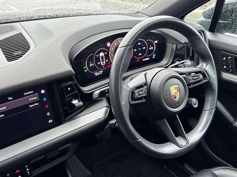 Active speed limit assist, Android Auto, Apple car play, Auto start/stop function and coasting, Brake pad wear indicator, Central analogue rev counter with black dial face, power meter and pointers in acid green, Driver personalisation for climate, audio and communication, assistance systems and other customisable car systems, E-call, Energy recuperating braking system, High resolution 12.3-inch touchscreen display in full HD resolution, Individual mode for individual selection of vehicle drive settings, Instrument cluster with 12.6" curved display, Instrument cluster with two high-resolution displays, Mobile phone preparation with Bluetooth interface for telephone and music, Mode switch, Porsche Communication Management (PCM) including online navigation module, mobile phone preparation, audio interfaces and voice control system, Power steering plus, Power tailgate, Reversible occupant protection measures, Smartphone integration, Speed limit indicator, Vehicle electrical system recuperation, Warn and brake assist including pedestrian protection, 32A 230V blue industrial supply cable and basic wall mount, 75 litre fuel tank, 8 speed automatic gearbox, Aluminium cylinder heads and engine block, Direct fuel injection (DFI) with central injector position, Front and rear aluminium multi link axles, Gasoline particulate filter, Mobile charger 7.2 kW and on board AC charger with 11 kW, Mode 3 charging cable, Panoramic roof with fixed glass panel, Power electronics, battery manager and electrically powered auxiliary units, Sport mode, Standard charging cable length, Starter battery, Supply cable for domestic electrical socket (10A), Turbocharger, VarioCam Plus, Water cooled with thermal management, AM radio, Digital radio, Fast charging two USB-C PD connectivity and charging port in front storage compartment, Smartphone compartment with wireless charging, Two USB-C PD charging ports in the rear, Active air intake flaps, Air intake slats with inlays in high gloss Black, Auto dimming interior + exterior mirrors, Automatic headlight activation including welcome home functionality, Bumper system with high strength cross members and two deformation elements + Two receptacles with screw threads towing lug + onboard tool kit, Door handles painted in exterior colour, E-Hybrid logo on front wings with border in black, Electric windows + anti trap protection + one touch open/close drivers side, Electrically adjustable, folding and heated exterior mirrors, aspherical on drivers side including courtesy lights, Extensive aerodynamic underbody protection, Exterior mirror lower trims including mirror base in black, Four point signature LED daytime running lights, Front end with integrated air intakes and airblades for the side air intakes, Front light modules including position lights and direction indicators in LED light guide technology, Front windscreen wipers with two speeds, intermittent wipe and rain sensor, Fully galvanised steel / aluminium hybrid lightweight bodyshell and Aluminium bonnet, tailgate, doors, side panels, roof and front wings, Heated rear window with automatic switch off, LED High level third brake light integrated into roof spoiler, Lower valance, Porsche active aerodynamics (PAA) with adaptive roof spoiler, Porsche logo integrated into rear taillight strip, PORSCHE' lettering integrated in tailgate strip, Preparation for the roof transport system, Rear diffusor in louvered design, Rear side wing doors, Rear window wiper with intermittent function and washer jet, Right fuel filler cover and left charging port cover, 2 seat bench in 2nd row, B-pillar clothes hooks on driver and passenger's side, Charge air cooling, Door interior with decorative surfaces and accent trims, Electric sound, Elevated centre console with handles, Front and rear bottle holders in door panels, Front head restraints, Heated front seats, Height adjustable rear headrests, Illuminated make-up mirror in sun visors, Integrated front headrests, Isofix fastening system for child seats on outer rear seats, Leather door panel and central armrests, Leather gear selector, LED interior light with switchoff delay function, footwell + glove compartment light, ashtray + ignition lock illumination, front + rear reading light, Manual height adjust for driver and front passenger seat belt, Manual steering column with angle and reach adjustment, Particle/pollen filter with active carbon filter, Rear seat split folding design 40:20:40, Fold out centre armrest with integrated cup holder, manual fore/after adjust and backrest angle adjust, Rigid luggage compartment cover, Single front passenger seat, Sports rear seat system, Storage compartments - Cooled glove compartment, front centre console, door and map pockets on front seat backrests + side luggage compartment, Sun visors for driver and front passenger, Three 12V power sockets - front below the glove compartment, centre console and at side of luggage compartment, Two integrated cup holders in front and rear with variable diameter, 3 point automatic seatbelts with front and outer rear seats pretensioners and front force limiter, 4 piston aluminium monobloc fixed brake calipers at rear, 6 piston aluminium monobloc fixed caliper brakes at front, Active bonnet, Auto hold function, Brake discs with diameter 390 mm at front, 358 mm at rear, Curtain airbags along roof frame and side glazing from the A-pillar to the C-pillar, Distance warning, Electronic parking brake, Front passenger airbag deactivation function for front seat mounting of child seat, Front side airbags integrated into seat, Full size driver and front passenger airbags, Knee driver and passenger airbags, Manual child lock in rear doors, Mounting points on passenger seat for ISOFIX child seat mounting system, Multi-Collision braking, Porsche hill control (PHC), PTM Porsche Traction Management active all-wheel drive with an electronically variable, map-controlled multi-plate clutch, ABD and anti-slip regulation, Rollover d
