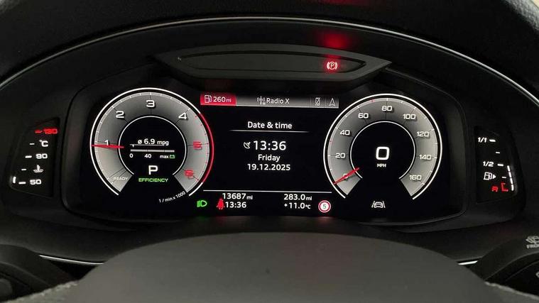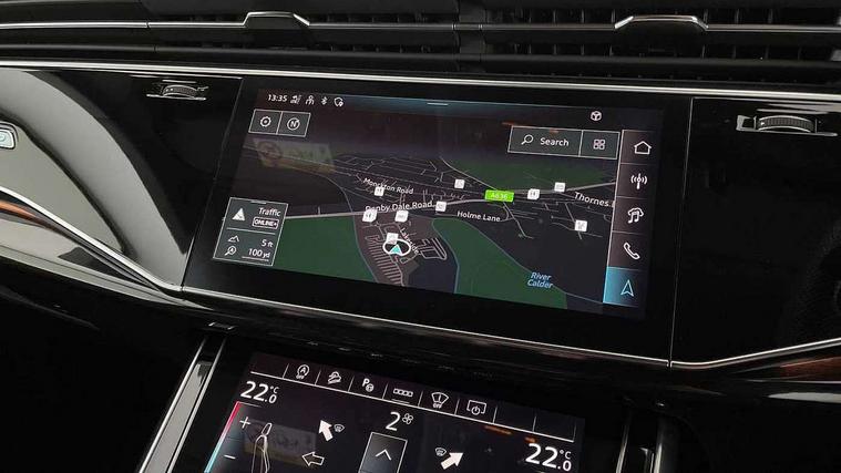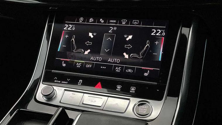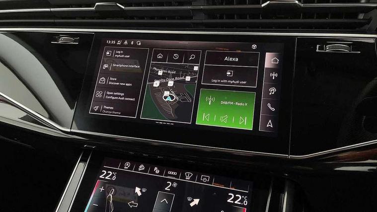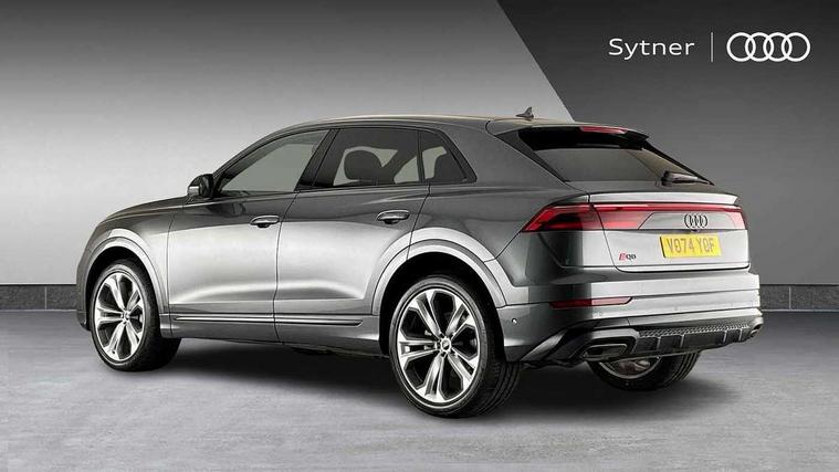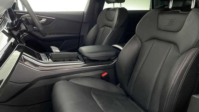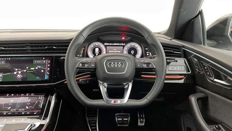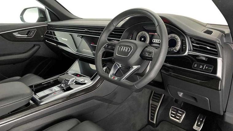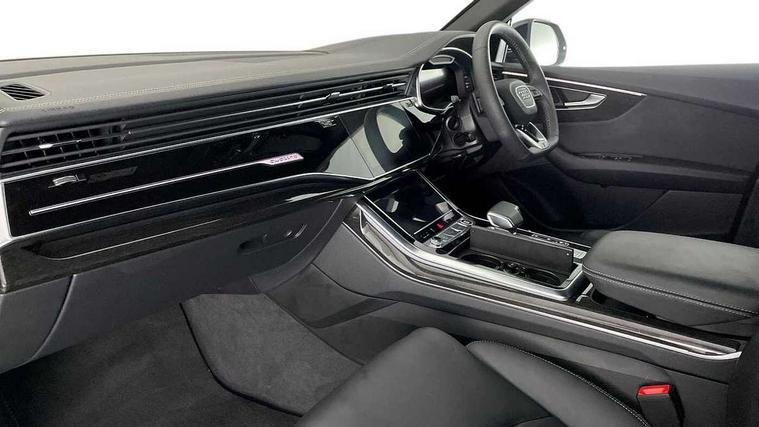 10.1" and 8.6" Dual colour touchscreens, Audi application store, Audi connect safety and service (e-call), Audi connect with Amazon Alexa Integration, Audi drive select, Audi parking system plus includes 360 degree display with front and rear sensors, Audi phone box light with wireless charging, Audi smartphone interface includes wireless Apple carplay/Android Auto, Audi virtual cockpit - 12.3" high resolution LCD display with fully customisable instrument cluster, Automatic start/stop system, Bluetooth, Electro-mechanical PAS, Low washer fluid indicator, MMI navigation plus with MMI touch, Natural voice recognition, On board computer, Operating buttons in black, glass look with haptic feedback, Power operated tailgate, Rear view camera, Service interval indicator, 48V Mild hybrid technology, Adaptive sport air suspension, Diesel particulate filter, Quattro all wheel drive with self locking centre differential, Audi music interface with 2 USB ports with charge and data functions, Audi sound system with 6 channel amplifier, 180 watt amplifying capacity and 10 loudspeakers including subwoofer, Aux-in socket, DAB Digital radio, 3rd brake light, Audi beam, Auto dimming frameless rear view mirror, Black exhaust tailpipes, Black single frame mask, Coming/leaving home lighting function, Electric front+rear windows, Electrically folding auto dimming/adjustable/heated door mirrors with memory function, LED side indicators and kerb view function for passenger side, Headlight washers, Heat insulating glass in windshield, LED rear light plus, LED signature daytime running lights, Loading edge protection in stainless steel, Matrix LED headlights with dynamic front and rear indicators, Platinum grey front spoiler lip and diffuser insert with honeycomb grille in black, Privacy glass - dark tinted rear and rear side windows from B-pillar backwards, Rain and light sensors, Rear side wing doors, Rear wiper, Singleframe grille surround in matte platinum grey, 2 zone automatic climate control, 3 bench rear seats in 2nd row, 4-way lumbar support for front seats, 40:20:40 split folding rear bench seat, Black cloth headlining, Comfort front centre armrest, Driver seat memory function, Electrically adjustable front seats, Front head restraints, Front/rear floor mats, Heated front seats, ISOFIX child seat mounting for front passenger seat and 2 outer rear seats with top tether child seat mounting for all 3 rear seats, LED interior ambient lighting, Luggage compartment sill protection in stainless steel, Rear centre armrest with 2 cupholders, Rear headrests, Seat cushion displaceable by 100mm in the ratio 60:40, Single front passenger seat, Stainless steel pedals, Sunvisors with illuminated vanity mirrors, Tool kit, Black styling pack plus - Q8, 3 point seatbelts on all seats, Audi pre sense front, Convenience key with safelock, Driver and front passenger, front side and curtain airbags, Electromechanical parking brake, Electronic Stability Control (ESC) including ABS, ASR and EDL, Front passenger airbag deactivation, Hill descent control, Hill hold assist, Predictive pedestrian protection, Seatbelt monitoring, Traction control, Tyre pressure loss indicator, Warning triangle and first aid kit, Anti theft alarm with tow away protection, Anti-theft wheel bolts and wheel loosening detection, Electronically operated child lock, Immobiliser, Keyless go with remote central locking, Polished oak trim with grey finish inlay, Tyre repair kit,
