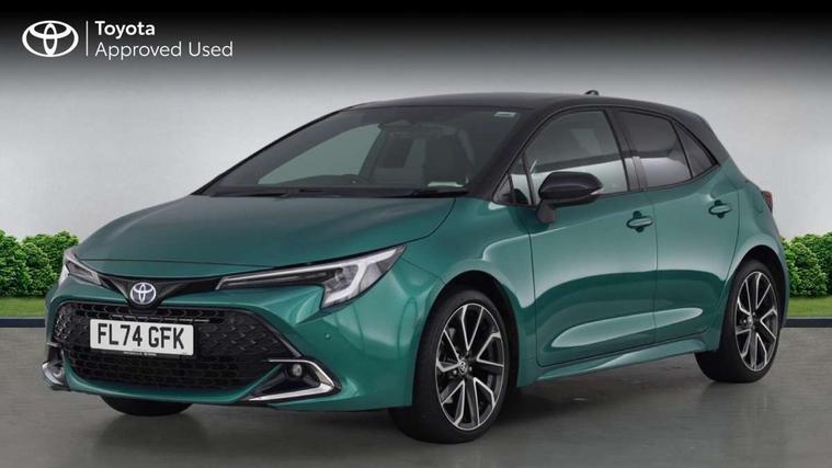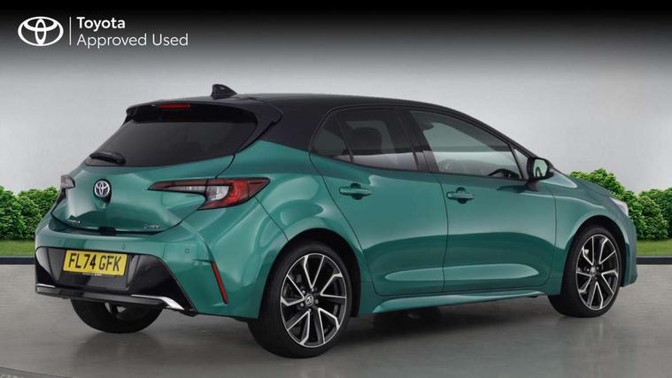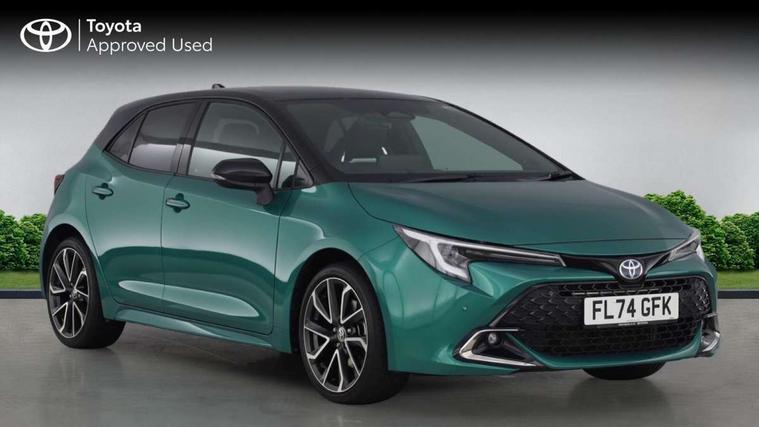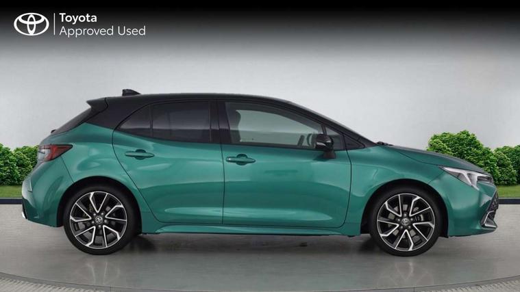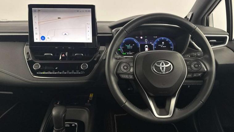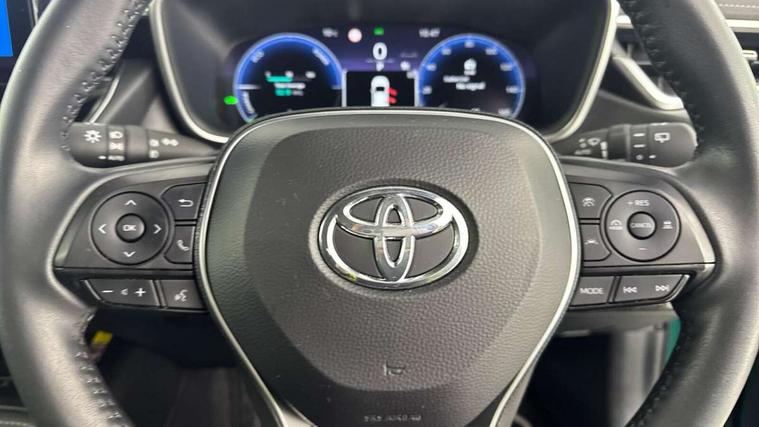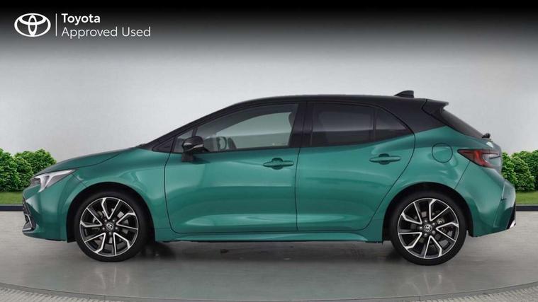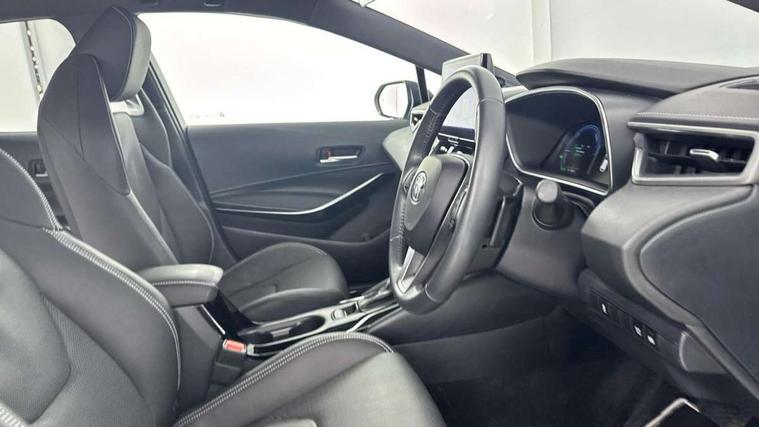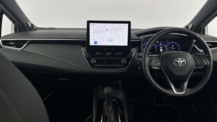 10.5" Multimedia display screen, Blind spot monitor and safe exit assist, Bluetooth telephone connectivity, Connected car functionality upgrade, tracker, remote status and e-care, Drive mode select (Eco, Normal), E-call, Electrically assisted power steering, EV drive indicator, Front and rear parking sensors with auto brake, Full Digital 12.3" TFT Digital Combimeter, Head up Display, Key reminder warning, Lane Departure Alert (LDA) switch on steering wheel, Memory on adjustable speed limiter, MyT connected services, Proactive driving assist (PDA), Rear cross traffic alert, Reversing camera, Smart entry and push button start, Smartphone integration with Apple CarPlay and wired android auto, Tailgate, Toyota remote services, Toyota smart connect navigation, Wireless charger, Gasoline particulate filter, Vehicle Stability Control (VSC), AM/FM radio, DAB Digital radio, Front USB-C in centre console, Front USB-C in dashboard, JBL Premium sound system with 8 speakers, Rear USB-C device charger, Smart voice assist/ Voice recognition, USB and Aux in connectors + 12V front outlet, Adaptive high beam system (AHS), Anti-jam protection on power windows, Auto headlight levelling system, Auto up and down function on all power windows, Automatic folding mirrors, Automatic headlights with high beam assist, Black centre and side air vents, Black metallic meshed front grille, Black toyota logo in front, Body coloured bumpers, Body coloured door mirrors, Body coloured front spoiler, Body coloured outside door handles, COROLLA alloy door scuff plates, Electrochromatic mirror, Follow me home headlights, LED daytime running lights, LED front fog lights, LED High mounted stop light, LED multi beam headlights, LED rear combi lights with LED lightguide, Noise reduction layer on windscreen, Piano black diffuser, Power adjustable heated door mirrors, Power front windows, Power rear windows, Privacy glass with UV filter, Rain sensing wipers, Rear bumper decoration with chrome plated inserts, Rear side wing doors, Rear under guard with chrome ornament, Rear window defogger, Rear window wiper, Reverse tilting door mirrors, Roof spoiler, Satin chrome insert on front air vents, Satin chrome insert on front door assist grips, Satin chrome inserts on rear passenger air vents, Shark fin antenna, Tailgate release with push button, Time adjustment on intermittent wiper, Turning signal integrated indicators in door mirrors, Unique grille pattern, Unique lower skirt, Unique side rocker with black insert, UV-filter on driver and passenger windows, 2 Shopping bag hooks in luggage compartment, 3 rear headrests, 3 seat bench in 2nd row, 3 spoke leather steering wheel with satin insert + gear knob, 4 tie down hooks in luggage compartment, 60/40 split folding rear seat, Adaptive cruise control (ACC) switch on steering wheel, Adjustable speed limiter switch on steering wheel, Audio, multimedia and telephone switches on steering wheel, Black armrest on centre console box, Black gear shift console, Boot light, Boot underfloor storage, Centre room light, Driver and front passenger personal light, Driver and passenger assist grip, Driver and passenger seatback pockets, Driver and passenger sun visor with mirror and light, Dual zone automatic air conditioning with ECO mode switch, Front and rear cup and bottle holders, Front door pockets, Front head restraints, Front passenger seat, Front sliding synthetic leather armrest, Heated seats, Illuminated entry system in room lamp, ISOFIX seat fixing (2 fixings on rear outer seats), Leather gear shift with satin chrome on gear shift console, Manual height adjustable for driver and front passenger seat, Manually tilt with sliding driver and front passenger seat, Nanoe-X air purifier, Paddle shifts, Parcel shelf, Perforated leather upholstery, Pollen filter, Power window switches with satin chrome inserts, Rear air conditioning, Rear armrest with 2 cupholders, Rear passenger coat hooks (2), Remote air conditioning, Satin chrome inside door handles, Satin chrome surround on heater control panel, Satin chrome surround on speedometer, Sliding armrest on centre console box, Slow opening glovebox with lights, Sports seats, Textile floor mats, Tilt/telescopic steering column, Voice recognition switch on steering wheel, Whiplash Injury Lessening (WIL) feature (active headrest) for seats, White ambient lighting on open tray and front cup holder, Toyota safety sense 3 pack - Corolla, 3x3 point rear seatbelts, Adjustable driver and front passenger seat belt extender to top anchor point, Anti lock braking system + Electronic brake force distribution, Brake assist function, Child locks on rear doors, Downhill Assist Control (DAC), Electronic parking brake, Emergency brake light signal (EBS), Front passenger airbag on/off switch, Front seatbelt reminder, HAC - Hill start assist control, Rear seat belt reminder, Seatbelt pretensioners and force limiters, Supplemental restraint system (SRS) 7 airbags - dual driver, dual side curtain, side impact and driver knee airbags, Traction control, Tyre pressure warning system, Acoustic vehicle alert system (AVAS), Alarm with motion sensor and immobilizer, Power passenger window lock, Remote central locking + deadlocks, Satin chrome dash trim, Soft touch texture on upper dashboard, Stitching on lower dashboard, Stitching on upper dashboard, 18" Dark grey machined face 5 double spoke alloy wheels, Tyre repair kit, Unique wheel finish with red wheel cap,