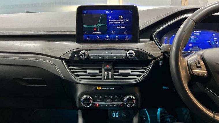 12.3" digital colour instrument cluster, Active noise cancellation, Ford easy fuel, Ford SYNC 3 with 8" TFT LCD touchscreen, App Link, andriod auto/apple carPlay, emergency assistance and navigation with Ford pass connect, Front and rear parking sensors, Geo awareness, Hands free power tailgate, Lane keeping aid with lane departure warning, Power assist steering, Rear view camera, Selectable drive modes, Service interval indicator, 3-Pin Home charge cable (230V/16A Domestic socket), 3.7 kW monophase on board charger, Standard suspension, Twist beam rear suspension, B&O premium audio system with 10 speakers and subwoofer, 2 USB ports, DAB radio/CD, Auto dimming rear view mirror, Auto headlamps with high and low beam, Auto wipers, Front and rear vignale fascia, Front LED fog lamps, LED daytime running lights, LED rear lights, Memory functionality with door mirrors, Power folding heated door mirrors with puddle lights, Power front/rear windows with global close, Privacy glass, Quickclear heated windscreen, Rear side wing doors, Rear spoiler, Rear wiper, Silver roof rails, Third brake light, Twin exhausts, Vignale body styling kit, Vignale front scuff plates, Vignale rear diffuser, 10 way power adjustable drivers seat with memory function, 2nd row sliding seats with 60:40 split, 8 way manual passenger seat including lumbar support and height adjust, Ambient lighting, Centre console with electronic parking brake, Dual electronic automatic temperature control, Front and rear head restraints, Heated passenger and driver seats, Heated rear seats, Heated steering wheel, Rear charging point, Single front passenger seat, Vignale front and rear mats, Vignale premium touch sensico steering wheel, Vignale seating with premium leather upholstery, 3x3 point rear seatbelts, Airbags - front driver/passenger, front and rear curtain, Drivers knee airbag, Electronic stability control (ESC) and ABS, Ford MyKey Gen 2 safety system, Manual child proof rear door locks, Post collision braking, Pre collision assist with autonomous emergency braking, Rear seat Occupancy alert, Tyre pressure monitoring system, Engine immobiliser, Keyless entry and Ford power start button (Keyless start), Locking wheel nuts, Remote powered central double locking doors, Thatcham category 1 alarm, Leather wrapped instrument panel, 19" 5x2 spoke luster nickel alloy wheels,
