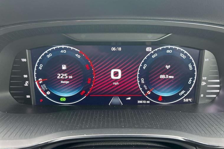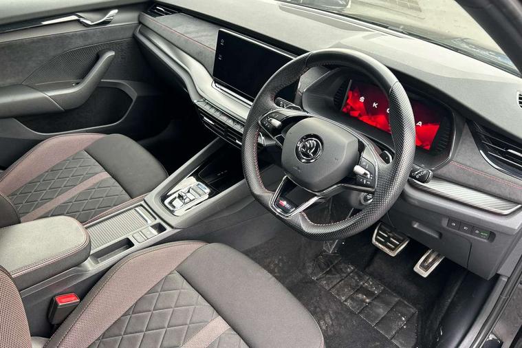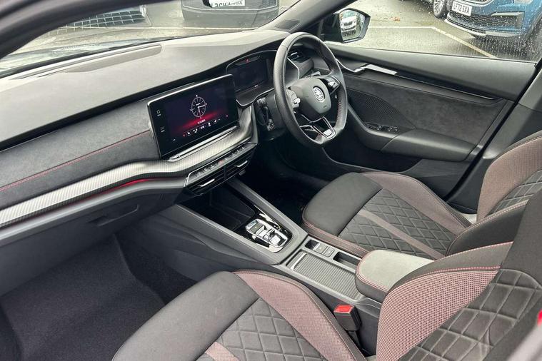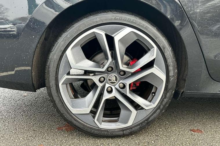 1x USB Type C port in rear view mirror (charging only), 2x USB Type C ports in rear of front centre armrest (charging only), Bluetooth system, Columbus satellite navigation with 10" touchscreen display, Driver fatigue sensor, eCall emergency system, Front and rear parking sensors with manoeuvre assist, Front assist system, Progressive dynamic steering, Smartlink (includes android auto and mirrorlink), Speed limiter, Turn Assist, Virtual Cockpit - 10.25" digital display, Voice control system, Wireless SmartLink for Apple Car Play, Front and rear stabilizers, 2x USB Type C ports (for charging and data transfer), 8 Speakers, DAB Digital radio, Aero front windscreen wipers with intermittent function, Auto dimming rear view mirror, Body colour door handles, Chrome exhaust tailpipes, Door sills with vRS logo, Electric front and rear windows, Exterior gloss black sports styling including front grille, side strip, window surrounds, door mirror and badging, Full LED Matrix headlights with AFS and cornering front fog lights, Headlight washers, Heated rear windscreen, High level third brake light, Ice scraper in fuel cap, LED daytime running lights, Rain and light sensors, Rear fog light on one side, Rear privacy glass, Rear side wing doors, vRS bumpers and lip spoiler, 3 rear headrests, 3 seat bench in 2nd row, 4 foldable roof handles, Aluminium pedals, Black headlining, Black microsuede padded dash panel with red contrast stitching, Chrome inner door handles, Front centre armrest, Front head restraints, Heated front seats, Illuminated glovebox, Leather trimmed gearshift lever, Luggage compartment lighting x1 light, Mechanical rear seat release, Parcel shelf - folding, Single front passenger seat, Sunglasses storage, Textile floor mat set, Three spoke leather sports multifunction steering wheel with paddles, Ticket holder, Umbrella in door panel, Unsplit rear bench seat and split folding backrest, LED interior light pack - Octavia, 3 point front/outer rear seatbelts+pre-tensioners, Alarm with interior monitoring, tilt sensor and back up horn, Automatic door unlocking in case of crash, Automatic fuel cut off in case of crash, Automatic warning lights in case of emergency braking, Curtain airbags and front side airbags, Driver and front passenger airbags, Drivers knee airbag, Electronic parking brake, Emergency call and proactive services, ESC including ABS, EBV, MSR, ASR, EDS, HBA, DSR, Front and rear disc brakes, Front central airbag, Hill hold control, Hill start assist, ISOFIX on front passenger seat and outer rear seats, Manual rear child locks, Passenger airbag deactivate switch, Red brake calipers, Two tone horn, Tyre pressure monitor, Visual and acoustic seat belt reminder, Warning reflectors in front door, Door locks with immobiliser, Keyless entry and start/stop including rear doors, Remote central locking, Carbon optic decorative inserts, Gloss black air vent surrounds, 19" Altair anthracite alloy wheels,