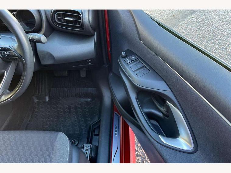 Adaptive cruise control, Adjustable speed limit with speed warning, Bluetooth connectivity, Colour binocular inspired displays with digital speedometer, E-call, Electric power steering, Hybrid energy display, Multi information display switches on steering wheel, Reversing camera, Smartphone integration with Apple CarPlay and Android auto, Tailgate, Voice recognition, Vehicle Stability Control (VSC), 4 speakers, 8" Multimedia display touch screen, USB connection, Acoustic windscreen glass, Auto windscreen wipers, Automatic headlights, Body coloured door mirrors, Electric adjustable heated door mirrors, Follow me home headlights, Front auto power windows with anti jam protection, Full LED rear lights, LED daytime running lights, LED front fog lights, LED front light guide, LED Headlights, LED High mounted stop lamp, LED Indicators, LED rear light guide, Manual headlight levelling, Painted chequered front grille, Rain sensor, Rear auto power windows with anti jam protection, Rear privacy glass, Rear side wing doors, Rear spoiler, Rear wiper, Shark fin antenna, Turning signal integrated indicators in door mirrors, Variable front intermittent wipers, 3 adjustable rear headrests, 3 spoke leather steering wheel, 60/40 split folding rear seat, Active headrests, Adjustable boot height, Auto air conditioning, Coat hooks in rear grab handles, Cup holders (2 front & door), Data Communication Module (DCM) connected services, Fabric upholstery, Front armrest, Glovebox, Grey roof lining, Height adjustable driver's seat, Isofix seat fixing, Leather gearshift, Pollen filter, Shopping bag hooks, Single front passenger seat, Tilt/telescopic steering column, 3 point seatbelts on all rear seats, ABS+EBD+Brake assist, Electronic parking brake, Emergency brake light system (EBS), Front passenger airbag on/off switch, Front seatbelt reminder, Hill start assist control (HAC), Rear child proof door locks, Rear seat belt reminder, Supplemental Restraint System (SRS) 8 airbags: Driver & passenger's airbags, dual side curtain airbags, side impact airbags, front centre airbag, Toyota Safety Sense 2, Precollison + Night time Pedestrian & Cyclist Detection, Lane Trace Assist, Auto High Beam, Intelligent ACC & Road Sign Assist, Tyre pressure warning system, 2x Master key, Alarm/immobiliser, Remote powered central double locking doors, Soft touch instrument panel, Space saver spare wheel,