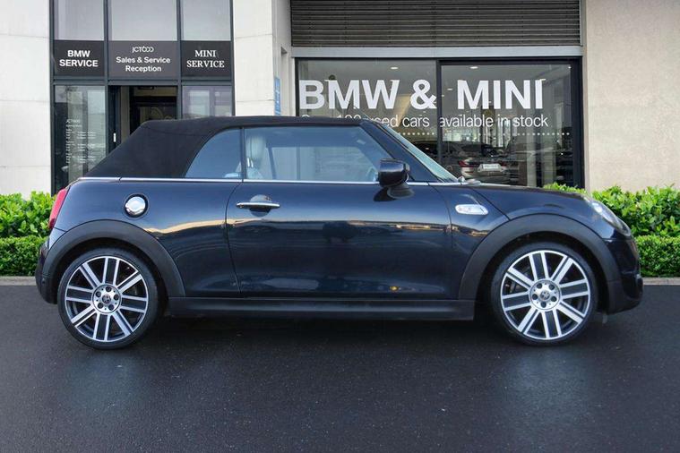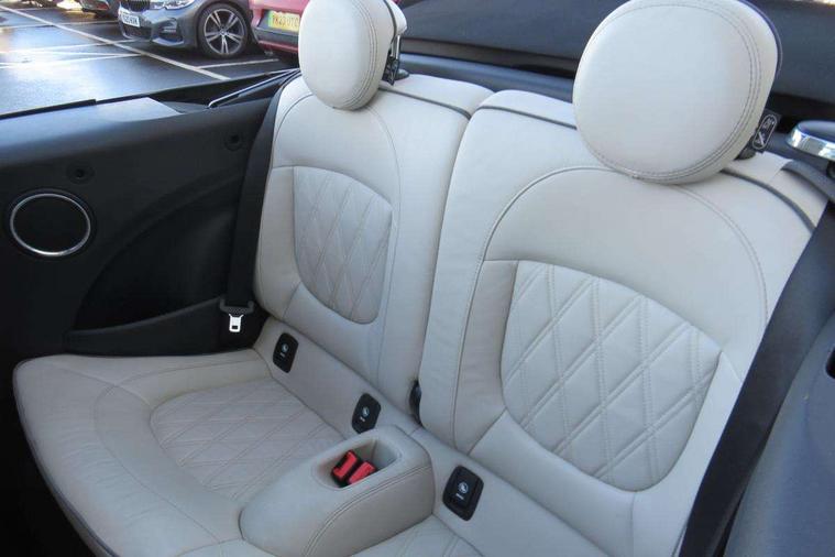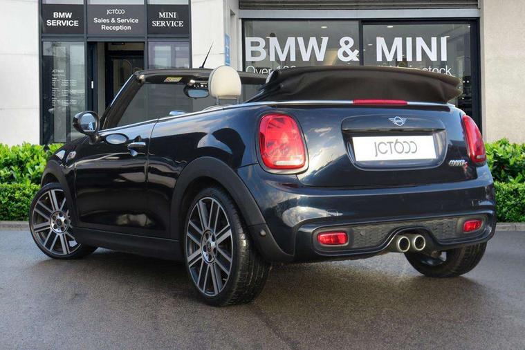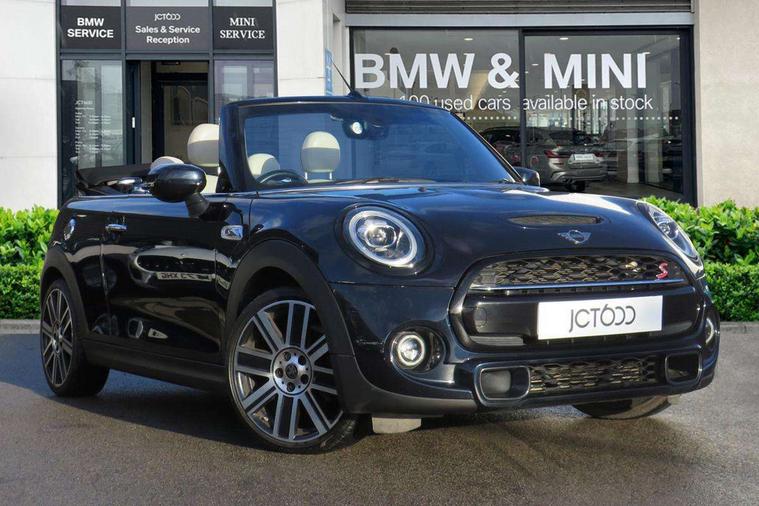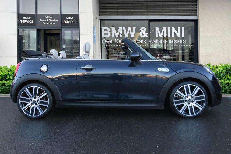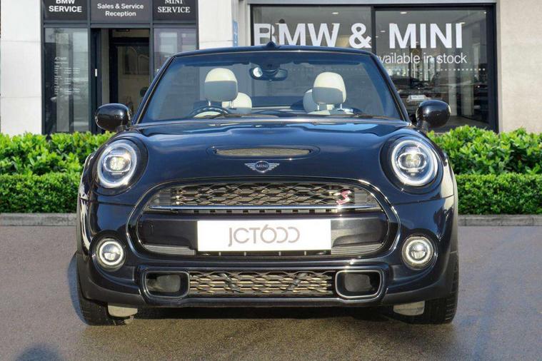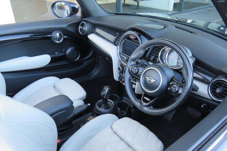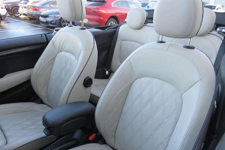Automatic start/stop function with brake energy recuperation, Compatible mobile phone bluetooth with audio streaming, Electro-mechanical speed dependant steering assistance, Instrument cluster, Mini E-call, MINI TeleServices, On board computer, Rear park distance control, Service interval indicator, Double Vanos system, Fully variable valve control, High precision injection, Performance Control, Steptronic sport transmission with double clutch and steering wheel paddles, 6.5" touchscreen with LED ring, FM tuner and DAB digital radio, Automatic headlight activation switch, Bonnet scoop, Chrome plated fuel cap, Dynamic brake lights, Electric windows, Fully electric black softtop with integrated sunroof functionality, Heated rear window, Heated windscreen washer jets, LED headlight with closed ring and daytime driving lights, Metal door sill strips with Cooper S imprint, Model logo Cooper S on right of tailgate, Radiator grille bars, tailgate handle, lower front grille grating, rear central fog light in chrome, Rain sensor window wipers, Rear fog lights, Rear LED lights with union jack design, Side scuttle panel with integrated indicator, Sun/heat protection glass, Two central exhaust tailpipes with chrome finisher, White indicator lenses, 12V Accessory socket in centre console, 4 lashing eyes in luggage compartment, 50/50 split folding rear seats, Air vents, gear lever base, speakers in doors, door handles in chrome, Chrome interior highlights, Cupholders, Easy Load boot handles, Front and rear head restraints, Front and rear isofix with front passenger airbag deactivation, Front seatback storage pockets, Glove compartment, Height and length steering column adjustment, Interior lighting with 12 basic colours selectable via toggle switch in roof, Leather gearshift lever and handbrake gaiters, LED reading lights, vanity mirror lights, front foot well light and spotlight on front seats, Manual air conditioning, Mechanical seat adjustment, driver seat height adjust, forward/back and front seats backrest, Mini logo projection on floor from drivers exterior mirror, MINI Yours fine walk nappa leather steering wheel with contrast stitching in silver and MINI Yours badge, Multifunction steering wheel, Storage compartments in doors, Sunvisors with vanity mirrors, Tool kit, 3 point seatbelts on all four seats, 6 Airbags - front, side and seat belt tensioners, Active rollover protection, Anti-lock braking system (ABS), DSC - Dynamic Stability Control, Front and rear disc brakes, Hill start assist, Two tone horn, Tyre pressure monitoring system, Alarm system with tilt sensor, monitoring doors, bonnet interior and tailgate, Electronic vehicle immobiliser, Keyless Go, Chrome line interior,