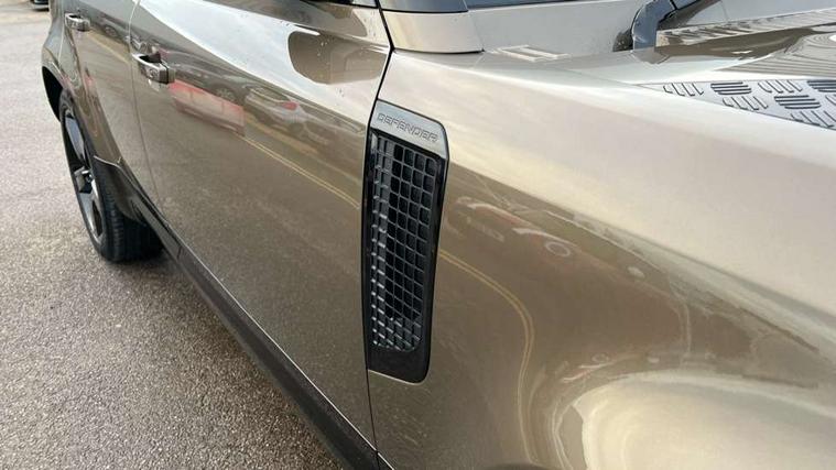 1 x USB-C (power only) & 1 x USB-C (power & data) in Row 1, 2 x USB-C in Row 2, 11.4" touchscreen, 2 x USB-C in Row 3, 360 degree parking aid, 3D Surround Camera with 360 View, 180 Rear View, Front Traffic Detection, Forward Vehicle Guidance, Tow Hitch Assist and clear sight Ground View, Adaptive cruise control, Android Auto, Apple CarPlay, Blind spot assist, Bluetooth system, Brake pad wear indicator, Clear exit monitor, Connected navigation pro, Driver condition monitor, Electric power assisted steering (EPAS), Interactive driver display, Lane keep assist, Push button start, Rear collision monitor, Rear traffic monitor, Traffic sign recognition with adaptive speed limiter, Trip computer, Wireless device charging, 8 speed automatic transmission, All wheel drive system, Twin speed transfer box, DAB Radio (Digital Audio Broadcasting), Meridian 700w surround sound audio system with 15 speakers, Pivi pro connected, Automatic headlight levelling, Automatic headlights, Black exposed rear recovery eyes, Body coloured bonnet, Centre high mounted stop light, Electric heated/power fold door mirrors with approach lights and auto dimming driver side, Electric windows with one touch open/close and anti-trap, Follow me home lighting, Front fog lights, Heated rear window with timer, Heated windscreen, Illuminated metal treadplates with brand name script, LED tail lights, Matrix LED headlights with signature DRL, Privacy glass, Puddle lights, Rain sensing windscreen wipers, Rear fog lights, Rear side wing doors, Rear wiper, Side hinged tailgate, Sliding panoramic roof, Standard tail door, Trailer stability assist, X-Dynamic badge, 12V power socket in loadspace, 2 seat bench in 3rd row, 3 seat bench in 2nd row, Alpine lights, Configurable cabin lighting, Durable rubber cabin flooring, Durable rubber loadspace flooring, Electric reach + rake adjustable steering column, Electrically adjustable steering column, Extended leather upgrade, Footwell lights, Front head restraints, Front passenger isofix child seat attachment, Heated steering wheel, Loadspace cover, Loadspace Hook, Multifunction steering wheel, No flat load floor storage, Overhead stowage for sunglasses, Rear headrests, Rear ISOFIX, Rear reading lights, Single front passenger seat, Soft close tail door, Storage glovebox, Sunvisors with illuminated vanity mirrors, Twin front cupholders, Air suspension pack - Defender SE/HSE/X-Dynamic SE/X-Dynamic HSE, Non-smoker package, Online pack with data plan - Defender, 7 three point seatbelts, ABS, Brake hold function, Cornering brake control (CBC), Customer configurable autolock, Driver and passenger airbags, DSC - Dynamic Stability Control, EBD - Electronic brakeforce distribution, Electric parking brake (EPB), Emergency brake assist, Emergency braking, ESP + traction control, Front airbags with passenger seat occupant detector, HDC - Hill descent control, Hill launch assist, Low traction launch, Power operated child locks, Remote for (e-Call, Optimised assistance call, InControl app, Climate, beep and flash and door), RSC - Roll stability control, Seat belt reminder, TPMS (Tyre pressure monitoring system), Alarm, Immobiliser, Intrusion sensor, Keyless entry, Locking wheel nuts, Secure tracker pro,