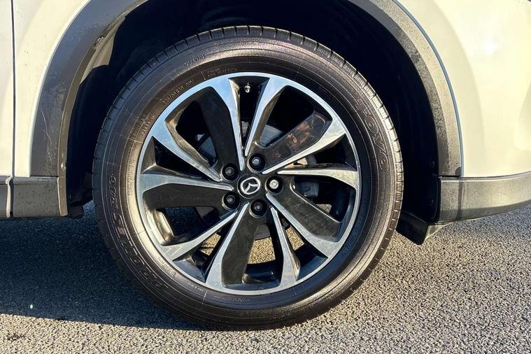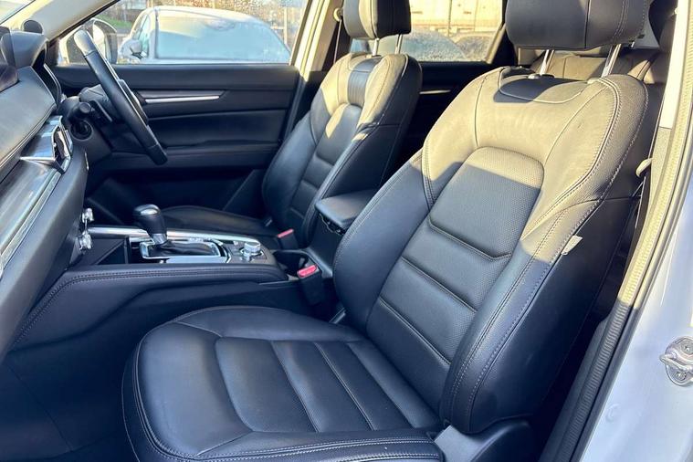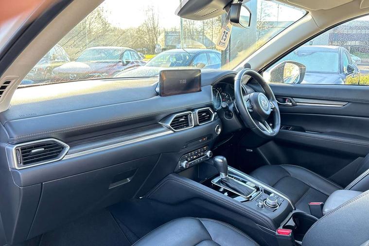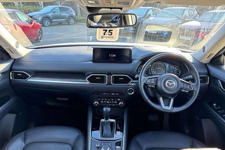 10.25" display with Mazda Connect infotainment, 7" colour TFT display, Apple car play/Android Auto, Blind spot monitoring with rear cross traffic alert, Bluetooth connectivity with voice control, Collision prevention assist, Connected services, Cruising Traffic Support, Drive mode selector, Electric power steering, Emergency stop signalling system, Engine start/stop button, Forward collision warning, Front and rear parking sensors, Integrated navigation system, Intelligent speed assist, Lane departure warning system, Lane keep assist, Qi wireless phone charging, Radar cruise control with Stop and Go, Reversing camera, Service indicator, Traffic sign recognition (TSR), Trip computer, Windscreen projected colour active driving display (HUD) with memory, i-stop, 2 USB sockets in rear, 2x USB sockets in front, AM/FM radio, Bluetooth audio streaming, Bose premium sound system with 10 speakers, DAB Digital radio, Multimedia Commander including separate volume dial, Steering wheel mounted audio controls, Adaptive front lighting system, Auto dimming rear view mirror, Automatic headlights, Black inlay dashboard panel, Body colour door mirrors, Body colour roof spoiler, Body coloured front and rear black lower bumper mouldings, Bright finish signature wing, Coming/leaving home lighting function, Door mirror integrated indicators, Dual chrome tailpipes, Dusk sensitive headlamps, Electric front/rear windows with one touch auto up/down, Front grille in gloss black finish, Gloss black B and C pillars garnish, High beam assist, Intermittent rear wash/wipe, LED auto levelling, LED daytime running lights, LED front fog lights, LED Headlights, LED third brake light, Power folding and heated door mirrors, Power tilt/slide sunroof, Privacy glass (rear side windows only), Rain sensing front wipers, Rear side wing doors, Satin black side mouldings, Scuff plates, Shark fin antenna, Signature LED rear combination lights, Vinyl with wood grain metal inlay door trim panel, Windscreen wiper de-icer, 12v electrical power outlet, 3 seat bench in 2nd row, 3 stage heated front seats, 40:20:40 Karakuri fold-flat seat system, 6 way electric adjustable passenger seat, 8 way electric driver seat with lumbar support + memory, Cargo room flat floor board with waterproof undertray, Driver seat power slide, recline and height adjustment, Driver, Front passenger and two rear grab handles with coat hooks, Driver/passenger front seatback pockets, Driver/passenger sunvisors + illuminated vanity mirrors (drivers with ticket holder), Dual zone climate control, Folding centre armrest with 2 cup holders, Front and rear door pockets, Front centre storage with two cupholders, Front passenger seat power slide, recline and height adjustment, Heated steering wheel, Humidity sensor, Illuminated glovebox, Interior dome light with integral spotlight, ISOFIX child seat anchorage points attached on outer rear seats, Karakuri tonneau cover, Leather upholstery, Leather wrapped steering wheel and gear knob, Light roof lining, Luggage compartment LED lighting, Luggage compartment power outlet, Paddle shifts, Rear air vents, Rear headrests, Rear seat recline, Roof mounted sunglasses holder, Single front passenger seat, Three height adjustable head restraints, Tilt/height adjustable steering wheel, White interior LED illumination lighting, 3 point front seatbelts with pre-tensioners, 3 rear 3 point seatbelts, ABS, Advanced Smart City Brake Support - SCBS, Child locks on rear doors, Driver and front passenger side airbags, DSTC-Dynamic Stability and Traction Control, Dual front airbags, Electronic brake force distribution, Electronic parking brake with auto hold, ESP, Front and rear curtain airbags, Front passenger airbag deactivation, G-Vectoring control, Hill hold assist, Seatbelt reminder front and rear, Single stage passenger airbags, Smart brake support with forward obstruction warning, Tyre pressure monitoring system, Automatic door locking when moving off, Deadlock, Immobiliser, Power door locks, Remote central locking, Smart keyless entry, Thatcham Cat.1 alarm, 19" diamond cut black alloy wheels, Tyre repair kit,