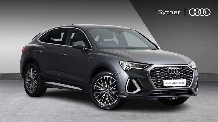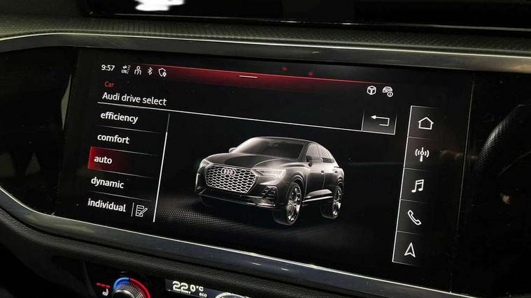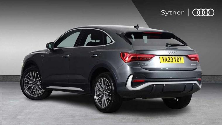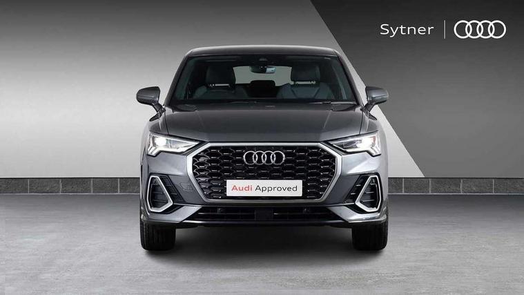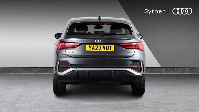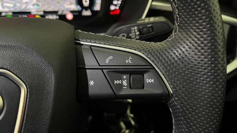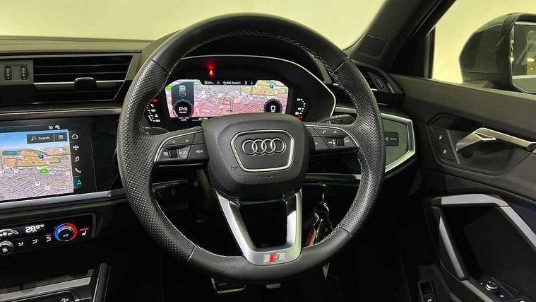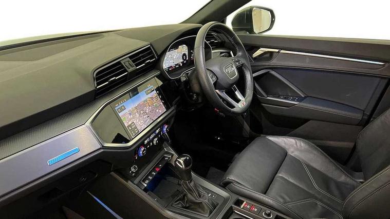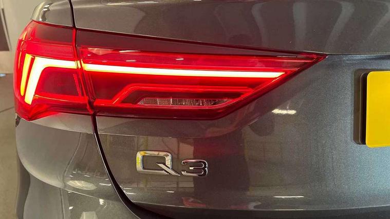 Audi drive select, Audi lane departure warning, Audi Virtual Cockpit - 10.25" display, Bluetooth interface, Camera based traffic sign recognition, Legal emergency call, MMI Navigation Plus with high resolution 10.1 inch touchscreen colour display, Power operated tailgate, Progressive steering, Service interval indicator, Smartphone interface includes wireless Apple carplay/Android Auto, Start stop system with recuperation, Voice control system with natural language interaction, Sports suspension, 2 USB-C ports with charge and data functions, 6 passive loudspeakers, DAB digital radio module, Acoustic windscreen, Aluminium window trim, Auto dimming frameless rear view mirror, Diffuser grille in grained matt black, Diffuser trim in selenite silver, Electrically folding, adjustable and heated door mirrors with integrated LED side indicators and kerb view function for passenger side, Front and rear electric windows, Front fog lights, Front side air inlets in selenite silver, Front underbody protection in manhattan grey paint finish, Grille surround in aluminium silver matt, High gloss black finish B and C pillars, LED Dynamic rear indicators, LED headlights with LED daytime running lights, LED rear lights, LED third brake light, Privacy glass dark tinted rear and rear-side windows (from B-pillar backwards), Radiator grille in anthracite black with inlay in matt aluminium silver, Rain and light sensors, Rear side wing doors, Rear underbody protection in matt black, Rear wiper, S line badges on front wings, S line front and rear bumpers and side skirts in contrasting Manhattan grey paint finish, Side skirt insert in matt Platinium grey, Variable front intermittent wipers, 12V socket in rear centre console, 3 seat bench in 2nd row, 3 spoke leather multifunction steering wheel features S badging and grips in perforated leather with contrast stitching, 40:20:40 folding with manual adjustment for 60:40 forwards/backwards position and backrest angle, Adjustable rear seat bench/backrest with centre armrest and cupholder, Black cloth headlining, Dual zone electronic climate control, Front and rear black floor mats with contrast stitching, Front and rear headrests, Front and rear roof module including reading lights, Front centre armrest, Glove compartment lighting, Height and reach adjustable steering wheel, Illuminated door sill trims with S logo, ISOFIX child seat mounting for front passenger with airbag deactivation and outer rear seat including top tether attachment point for outer rear seats, Luggage compartment light right in white, Luggage compartment sill protection in stainless steel, Manual front seats with height adjustment, Perforated leather gearknob, Single front passenger seat, Stainless steel pedals, Ambient lighting pack - Q3, Non smoking pack - Q3, 3x3 point rear seatbelts, 6 airbags - Driver, front passenger, curtain and side windows, Audi pre-sense front with pedestrain and cyclist recognition, Electrically operated child locks on rear doors, Electromechanical parking brake, Electronic stabilisation control including ABS, ASR and EDL, Front seatbelt reminder, Hill descent control, Hill hold assist, Pre sense basic, Seatbelt monitoring, Tyre pressure warning, Warning triangle and first aid kit, Anti theft alarm, Anti theft wheel bolts, Immobiliser, Remote central locking, Aluminium look interior elements, Black dashboard, Dark matt brushed aluminium inlay, Detail dashboard around MMI touch colour display in glass look, black with surround in aluminium look, Leatherette door armrest,
