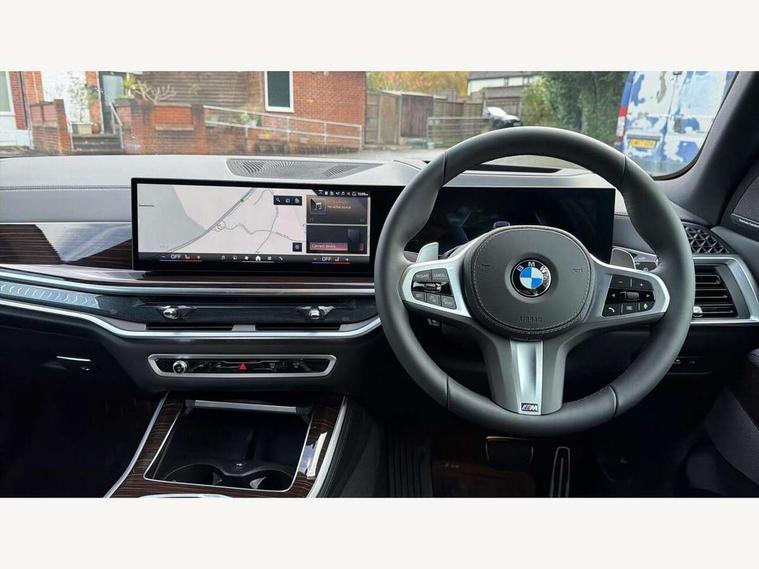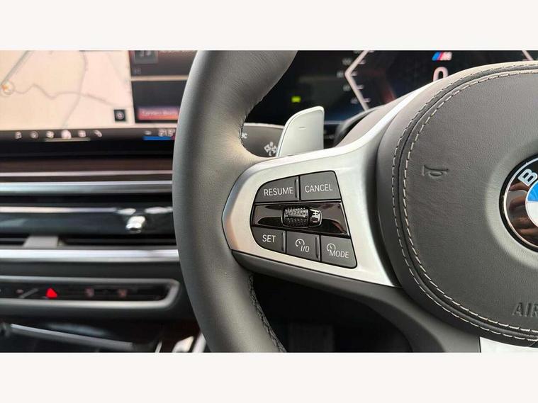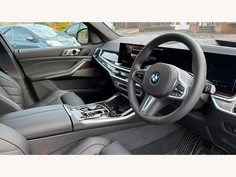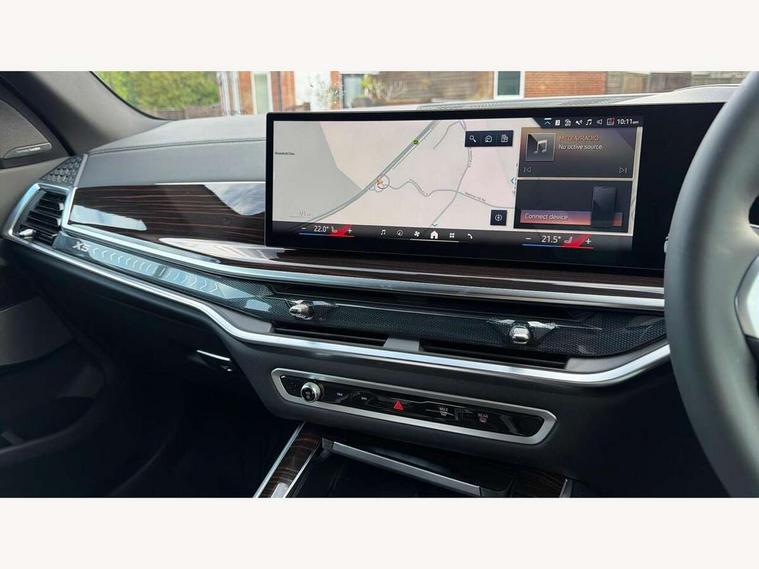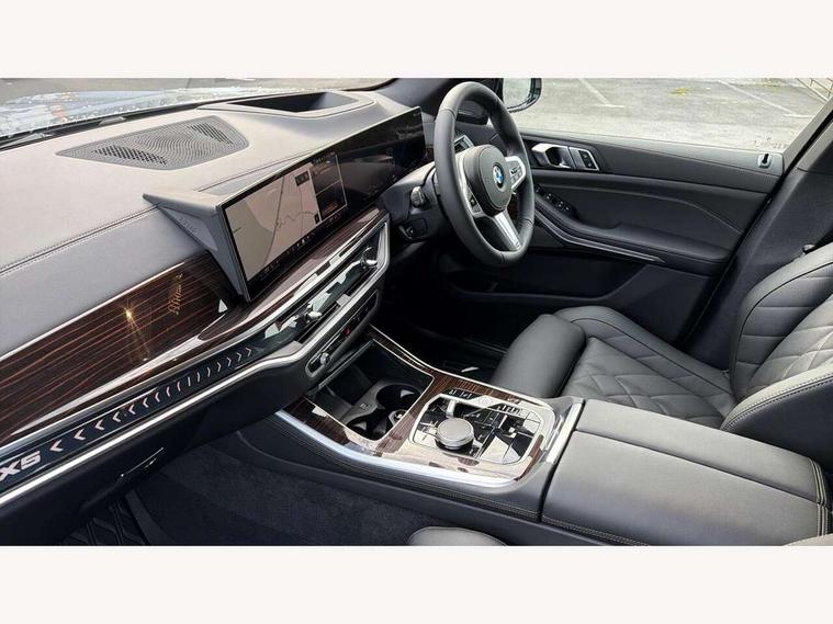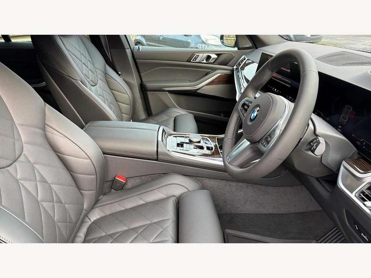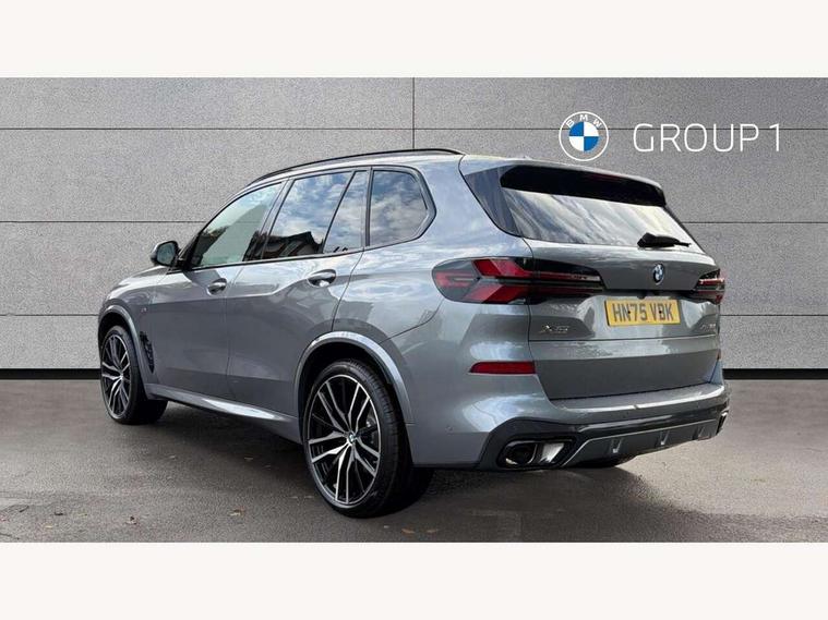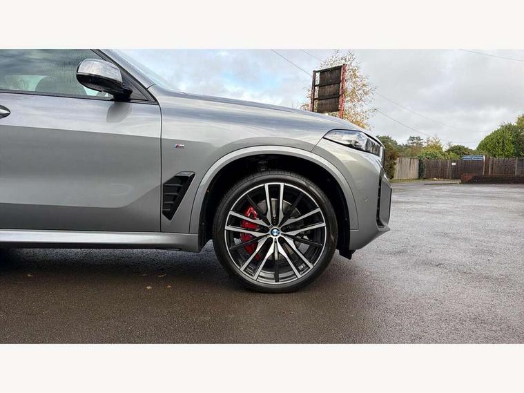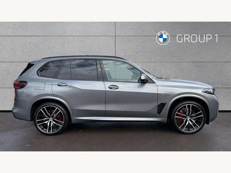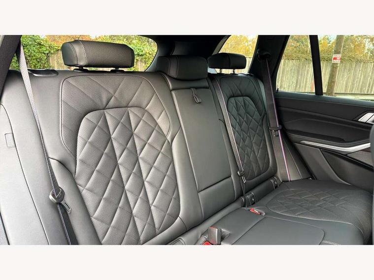 Attentiveness assist, Automatic tailgate operation, BMW ConnectedDrive online services, BMW live cockpit + with curved 12.3 instrument cluster/14.9 central display, nav/Tuner with diversity reception, RDS/4GLTE/remote software upgrade, BMW Recovery system, BMW Teleservices, Condition based service, Cruise control with brake assist, eCall emergency call system, Enhanced bluetooth with wireless charging, Integrated owner's handbook, PAS, Speed limiter, Wi-Fi hotspot, Drive performance control with ECO PRO comfort + sport mode, Eight speed steptronic sport automatic transmission and gearshift paddles on the steering wheel, Adaptive LED Headlights, Front and rear electric windows, High beam assistant, High gloss black shadow line roof rails, LED daytime running lights, Rain sensor, Rear side wing doors, Third brake light in rear spoiler, Variable intermittent rear wash/wipe, 12V - Power sockets with 2x centre console and 1x luggage compartment, 3 seat bench in 2nd row, Entry sills illuminated BMW inscription front and rear, Foldable rear centre armrest with 2 cupholders and storage compartment, Front and rear side armrest integrated into door trim, Grab handles in 1st and 2nd row of seats with Integrated in headliner, at rear with coat hooks, plastic, Headrests for all seats, Luggage compartment separating net, Lumbar support with height and depth adjustment in backrest, Single front passenger seat, Sunvisors with illuminated vanity mirrors and ticket pocket, Three spoke sport M leather steering wheel, Velour floormats, Ambient light interior pack - X5, Driving assistant pack with radar based driver assistance system - X5, Expanded exterior mirror pack - X5/X5 M, M aerodynamics pack - X5, Parking assistant pack - X5, 3 rear seatbelts, Active protection, Airbags - driver/front passenger, rear and side, first and second row seats head airbags, front passenger seat airbag deactivation + knee airbag, Anti-lock braking system (ABS), Automatic Stability Control (ASC), Brake energy regeneration, Cornering brake control (CBC), Crash sensor activating central locking release, hazard warning lights, fuel cut off, interior lighting + activation of safety battery terminal clamp, DSC - Dynamic Stability Control, Dynamic Traction Control - DTC, Electromechanical parking brake with automatic drive away release and auto hold function, Electronic brake force distribution, Hill start assistant, M Sport blue painted brake calipers with 'M' designation, Mechanical child proof lock on rear doors, Tyre pressure monitoring system, Tyre pressure sensors, Ventilated front and rear disc brakes, Warning triangle and first aid kit, Alarm system, Closing system with central locking, Comfort access system, Locking wheel bolts,