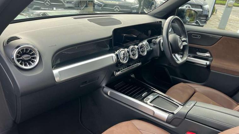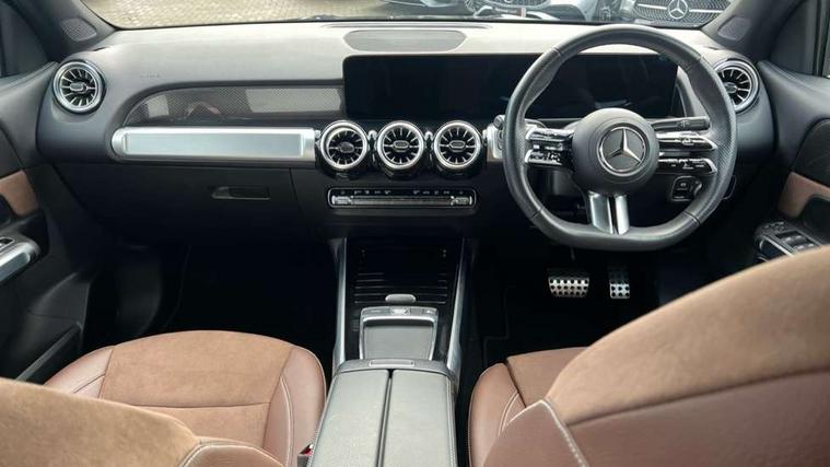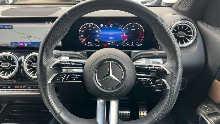 10.25 inch touchscreen central media display, 10.25" Digital instrument cluster display screen, 12 ultrasonic sensors in front and rear bumpers, 180 degree reversing camera with parking guidelines, Additional drive program "OFF-ROAD", Assisted parking: reversing backwards into perpendicular and parallel parking spaces, Attention assist - Monitors steering behaviour and long journey fatigue, Blind spot assist, Bluetooth connection, Brake pad wear indicator warning light, Car wash mode, Convenience opening and closing, Direct steering, DYNAMIC SELECT with a choice of driving modes (ECO, Comfort, Sport and Individual), ECO start/stop function, Engine start/stop button, Exit warning function, Fluid level warning indicator for fuel, oil, coolant and washer fluid, Hard disk navigation, Hey Mercedes Voice activation, Lamp failure indicator, Lane keep assist, MBUX navigation premium, Mercedes me connect including emergency call system, accident recovery, breakdown and maintenance management, Mercedes me remote services, Outside temperature gauge, Owners manual and service booklet in English, Pre-installation of private car share, Preinstallation for parking damage notification, Radio aerial integrated into front and rear windshields, Remote boot closing, Service indicator (ASSYST), Smartphone integration with Apple CarPlay and Android auto, Speed limit assist, Tailgate, Trip computer in multifunction display with current consumption indicator, Ultrasound sensors - positioned in the handle of the tailgate, Wireless charging, Comfort suspension with ride height lowering, Rear axle multi-link, 1 USB-C port in the oddments compartment (Charge + Data transfer), 2 USB-C ports for the rear on the centre armrest (Charge only), 2 USB-C ports under the front centre armrest (Charge + Data transfer), DAB digital radio tuner, MBUX multimedia system, Mercedes Benz sound system (225 W) with 10 speakers, 1 central speaker, speakers on doors, a tweeter on door, one sub woofer + boost amplifier, Pre installation for Mercedes Benz Link, Adaptive brake lights, Adaptive high beam assist, AMG front apron with front splitter in the colour of the vehicle with chrome trim element, AMG rear apron with visible tailpipe trim and chrome trim element, AMG specific/dual flow exhaust pipes in chrome (non-functional), Auto dimming rear view mirror, Beltline trim and window line trim strip in high gloss aluminium, Black grained side sill trim with chrome inlay, Body coloured door handles, Electric adjustable and heated door mirrors with integrated LED side indicators, Electric folding door mirrors, Front and rear electric windows, Headlamp assist automatic headlamp activation, Heat insulating dark-tinted glass starting from B-pillar, Heated glass rear windscreen + timer control, High level LED third brake light, Illuminated door sill panels with Mercedes-Benz lettering, Interior mirror with black reading lamps and frameless, LED high performance headlamps with integrated LED daytime running lights, LED tail lamp, Polished aluminium roof rails, Radiator grille as a diamond grille with chrome pins and central Mercedes star, Rain sensor windscreen wipers, Rear fog lamp, Rear side wing doors, Rear wiper, Single louvre in matt grey with chrome inserts and black highlights, Two visible tailpipe trim elements exhaust, Ultrasonic sensors - positioned in the front and rear bumpers, Wheel arch liners in the colour of the vehicle, 12V socket in the oddments compartment, 3 seat bench in 2nd row, 3 twin spoke flattened multifunction steering wheel in nappa leather - horizontal twin spoke in high gloss black, vertical twin spoke in silver chrome, 4 way adjustable lumbar support, 40:20:40 split folding rear seats, Air conditioning - Two zone thermotronic luxury automatic climate control with display, Air vents with silver chrome surrounds, AMG floor mats, AMG sports pedals with brushed stainless steel surfaces and black rubber studs, Automatic child seat recognition sensor, Black roof lining, Door handles with chrome inserts, Fluorescent jacket, Front and rear headrests, Front centre armrest with stowage, Galvanised steering wheel gearshift paddles in silver chrome, Handle recess lighting, Heated front seats, Height adjustable head restraints, Height/reach adjustable steering column, Interior lighting - 64 colour Ambient lighting, Luggage net on driver/front passenger seat backrest, Single front passenger seat, Sports seats, Stowage compartment with retractable cover, Sun visors with illuminated vanity mirrors, Third row of seats for two people on rear seat, Twin front cup holders, Two outer rear seat isofix and top tether child seat fixing points, Easy pack tailgate, Interior lighting with light and sight pack - GLB, Seat comfort package - GLB, 3 rear 3 point seatbelts, Active bonnet pedestrain safety measure which detects an impact and raises bonnet by 65mm, Active brake assist includes forward collision warning system with autonomous braking, Adaptive brake assist with hold function and hill start assist, Airbags - kneebag for driver, Anti-lock braking system (ABS) with brake assist, Black seatbelts, Bonnet with power domes, Childproof locks manually operated for rear doors and electrically operated for rear power windows, Crash responsive emergency lighting, Curve dynamic assist, Downhill speed regulation (DSR), Driver and front passenger head and sidebags, Driver and front passenger windowbags, Dual stage driver and front passenger airbags, Electric parking brake, Electronic stability programme with acceleration skid control, Front and rear seatbelt reminder, Front brake callipers with Mercedes Benz lettering, Front passenger seat occupancy sensor, Perforated front brake discs, Tyre pressure monitoring system, Warning triangle and first aid kit, Guard 360 degree vehicle protection - Anti theft alarm system, tow away protection with visual, acoustic warning and alarm, Interior monitoring system, Keyless Go Access and drive authorisation sy