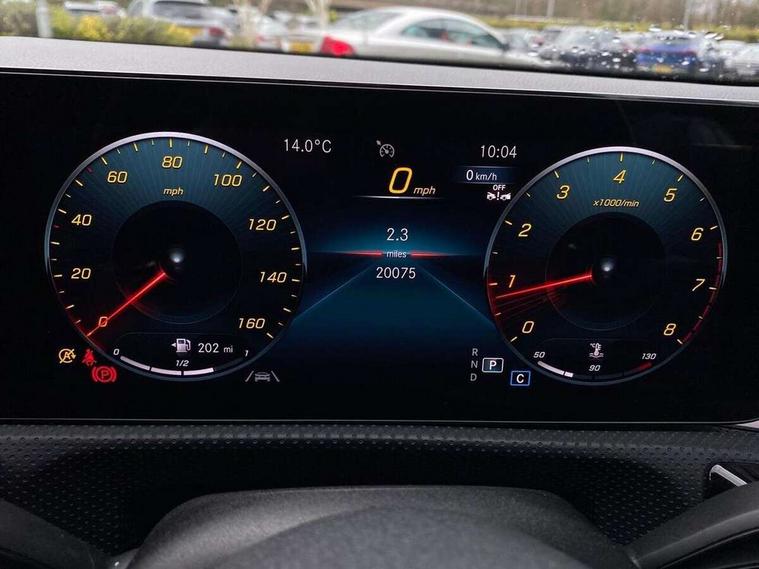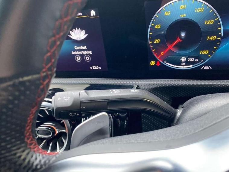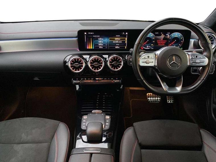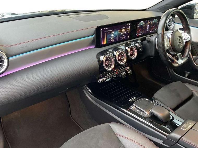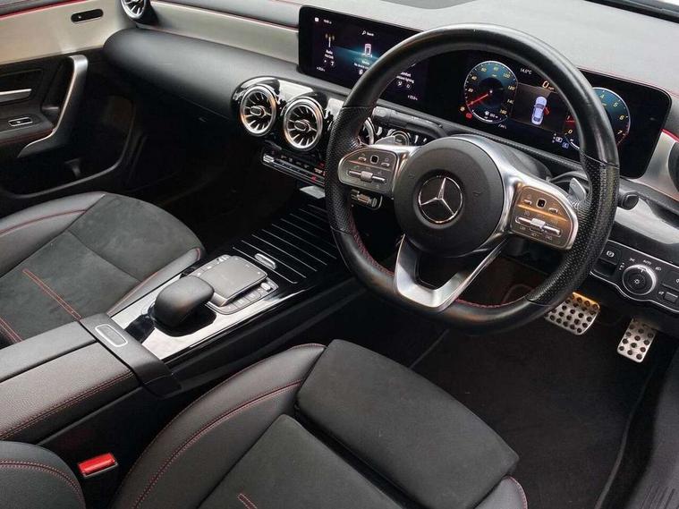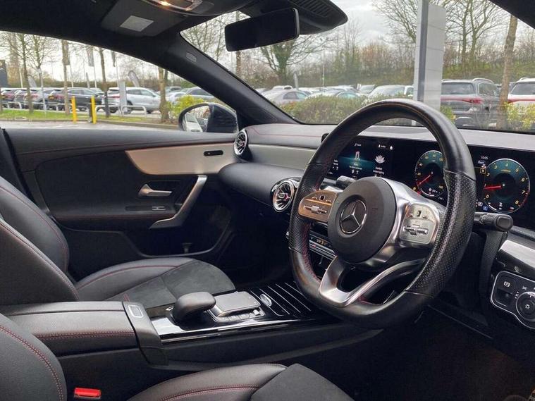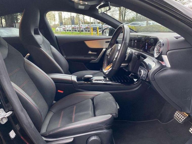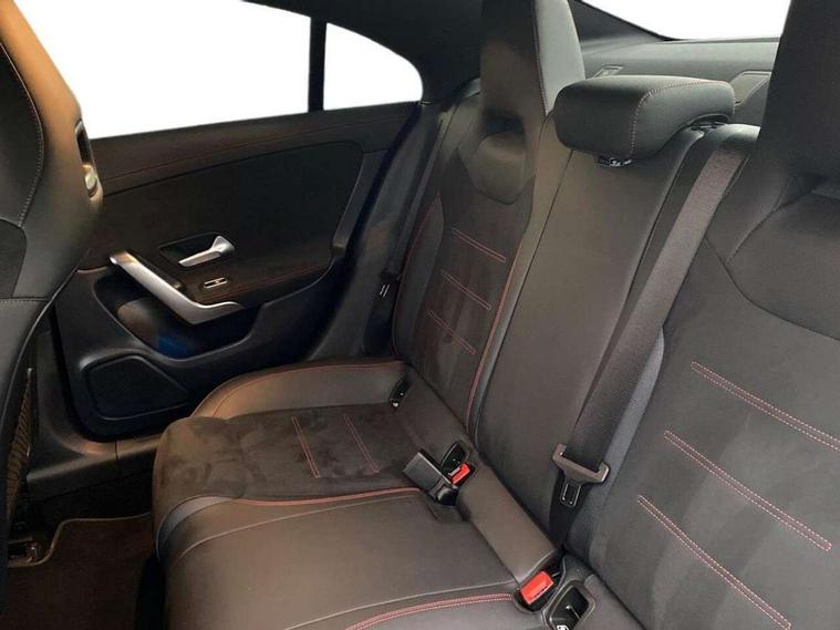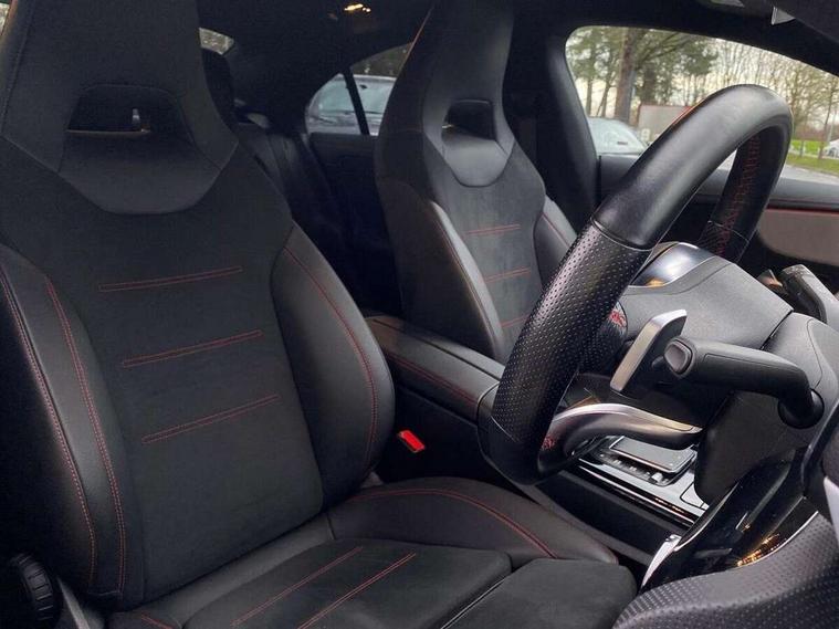10.25 inch Instrument display with digital cockpit, 10.25 inch touchscreen central media display, Active lane keeping assist, Attention assist - Monitors steering behaviour and long journey fatigue, Bluetooth connection, Car wash mode, Cruise control with limiter, Direct steer system with speed sensitive power steering, DYNAMIC SELECT with a choice of driving modes (ECO, Comfort, Sport and Individual), ECO start/stop function, Fluid level warning indicator for fuel, oil, coolant and washer fluid, Hard-disk navigation, Hey Mercedes Voice activation, Lamp failure indicator, Mercedes me connect including emergency call system, accident recovery, breakdown and maintenance management, Mercedes me remote services, Outside temperature gauge, Owners manual and service booklet in English, Pre-installation of private car share, Preinstallation for Mercedes Benz link, Radio aerial integrated into front and rear windshields, Service indicator (ASSYST), Smartphone integration with Apple CarPlay and Android auto, Speed limit assist, Trip computer in multifunction display with current consumption indicator, Lowered comfort suspension, Rear axle multi-link, DAB digital radio tuner, MBUX multimedia system, Mercedes Benz sound system (100 W) with 6 speakers, USB (type C) ports (2) in stowage compartment and 1 in front of centre console, Adaptive brake lights, AMG body styling with AMG front apron and rear apron and visible exhaust tailpipe in chrome trim elements, AMG bodystyling side skirts, Body colour bumpers, Body colour door handles, Chrome beltline strips, Diamond radiator grille pins in chrome, Electric windows, Electrically adjustable and heated door mirrors with integrated LED indicators, Exhaust system with 2 Visible tailpipe trim elements and rear apron with trim in chrome, Headlamp assist automatic headlamp activation, Heated glass rear windscreen + timer control, High level LED third brake light, Interior mirror with black reading lamps and frameless, LED high performance headlamps with integrated LED daytime running lights, LED tail lamp, Privacy glass with dark tinting on rear side windows and rear window, Rain sensing windscreen wipers with two sensitivity settings, Rear boot, Rear fog lamp, Rear side wing doors, Variable front intermittent wipers, Window line trim strip in chrome, 3 seat bench in 2nd row, 3 spoke flattened bottom nappa leather multifunction steering wheel with perforated leather in grip area, 40:20:40 split folding rear seat backrests, Air conditioning - Two zone thermotronic luxury automatic climate control with display, Air vents with surround in silver chrome, Artico man-made leather upholstery, Automatic child seat recognition sensor, Black roof lining, Brushed stainless steel sports pedals with rubber studs, Floor mats with stitched AMG lettering, Front centre armrest with stowage, Front door sills with Mercedes Benz lettering, Galvanished gear shift paddles on steering wheel, Heated front seats, Illuminated glove compartment stowage, Interior lighting - 64 colour Ambient lighting, Luggage net on driver/front passenger seat backrest, Manually adjustable front seats, Manually height and reach adjustable steering column, Rear head restraints, Single front passenger seat, Sport seats with fixed head restraints, Stowage compartment in centre console with retractable cover, Sunvisors with illuminated vanity mirrors, Touchpad on center console, Twin front cupholders, Two outer rear seat isofix and top tether child seat fixing points, Light and sight pack - CLA, Mirror pack - CLA, Night package - CLA, Parking package - CLA, Seat comfort pack - CLA, Active bonnet pedestrain safety measure which detects an impact and raises bonnet by 65mm, Active brake assist includes forward collision warning system with autonomous braking, Adaptive brake assist with hold function and hill start assist, Anti lock braking system (ABS) with brake assist, Black seat belts, Bonnet with power domes, Brake pad wear warning indicator, Childproof locks manually operated for rear doors and electrically operated for rear power windows, Crash responsive emergency lighting, Driver and front passenger head and sidebags, Driver and front passenger windowbags, Drivers knee airbag, Dual stage driver and front passenger airbags, Electric parking brake, Electronic stability programme with acceleration skid control, ESP curve dynamic assist, Front and rear seatbelt reminder, Front passenger seat occupancy sensor, Three point rear seat belts, Tyre pressure monitoring system, Warning triangle and first aid kit, Guard 360 degree guard vehicle protection system with immobiliser and interior protection, Keyless Go starting function, Remote central locking and crash sensor with emergency opening function, Light aluminium with longitudinal grain interior trim, 18" AMG 5 twin spoke light alloy wheels painted in black with high sheen finish, Summer tyres, Tirefit tyre sealant kit,