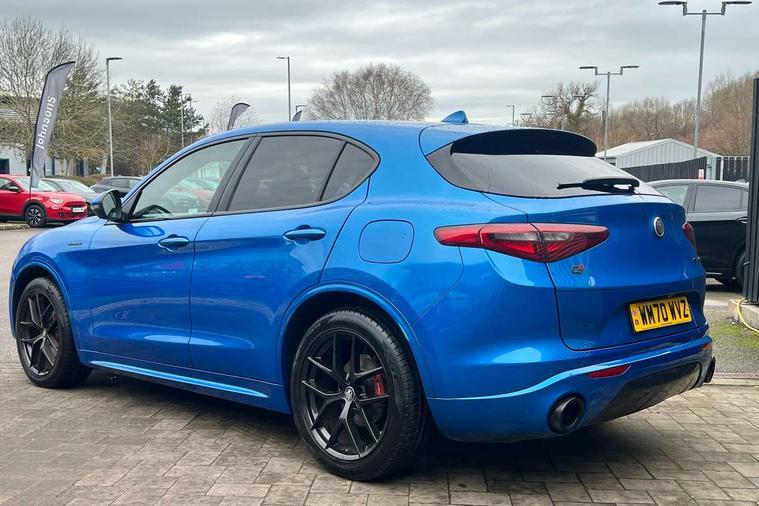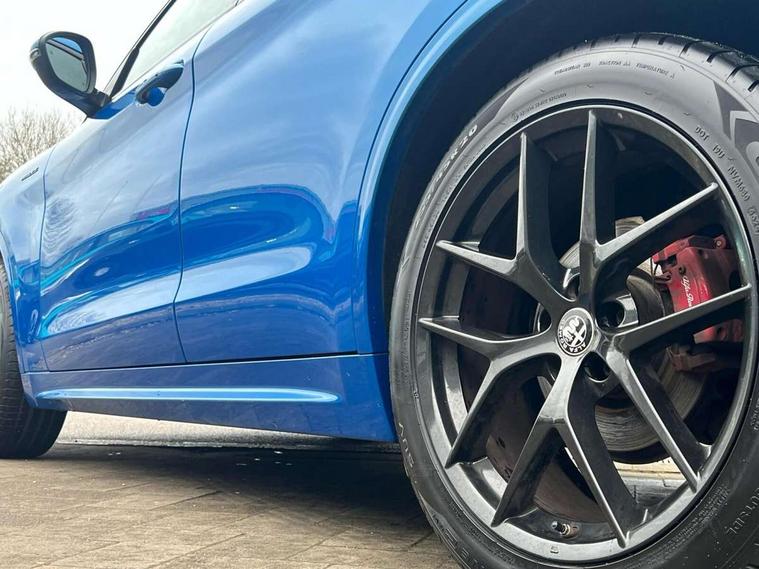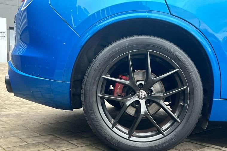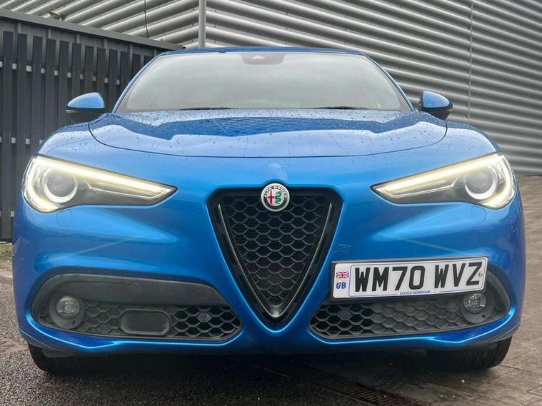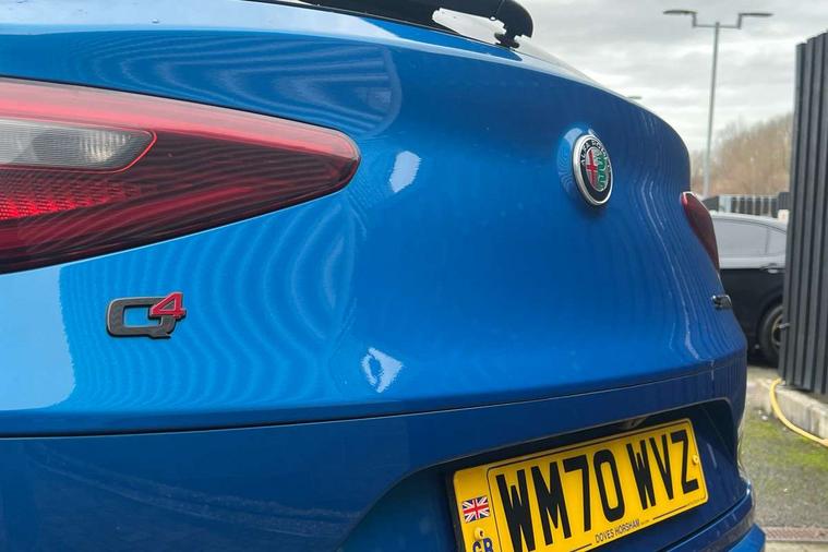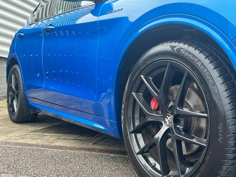 7 - inch colour TFT instrument cluster, 8.8" screen colour display, Alfa Connect 3D Nav 8.8" Infotainment system (radio, 3D Nav, MP3, aux-in, bluetooth), Alfa connect box, Alfa connected services, Alfa Romeo DNA driving mode selector, Apple car play/Android Auto, Forward collision warning, Front and rear parking sensors, PAS, Rear view camera, Remote tailgate release with key fob button, Rotary pad, Stop/start system, TMC Pro, Trip computer, West European Map, Wireless charging pad, DAB digital audio broadcast, USB and Aux in armrest, 35W Bi-xenon headlamp with AFS function, Alfa romeo assistance sticker, Aluminium tunnel cover, dashboard insert and door handle surround, Automatic headlights with dusk sensor, Automatic rain sensing wipers, Body colour bumpers, Body coloured side skirts, Body coloured wheel arches, Dark tinted rear windows, Darkened LED rear tail lights, Daytime running lights, Electrically adjustable and folding door mirrors, Gloss black Q4 badge, Gloss black side window surrounds, Headlight washers, LED brake lights, Transportation protection cover, Twin chrome exhaust tailpipes, Veloce badge front wing, 12V outlet on dashboard, 230V/50hz auxiliary power outlet in trunk, Aluminium kick plate, Aluminium metal sport pedals and footrest, Aluminium scuff plates, Aluminium shift paddles on steering column, Black painted interior bezels, Dark headlining, Dual zone auto temp control with humidity sensor, English handbook, Front head restraints, Front/rear floor mats, Leather upholstery, Rear climate control vent, Sport leather steering wheel with multifunctional controls and engine start button, Sports leather gear knob, Sports Leather with 6 way power adjust, power adjustable bolster support and heating, Third rear headrest, Cold weather pack - Stelvio, Convenience pack - Stelvio, Electrically adjustable seats pack, 3x3 point rear seatbelts, ABS, Autonomous emergency braking, Electronic parking brake, Electronic stability control, Hill descent control, Integrated brake system, Manual passenger airbag deactivation function, Traction control, Tyre pressure monitoring system, Alarm system with bonnet and intrusion protection, Immobiliser, Remote central locking, Thatcham vehicle theft alarm with hood protection and intrusion sensor, Monotone wheel centre caps, Summer tyres,