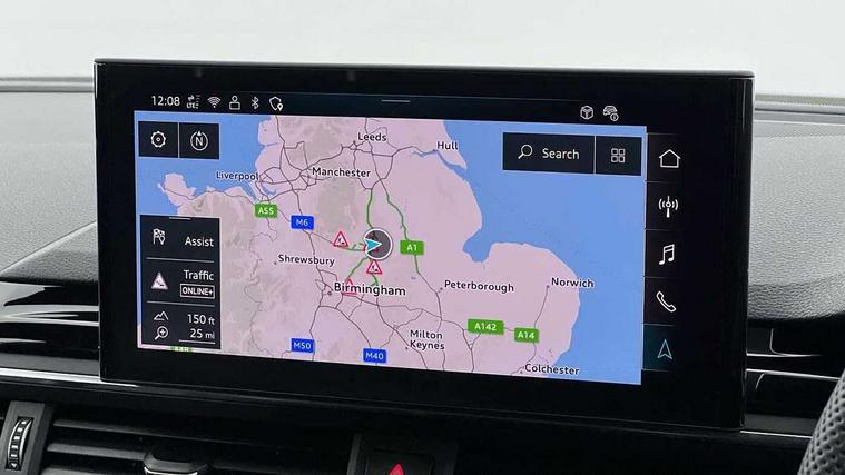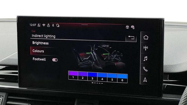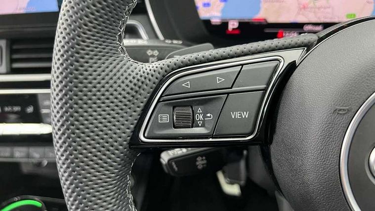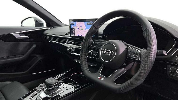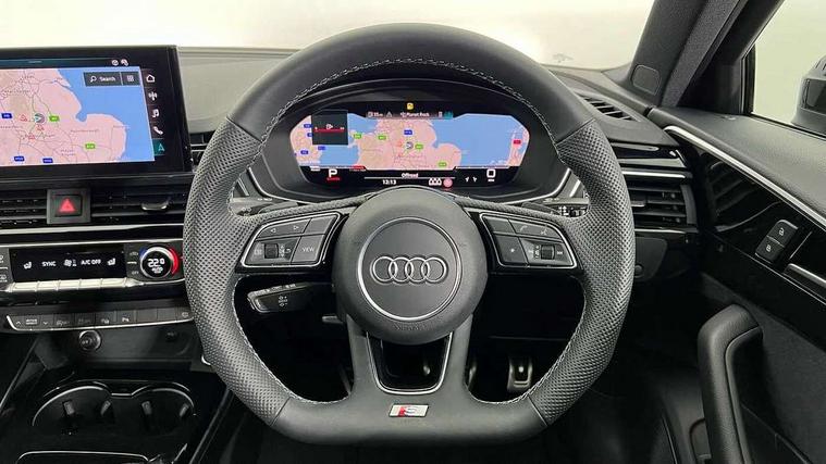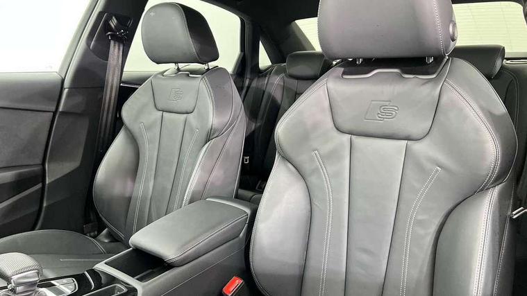 Audi connect safety and service (e-call), Audi drive select, Audi smartphone interface, Audi virtual cockpit, Automatic start-stop system with coasting functionality and efficiency programme, Bluetooth interface, Camera based traffic sign recognition, Electric boot lid release, Electromechanical power steering, Email, calendar and text messages displayed via MMI, Front and rear parking sensors, Lane departure warning, MMI Navigation plus with MMI touch includes 10.1" high resolution colour MMI display, 3D map, Rear view camera, Voice control system, Sports suspension lowered by 23mm, 2 USB charging ports, 8 passive loudspeakers, DAB digital radio reception, Audi beam uses LEDs to project the audi logo onto the ground as you exit your A4, Auto dimming rear view mirror, Black Audi rings and black badging (with removed engine badging), Body colour door handles, Body colour front spoiler lip, Body colour side sill trim, Electric adjustable/heated/folding door mirrors with auto dimming, Exhaust tailpipes in dark chrome, Grained matt black side air inlets with matt aluminium silver inlay, High beam assistant, High gloss black B pillar trims and triangular rear door trim, LED headlights with LED rear lights + dynamic rear indicators + headlight adjustment and high beam, turning light + LED daytime running lights, LED third brake light, Privacy glass, Rain and light sensors, Rear boot, Rear diffuser in matt black with trim strip in matt aluminium silver, Rear side wing doors, Sport front and rear bumpers with side skirts, Variable intermittent front wash/wipe, Windscreen with acoustic glazing, 4 way electric lumbar support for driver and front passenger, 40/20/40 split folding 3 rear seat bench in 3 parts with rear centre armrest, Black carpets, Black cloth headlining, Black perforated leather gearknob, Contrast stitching on seats, steering wheel and gear lever gaiter, Deluxe 3 zone electronic climate control, Front and rear head restraints, Front centre armrest, Heated front seats, Illuminated door sill trims with S logo, ISOFIX child seat mounting and top tether, Manual seat adjustment, Single front passenger seat, Stainless steel pedals and foot rest, Black styling pack - A4 Saloon, LED Interior light pack - A4/S4, 3 rear seatbelts, 6 airbags - Driver, front passenger, curtain and side windows, Attention and drowsiness assist, Electronic Stabilisation Control (ESC) including ABS, ASR and EDL, Hill hold assist, Multi collision brake assist, Pop-up bonnet for pedestrian protection, Pre sense city, Rear door child safety locks, Seatbelt monitoring, Warning triangle and first aid kit, Anti theft alarm, Anti theft wheel bolts, Central locking, Keyless Go, Piano black finish inlay, Tool kit, Tyre repair kit,