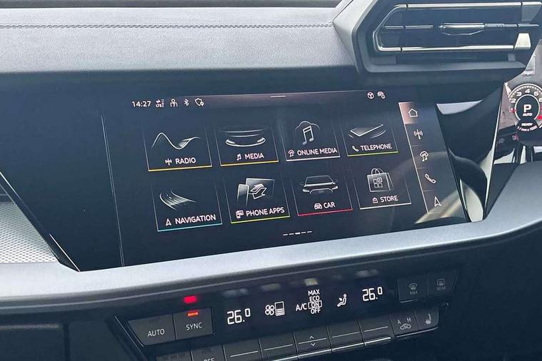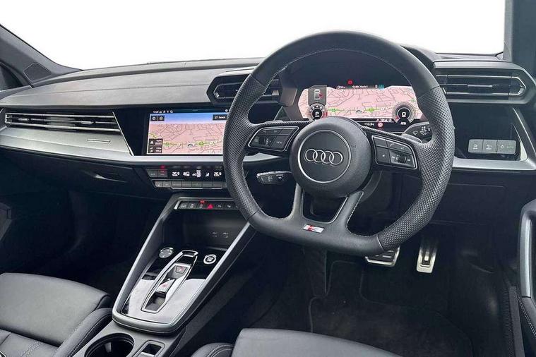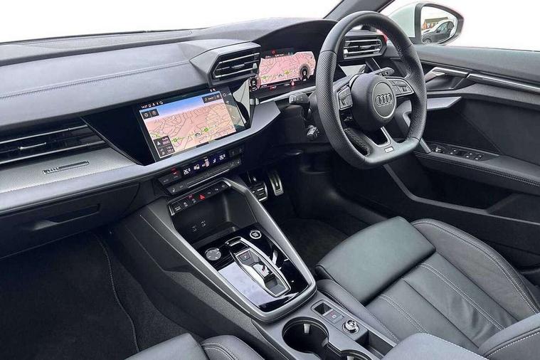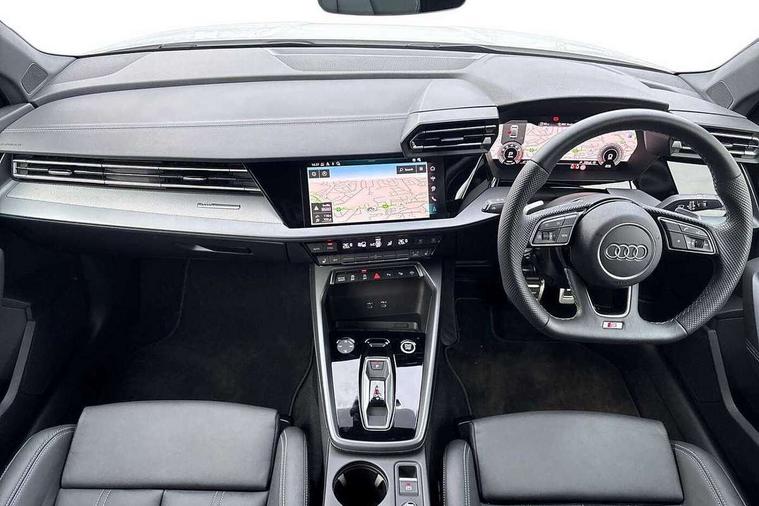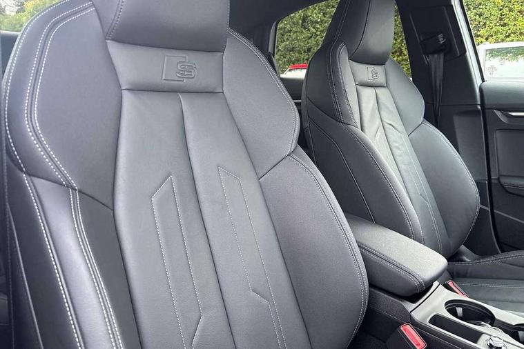 Adjustable speed limiter, Audi drive select, Audi smartphone interface with app store includes wireless Apple carplay, Android auto and Amazon alexa integration, Audi virtual cockpit plus - 12.3" full HD resolution dynamic digital instrument cluster, Automatic start/stop system with recuperation, Bluetooth interface, Camera based traffic sign recognition, Collision avoidance assistant, Cruise control, Distraction and Fatigue warning, e-Call (emergency call), Electromechanical power speed sensitive steering, Emergency assist, Lane departure warning system, MMI Navigation Plus with high resolution 10.1" colour touch screen display, Park Assist with parking system Plus, Service indicator, Trip computer, Voice control system with natural language interaction, Sports suspension, Audi Phonebox light with wireless charging, Audi sound system - 10 loudspeakers including centre loudspeaker and subwoofer, DAB Digital radio, USB ports with charging function in the rear, Acoustic glass windscreen, All weather light, Aluminium window trim, Auto dimming frameless rear view mirror, Automatic dynamic range control, Body colour exterior mirrors, Chrome exhaust tailpipes, Dipped beam, main beam, position light and turning light, Electrically adjustable/heated/folding/auto dimming door mirrors with integrated LED indications + kerb view function for passenger side, Exterior model badging, Front and rear side air inlets in grained matt black with dark liquid chrome frame, Front electric windows, Front radiator grill in high gloss dark chrome, Heat insulating glass windscreen, Illuminated door sills with aluminium inserts at the front with S logo, Intersection light, LED 3rd brake light, LED brake lights, LED daytime running x3, LED headlights with LED rear lights and dynamic rear indicators, LED rear number plate lights, LED reverse light, LED tail lights, Light and rain sensors, Manoeuvring light, Motorway light, Privacy glass - dark tinted rear window, rear door and side windows, Rear boot, Rear diffuser and grill in grained matt black with inlay in dark liquid chrome, Rear electric windows, Rear side wing doors, S line bumpers, Side S line emblems on front wings, Side sill trim in dark liquid chrome, Static cornering light, 12V socket and storage compartment in front centre console, 3 seat bench in 2nd row, 3 spoke flat bottomed leather multifunction sport steering wheel with gear shift paddles, 3-zone deluxe automatic air conditioning, 4 way electrically adjustable lumbar support for driver and front passenger, 40/20/40 split folding rear seat bench, Black cloth headlining, Black front and rear floor mats, Front and rear centre armrest in artificial leather with contrasting stitching on armrests and instrument panel, Front and rear headrests, Heated front seats, Height and reach adjustable steering wheel, Manual boot compartment lid, Manually adjustable front seats, Rear centre armrest with cupholder, S badging on the steering wheel, Seat side bolsters, Single front passenger seat, Stainless steel pedals and front footrest in black, Twin leather upholstery with front sports seats S embossed logo, Aluminium interior elements pack - A3, Multi-coloured LED interior lighting package with Multi-coloured contour lighting of instrument panel - A3, 3x3 point rear seat belts, Driver and front passenger airbag with passenger airbag deactivation, Electronic Stabilisation Control (ESC) including ABS, ASR and EDL, First aid kit with warning triangle and 2 safety vests, Front side airbags with head airbags and interaction airbag, Hill hold assist, Pre-sense front with pedestrian and cyclist detection, Seatbelt monitoring, Tyre pressure loss indicator, Anti theft alarm, Anti-theft wheel bolts, Electronically operated child locks, Immobiliser, Remote central locking with safelock, Black dashboard, Inlay in dark aluminium spectrum,
