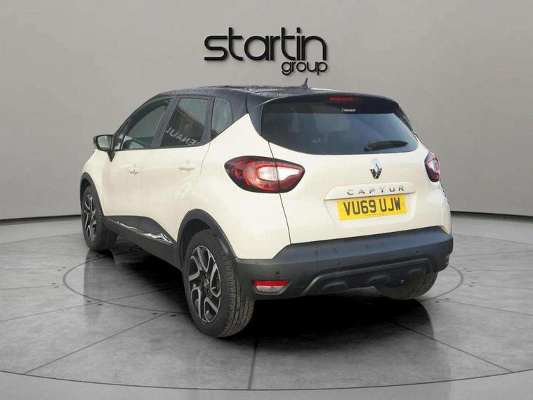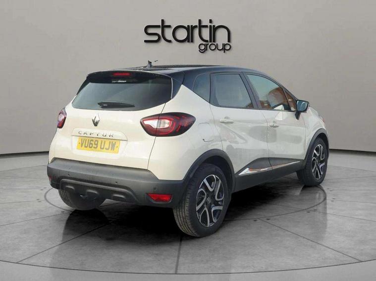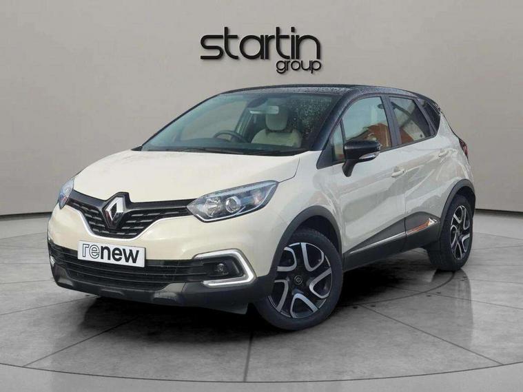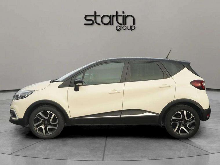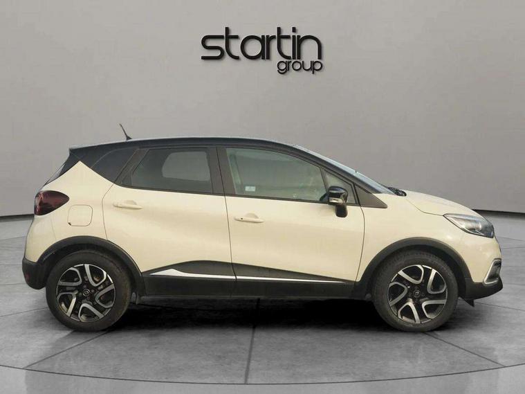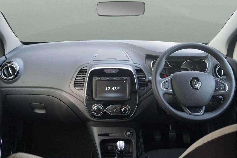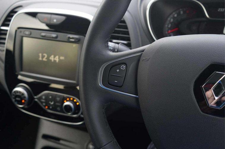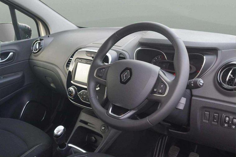 Cruise control + speed limiter, Eco mode, Rear parking sensor, Renault MediaNav with 7" touch screen and Navteq Nav 'n' Go Satellite Navigation, Smartphone cradle, Trip computer, Variable PAS, 4x20W radio with bluetooth hands free and USB, Auxiliary input socket, DAB Digital radio, Fingertip controls for audio system, Body colour door handles, Body coloured bumpers, Electric adjustable heated door mirrors, Electric front windows + one touch + anti-pinch, Electric rear windows, Extra tinted glass in rear windows and tailgate, Front skid plate, LED daytime running lights, LED front fog lights, Rain sensitive wipers + automatic lighting, Rear skid plate, Rear wiper, Variable intermittent front wash/wipe, 12V Accessory socket, 3 rear headrests, 60/40 split folding rear seat bench, Automatic climate control with one touch demist function, Centre console storage tray, Compartment in glovebox, Dark harmony dashboard and door panels, Fixed cloth upholstery, Front cupholder, Front seat backrest storage nets, Heating system with pollen filter, Height adjustable driver's seat, Height adjustable front headrests, Height/reach adjust steering wheel, ISOFIX on front passenger and rear outer seats, Leather steering wheel and gear knob, Removable storage between driver and passenger, Reversible boot floor, Storage area on top of dashboard, Storage compartments in doors, Storage space near handbrake, Variable boot floor, Exterior touch pack Chrome - Captur, Interior touch pack Chrome - Captur, 3 point seatbelts on all rear seats, ABS+EBA, Driver/Front Passenger airbags, ESC - Electronic Stability Control + traction control, Front passenger airbag deactivation, Front side airbags(head+thorax), Hill start assist, Rear door child safety locks, Seatbelt warning, Tyre pressure monitor, Automatic door locking, Deadlocking system, Hands free access with keycard and start button, RAID (Renault Anti-Intruder Device) with automatic door locking, Remote central locking, Thatcham Cat 2 engine immobiliser, 17" Explore alloy wheels with black inserts,