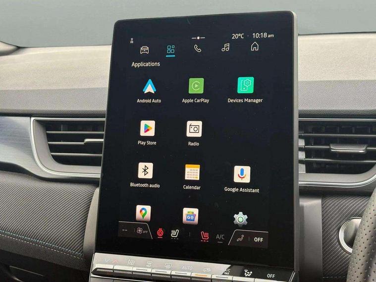 10.25" digital driver display, 10.4" OpenR link touchscreen with with built in Google Automotive Services and navigation, 2 front USB-C ports, 2 rear USB-C ports, Active driver assist including intelligent contextual adaptive cruise control + lane centering, Blind spot recognition and rear detection, Driver attention alert system, Driver drowsiness alert system, e-Call automatic emergency assist, Emergency lane keep assist including solid line, oncoming traffic and road edge detection, Engine start button, Front and rear parking distance sensors, Intelligent speed assistance include traffic sign recognition with speed alert, Lane departure warning system, Multisense with 4 driving modes and upto 48 ambient lighting colours, Navigation system with built in google maps, Outside temperature display, Performance mode selector - multisense 4 driving modes (sport, comfort, perso and eco), Power assisted steering, QR code fireman access for technical information, Rear cross traffic alert with rear active emergency braking system, Rear view camera, Safe stopping distance warning, Service interval indicator, Side parking sensors, Trip computer, Voice control for navigation system with built in google assistant, Wifi smartphone integration compatible with Apple CarPlay and Android Auto, Wireless phone charger, Speed limiter 111mph, 6 speakers inc 2 boomer + 2 tweeter + 2 bicone, DAB radio with Bluetooth, 2 reversing lights, Auto dimming rear view mirror with light and rain sensor - frameless, Automatic front wipers with rain sensors, Automatic headlights, Automatic high/low beam, Body colour door handles, Body coloured bumpers, Body coloured door mirrors, Chrome around front air deflectors, on front wing deco element and window lining, Dark tinted glass in rear windows and tailgate, Diamond black contrasting roof, Drivers one touch window with anti-pinch feature, Electrically folding door mirrors, Flush and longitudinal roof bars, Front and rear electric windows, Full LED front and signature rear lights, Gloss black window frame, Heated door mirrors, Heated rear windscreen, LED daytime running lights, LED high level brake lights, LED rear fog lights, LED turn indicators on door mirrors, Matt grey F1 blade, Radiator grille with 3D graphic black upper part with body tone graphics, Rear side wing doors, Rear wiper, Shark fin antenna, 12v power outlet - front, 2 front roof LED lights and central rear roof light with 3 reading LED lights, 3 bench rear seats in 2nd row, Aluminium sports pedals, Automatic air conditioning with one touch demist function and air quality regulator, Driver and front passenger seat with electric height adjustment, Esprit alpine interior styling, Flying console with central storage, sliding armrest and 2 rear air vents, Front head restraints, Glovebox, Heated front seats, Heated steering wheel, Heating system with pollen filter, Height/reach adjust steering wheel, ISOFIX child seat fixing points on rear outermost seats, Jacquard Madama fabric upholstery, Modular boot floor, Multifunctional steering wheel, Rear head restraints, Rear seats - 1/3:2/3 foldable sliding bench, Single front passenger seat, Sunvisor with mirror and light, Synthetic leather steering wheel, 3 rear seatbelts, ABS+EBA, Active emergency braking system - Urban, pedestrian/cyclist with junction function, Blue trim seatbelts on front seats and outermost rear, Collision avoidance braking, Distance warning alert, Driver and front passenger airbags, Driver and front passenger and 3 rear passengers seatbelt reminder, Driver height adjustable seat belt, Electric parking brake with auto hold function, Electronic stability control, Front dash warning indicator in case of heavy braking, Front driver and passenger side airbag deactivation, Hill start assist, My safety shield - ability to personalise ADAS features at press of a button, Occupant safe exit, Outer rear safety seat belts, Passenger airbag deactivation system, Rear door and window child locking function for rear door, Side airbags, Tyre pressure warning light, Vehicle sound for pedestrians, Alarm, Hands free keycard with Keyless access and start, Immobiliser, Locking fuel cap, Locking wheel nuts, RAID (Renault Anti-Intruder Device) automatic door locking, Remote central locking, Superlocking, Black soft touch dashboard, Brushed blue decorative upper strip, Lower textile strip on dashboard with red, white and blue flag, 19" esprit Alpine Elixir alloy wheels,