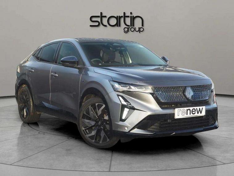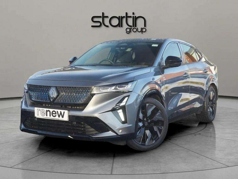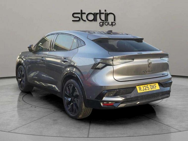 12.3" driver information display cluster, 360 around view 3D camera, 4Control - 4 wheel steering technology, 9.3" head-up display, Adaptive cruise control, Apple car play and Android auto, Blind spot warning, Bluetooth, Driver attention alert system, Electric power boot opening, Emergency lane keep assist including solid line, oncoming traffic and road edge detection, Exterior temperature display, Hands-free parking, Internet access, Lane centering assist, Lane change warning, Lane departure warning, Lane keeping assistance, Miles per hour configuration, MULTI-SENSE driving modes (eco, comfort, sport and personal), My safety switch: shortcut to personalise configuration of driving aids, Navigation system with build in google maps, PAS, Qrescue, Renault automatic emergency assist, Safe stopping distance warning, Service interval indicator, Speed alert, Speed limiter, Traffic sign recognition, Trip computer, Voice control for navigation system with built in google assistant, Wireless phone charger, 12" open R link screen with built-in Google, DAB radio, Harman Kardon sound system with 12 speakers, Wi-Fi hot spot, 3rd brake light, Automatic headlights + automatic windscreen wipers, Automatic high / low beam, Black door mirrors, Body colour spoiler, Boot alloy kicking plate (trim on boot lip), Electric, heated, folding wing mirrors with memory, Esprit alpine exterior styling, Frameless auto-dimming rear view mirror with brightness adapt and rain sensor, Front and rear electric windows with one touch, Heated rear window, Heated windscreen, LED daytime running lights, LED rear lights with mirage effect, Matrix LED vision headlights, Privacy glass, Puddle lamps with logo illumination from door mirrors, Rear side wing doors, Rear wiper, Shark fin antenna, Solarbay panoramic sunroof, 12V socket in front, 2 front and 2 rear touch LED interior lighting, 3 rear headrests, 3 seat bench in 2nd row, 40:20:40 split folding rear bench seat, 6 way electric driver seats with 2 way lumbar and massage function, 6 way electric passenger seat with 2 way lumbar, Air purifier, Alcantara synthetic leather/fabric upholstery, Aluminium pedals, Automatic dual zone climate control, Black carpets, Blue trim within door pockets, Esprit alpine interior styling, Front headrests, Heated driver and front passenger seats, Heated steering wheel, Ingenious rear armrest with swivelling arms/foldout stands for devices and USB-C charging ports, Interior ambient lighting, ISOFIX child seat fixing points on rear outermost seats, Manual height and depth adjustable steering wheel, Multifunction steering wheel, Paddle shift levers for regenerative braking, Single front passenger seat, Sliding centre console armrest with storage, Synthetic leather sport steering wheel with triple topstitching and alcantara finish, 3 point seatbelts on all rear seats, ABS, Active emergency braking system - Urban, pedestrian/cyclist with junction function, Adjustable driver and passenger safety seat belts, Approaching vehicle sound for pedestrians, Blue trim seatbelts on front seats and outermost rear, Driver and front passenger airbags, Driver knee airbag, Electronic brake distribution, Electronic parking brake with auto hold function, Electronic Stability Programme (ESP), Emergency brake assist, Front thorax airbags, Hill start assist and trailer stability assist, Manual rear child locks, Multi-Collision braking, Occupant safe exit, Passenger airbag deactivation system, Passenger knee airbag, Rear active emergency braking system, Rear traffic alert and rear pedestrian alert with rear automatic braking, Row 1 and 2 curtain airbags, Seatbelt load limiter, Seatbelt pretensioners, Seatbelt reminder, Side airbags, Tyre pressure warning light, Alarm, Hands free key card with Keyless access and start, Immobiliser, Locking wheel nuts, Remote central locking, Super locking system, 20" Castellet black diamond-cut esprit Alpine alloy wheels with smoked varnish, Tyre inflation kit,