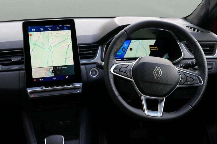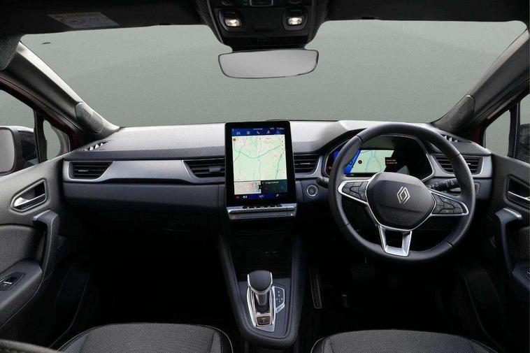 10.25" digital driver display, 10.4" OpenR link touchscreen with with built in Google Automotive Services and navigation, Adaptive cruise control with speed limiter, Driver attention alert system, Eco mode driving function, Front, rear and side parking sensors, Front/rear detection with emergency lane keep assist incl. solid line, oncoming traffic and road edge detection, Gear change indicator, Multi Sense - 3 driving modes and up to 48 ambient lighting colours, My safety switch - ability to personalise ADAS features at press of a button, PAS, Rear view camera, Renault automatic emergency assist, Traffic sign recognition with overspeed prevention, Trip computer, Wifi smartphone integration compatible with Apple CarPlay and Android Auto, Wireless phone charger, 2 front and 2 rear USB-C ports, Arkamys speakers - x6 inc. 2 boomer, 2 tweeter and 2 bicone, DAB radio with Bluetooth, Automatic headlights, Automatic high / low beam, Automatic windscreen wipers with rain sensor, Dark tinted rear windows and tailgate, Electric adjustable/heated/auto folding door mirrors, Frameless auto dimming rear view mirror, Front and rear electric windows with driver window one touch facility and anti pitch function, Full LED front and rear lights, Heated rear window, LED daytime running lights, LED rear fog lights, LED third brake light, Radiator grille with 3D graphics in black upper part with grey graphics and body tone lower part, Rear side wing doors, Rear wiper, Satin chrome lower door protection, Satin chrome window surround, Shark fin antenna, 2 front roof LED lights and central rear rooflight with 3 reading LED lights, 3 seat bench in 2nd row, Automatic air conditioning with one touch quick demist function and air quality regulator, Driver and front passenger seat height adjustment, Fabric upholstery, Flying console with central storage, sliding armrest and 2 rear air vents, Front and rear head restraints, Height and depth adjustable steering wheel, ISOFIX child seat fixing points on rear outermost seats, Modular boot floor, Rear seats - 1/3:2/3 foldable sliding bench, Single front passenger seat, Sunvisor with mirror and light, Synthetic leather steering wheel, 3x3 point rear seatbelts, Abs with emergency brake assist, Active emergency braking system - Urban and pedestrian/cyclist, Distance warning alert, Driver and front passenger and 3 rear passengers seatbelt reminder, Driver and front passenger, side, head and curtain airbags, Driver height adjustable seat belt, Electronic parking brake with auto hold function, Front passenger airbag deactivation, Hill start assist, Rear window and door child locking function, Tyre pressure warning light, Central door locking, Hands free keycard with Keyless access and start, Granite grey decorative upper strip, 18" Gravity alloys wheels,