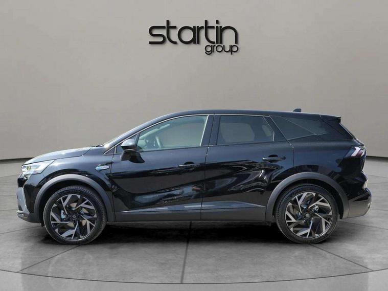 10.25" digital driver display, 10.4" OpenR link touchscreen with with built in Google Automotive Services, 9-speaker premium Harman Kardon audio system and navigation, 360 around view 3D camera, Adaptive cruise control with speed limiter, Blind spot warning and rear detection, Driver attention alert system, Eco mode driving function, Engine start button, Exterior temperature display, Front, rear and side parking sensors, Front/rear detection with emergency lane keep assist incl. solid line, oncoming traffic and road edge detection, Gear change indicator, Hands free parking, Internet access/wi-fi hotspot, Lane centering assist, Lane change warning, Lane departure warning, My safety switch - ability to personalise ADAS features at press of a button, PAS, Performance mode selector - multisense 4 driving modes (sport, comfort, perso and eco), Power hands-free tailgate opening, Qrescue, Rear cross traffic/pedestrian alert with rear braking assitance, Renault automatic emergency assist, Service interval indicator, Traffic sign recognition with overspeed prevention, Trip computer, Voice control for navigation system with built in google assistant, Wifi smartphone integration compatible with Apple CarPlay and Android Auto, Wireless phone charger, 2 front and 2 rear USB-C ports, DAB radio with Bluetooth, Automatic headlights, Automatic high / low beam, Automatic windscreen wipers with rain sensor, Dark tinted rear windows and tailgate, Electric adjustable/heated/auto folding door mirrors, Esprit alpine exterior styling, Frameless auto dimming rear view mirror, Front and rear electric windows with driver window one touch facility and anti pitch function, Front matte grey and rear skid plates, Full LED front and rear lights, Gloss black window surround, Heated rear window, LED daytime running lights, LED rear fog lights, LED third brake light, Matte grey F1 blade, Radiator grille with 3D graphics in black upper part with grey graphics and body tone lower part, Rear side wing doors, Rear wiper, Shark fin antenna, Solarbay opacifying panoramic sunroof, Twin reversing lights, 12v power outlet - front, 2 front roof LED lights and central rear rooflight with 3 reading LED lights, 3 seat bench in 2nd row, 48 ambient lighting colours, Aluminium sports pedals, Automatic air conditioning with one touch quick demist function and air quality regulator, Driver and front passenger seat with electric height adjustment, Esprit alpine interior styling, Flying console with central storage, sliding armrest and 2 rear air vents, Front and rear head restraints, Front seats manual lumbar adjustment, Heated front seats, Heated synthetic leather steering wheel, Height and depth adjustable steering wheel, ISOFIX child seat fixing points on rear outermost seats, Luggage compartment light, Modular boot floor, Multifunctional steering wheel, Rear seats - 1/3:2/3 foldable sliding bench, Recycled jacquard madama fabric upholstery, Single front passenger seat, Sunvisor with mirror and light, 3x3 point rear seatbelts, Abs with emergency brake assist, Active emergency braking system - Urban and pedestrian/cyclist, Adjustable driver and passenger safety seat belts, Approaching vehicle sound for pedestrians, Collision avoidance braking, Distance warning alert, Driver and front passenger and 3 rear passengers seatbelt reminder, Driver and front passenger, side, head and curtain airbags, Electronic parking brake with auto hold function, Electronic Stability Programme, Front passenger airbag deactivation, Front seatbelt pretensioners, Hill start assist, Occupant safe exit, Rear window and door child locking function, Tyre pressure warning light, Alarm/immobiliser, Hands free keycard with Keyless access and start, Locking wheel nuts, Remote central locking, Super locking system, Brushed blue decorative upper strip, Lower textile strip on dashboard with red, white and blue flag, 19" Esprit alpine elixir alloys wheels,