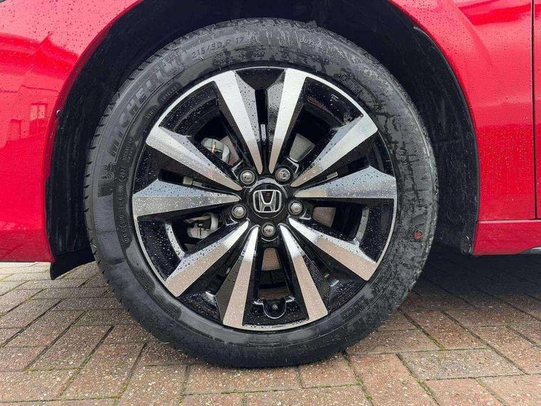 7" Multi information display screen, Adaptive cruise control, Adaptive motion for electric power steering, Adjustable speed limiter, Agile handling assist, BLIS (Blind Spot Information System) with Cross Traffic Monitor, Bluetooth hands free telephone connection, Driving modes, Economy mode, Electric power steering wheel with variable gear ratio steering, Emergency call service, Emergency stop signalling system, Forward collision warning, Front and rear parking sensors, Honda CONNECT with Navigation 9" touchscreen, AM/FM/DAB, Apple Carplay and Android Auto, live traffic info, Honda sensing, Idle stop, Intelligent speed limiter, Lane departure warning system, Lane keep assist, Low speed following, Power meter, Rear parking camera, Road departure mitigation, Tailgate, Traffic jam assist, Traffic sign recognition, Wireless apple carplay, Vehicle stability assist, 'Shark fin' mobile antenna, 2x USB Front socket (1 data & 1 charge), 8 Speakers, Digital Audio Broadcast (DAB) Tuner, Front tweeters, Steering wheel mounted audio controls, Aspherical driver door mirrors, Auto headlight adjuster, Auto headlights, Automatic coming/leaving home lighting function, Automatic rain sensing wipers, Body colour door handles, Chrome window garnish, Electric adjustable heated door mirrors, Electric front and rear windows, Electrically folding door mirrors, Headlight extension black, High beam assist, High level LED brake light, LED daytime running lights, LED front turn type, LED Headlights, LED rear lights, Material finish grille, Pop up hood, Privacy glass, Rear side wing doors, Rear wiper, Single hidden exhaust pipe, Variable front intermittent wipers, 3 seat bench in 2nd row, 60/40 split folding rear seat, Cargo accessory power socket, Cargo net hooks, Driver and front passenger seat armrests, Driver's electric lumbar adjustment, Driver's seat height adjustment, Dual climate control air conditioning system, Fabric upholstery, Front accessory power socket, Front map lights, Front/rear courtesy lights, Glovebox light, Heated front seats, Hybrid emblem, Isofix points/i size, Leather steering wheel, Meter Illumination white, Passenger seat back pocket, Platinum chrome interior door handles, Rear head restraints, Rear reading lights, Rear seat centre armrest, Single front passenger seat, Sunvisors with illuminated vanity mirrors, Tilt/telescopic adjustable steering wheel, Tonneau cover, Trunk light, USB Rear number 2 x charge, White ambient roof light, 3x3 point rear seatbelts, ABS+EBD+Brake assist, Airbags - driver and front passenger, Airbags - Knee (AS), Airbags - Knee (DR), Anti-whiplash front headrests, Brake hold function, Collision mitigation braking system, Collision mitigation throttle control, Deflation detection system, Driver SRS airbag (single stage inflation), Electronic parking brake with auto hold, Front and rear curtain airbags, Front and rear seat belts with emergency locking retractor (ELR), Front centre airbag, Front side airbags, Hill start assist, Low speed brake system, Manual child lock in rear doors, Passenger airbag deactivate switch, Rear airbags, Regenerative braking/deceleration paddle control, Immobiliser, Mirrors and windows key fob, Remote central locking with 2 jack knife keys, Security alarm, Selectable door unlock, Smart entry + Smart start, Superlocking, Tilt sensors, Ultrasonic security sensor, 17" 2 tone diamond cut alloy wheels, Tyre repair kit,