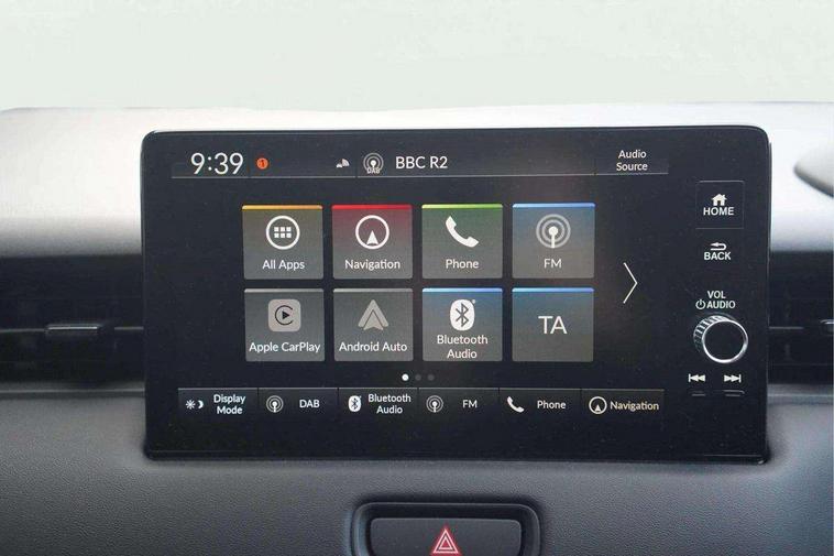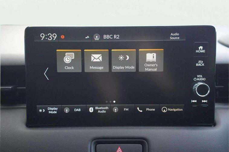7" TFT instrument cluster, Adaptive cruise control, Adjustable speed limiter, Agile handling assist, BLIS (Blind Spot Information System) with Cross Traffic Monitor, Bluetooth hands free telephone connection, Drive modes select (Eco, normal and sport), Driver attention monitoring system, eCall emergency system, Econ mode, Emergency stop signalling system, Forward collision warning, Front parking sensors, Handsfree power tailgate with walkaway close, Honda CONNECT with Navigation 9" touchscreen, AM/FM/DAB, Apple Carplay and Android Auto, live traffic info, Idle stop, Intelligent speed limiter, Lane departure warning, Lane keep assist, Low speed following, Multi info display, Power meter, Rear parking sensors, Rear view camera, Road departure mitigation, Tachometer, Traffic jam assist, Traffic sign recognition, Variable gear ratio electric power steering, WiFi connectivity, Wireless apple carplay, Vehicle stability assist, 2 USB sockets in rear, 2x USB Front socket (1 data & 1 charge), 6 speakers includes front tweeter, Steering wheel mounted remote controls, Adaptive driving beam, Auto dimming rear view mirror, Auto headlight adjuster, Automatic headlights, Automatic headlights with on/off timer, Coming/leaving home function, Automatic rain sensing wipers, Body colour bumpers, Body colour tailgate spoiler, Body coloured door handles, eHEV emblem, Electric front and rear windows, Electrically adjustable, heated and folding door mirrors, Exclusive styling in lower bumper black, fog garnish paint black, black paint lower door garnish with silver accent, bumper skid garnish sharp silver, Exclusive styling in piano black front console garnish, silver stripe garnish on door and instrument panel, Exterior mirror tilt for reverse, Headlight washers, Heated front windscreen, Heated rear window, High gloss window garnish, LED 3rd brake light, LED cornering lights, LED daytime running lights, LED front fog lights, LED front sequential turn, LED headlamps, Light colour roof lining, Privacy glass, Rear side wing doors, Rear wiper, Red and clean lens LED rear lights, Shark fin antenna, Variable front intermittent wipers, Windscreen shadeband, 3 rear headrests, 3 seat bench in 2nd row, 60/40 split folding rear seat, Accessory sockets in front, Ambient lighting on roof, Cargo net hooks, Courtesy lights, Driver seat back pocket, Driver's seat manual height adjust, Driver/passenger sunvisors with illuminated vanity mirrors, Dual automatic air conditioning, Front head restraints, Front map lights, Front seat armrests, Genuine leather shift knob, Genuine leather steering wheel, Heated front seats, Heated steering wheel, Isofix points, Luggage floor box, Magic seats, Meter illumination light, Normal pedals, Paddle shift controls, Passenger seat back pocket, Rear centre armrest, Rear reading lights, Rear ventilation, Silver interior door handles, Silver interior panels, Single front passenger seat, Synthetic leather and fabric upholstery, Tilt/telescopic adjustable steering wheel, Tonneau cover, Trunk light, 3x3 point rear seatbelts, ABS+EBD+Brake assist, Automatic brake hold, Collision mitigation braking system, Collision mitigation throttle control, Deflation detection system, Driver and front passenger airbags, Driver SRS airbag (single stage inflation), Electric child locks, Electronic parking brake, Front and rear curtain airbags, Front and rear safety belts with Emergency Locking Retractor, Front side airbags, Hill descent control, Hill start assist, Low speed brake system, Paddle deceleration control, Passenger SRS airbag cut-off device, Regenerative braking system, Whiplash lessening front headrests, Immobiliser, Mirrors and windows key fob operation, Remote central locking with 2 remote folding keys, Security alarm, Smart entry and start system, Superlocking, Tyre repair kit,