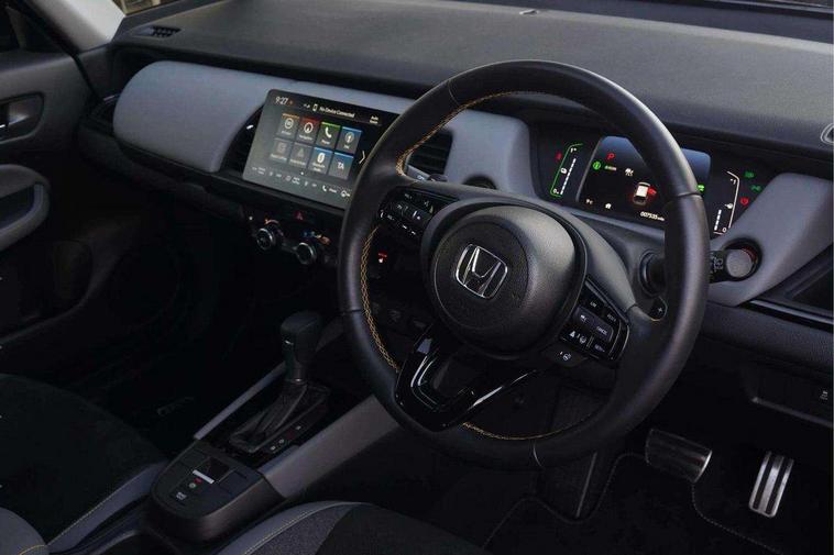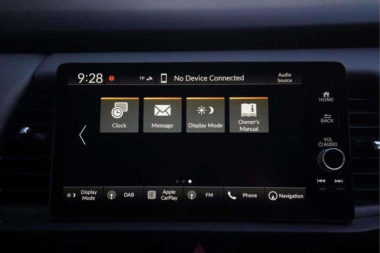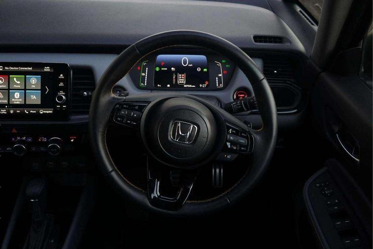 Adaptive cruise control, Adjustable speed limiter, Agile handling assist, BLIS (Blind Spot Information System) with Cross Traffic Monitor, Bluetooth hands free telephone connection, Drive mode (Econ, Sport, Normal), Driver attention monitoring system, eCall emergency call system - ecall functionality is subject to 2G/3G network availability, Electric power steering wheel with variable gear ratio steering, Emergency stop signalling system, Forward collision warning, Front and rear parking sensors, Honda CONNECT with Navigation 9" touchscreen, AM/FM/DAB, Apple Carplay and Android Auto, live traffic info, Idle stop, Intelligent speed limiter, Lane departure warning system, Lane keep assist system, Low speed following, Multi-information display, Rear view camera, Road departure mitigation, Tailgate, Traffic jam assist, Traffic sign recognition, Wireless apple carplay, Vehicle stability assist, 'Shark fin' mobile antenna, 180w Power audio system with 4 speakers, 2 USB-C connectors rear, 2x USB Front socket (1 data & 1 charge), Remote audio controls on steering wheel, Aspheric door mirrors, Auto wipers, Automatic headlights with on/off timer, Coming/leaving home function, Black headlight extension, Body colour door handles, eHEV emblem, Electric adjustable door mirrors, Electrically folding door mirrors, Exclusive styling includes front and rear bumper in gloss black finish, Front and rear electric windows, Heated door mirrors, High beam assist, LED 3rd brake light, LED daytime running lights, LED Headlights, LED rear lights, Manual headlight levelling, Privacy glass, Rear side wing doors, Rear wiper, Single exhaust tailpipe with finisher, Sport grille, 3 seat bench in 2nd row, 60/40 split rear bench seat, Cargo net hooks, Climate control air conditioning, Driver and front passenger seat armrests, Driver and passenger front seat pockets, Driver's seat height adjustment, Fabric/suede leather upholstery, Front accessory power socket, Front head restraints, Front map lights, Front/rear courtesy lights, Heated front seats, Heated steering wheel, Isofix points, Leather 3-spoke steering wheel, Leather gearshift knob, Magic seat flexibility system, Plating interior door handles, Rear head restraints, Single front passenger seat, Sport pedals, Sunvisors with vanity mirrors, Tilt/telescopic adjustable steering wheel, Tonneau cover, Trunk light, Vanity mirror illumination, 3x3 point rear seatbelts, Anti-lock braking system (ABS), Brake assist function, Brake hold function, Child locks on rear doors, Collision mitigation braking system, Deflation warning system, Driver knee airbag, Driver SRS airbag (single stage inflation), Driver/Front Passenger airbags, Electronic parking brake with auto hold, Front and rear seat belt with emergency locking retractor, Front and rear side curtain airbag, Front centre airbag, Front side airbags, Hill start assist, Paddle deceleration control, Passenger SRS airbag cut-off device, Rear side airbags, Regenerative braking system, Whiplash lessening front headrests, Honda super locks, Immobiliser, Mirrors and windows key fob operation, Remote central locking with 2 remote folding keys, Security alarm, Smart entry + Smart start, Soft pad leather interior panels, Tyre repair kit,