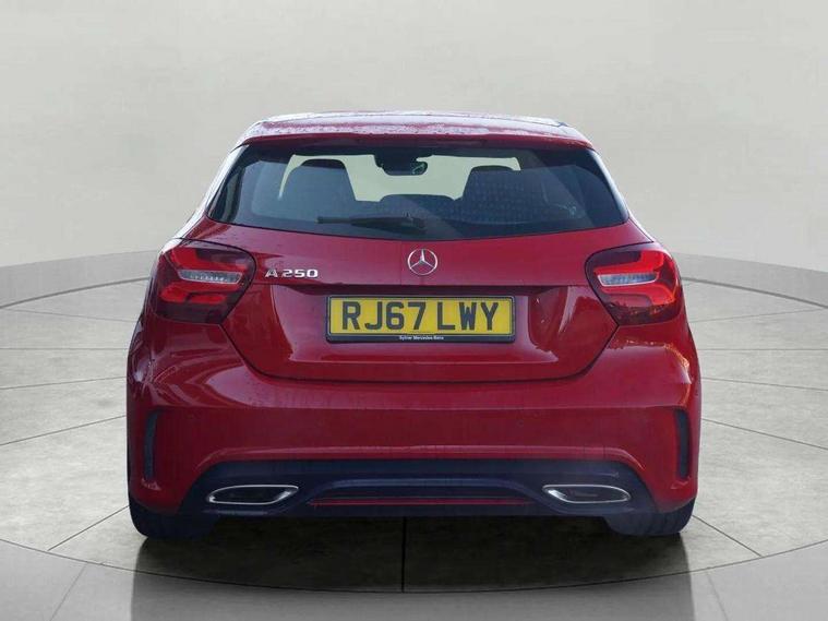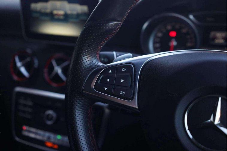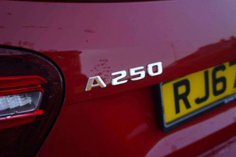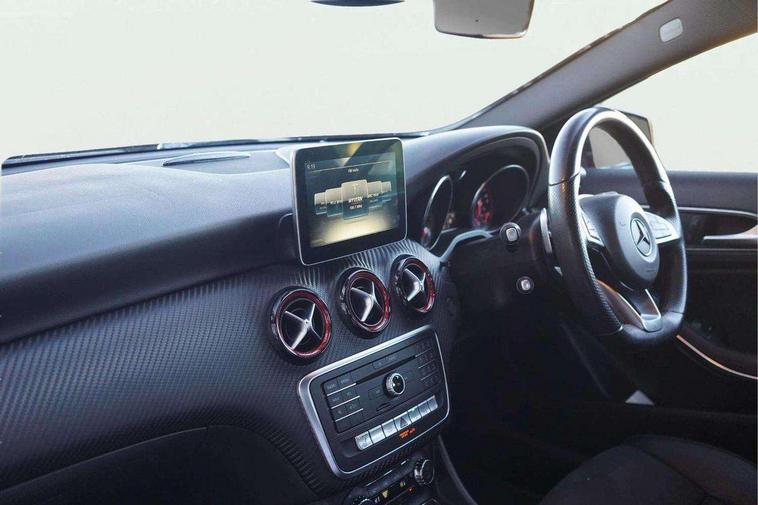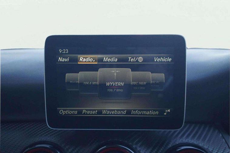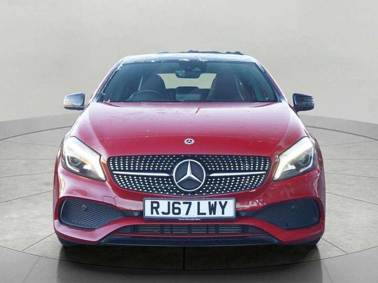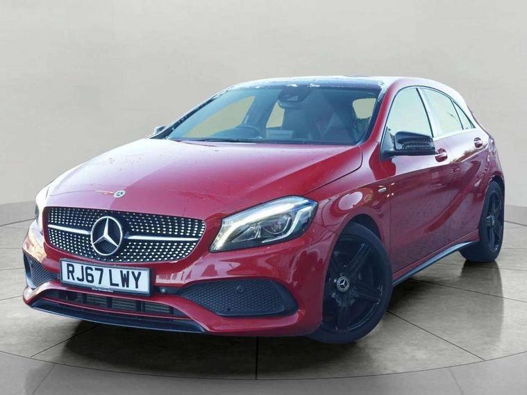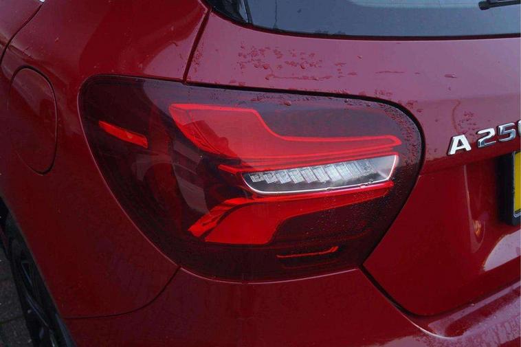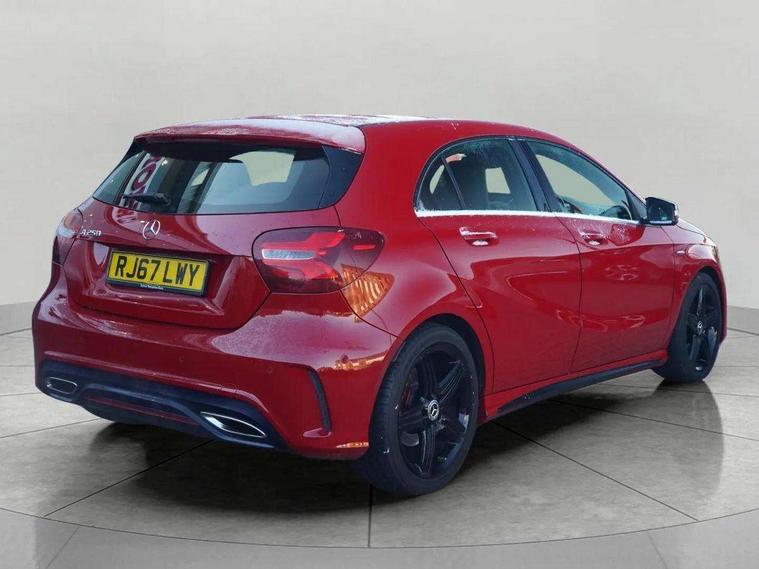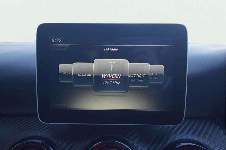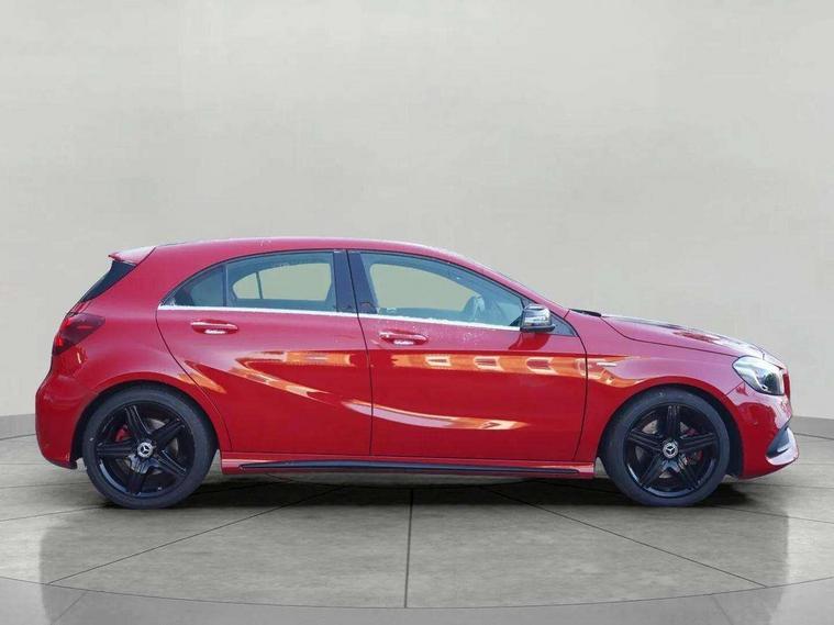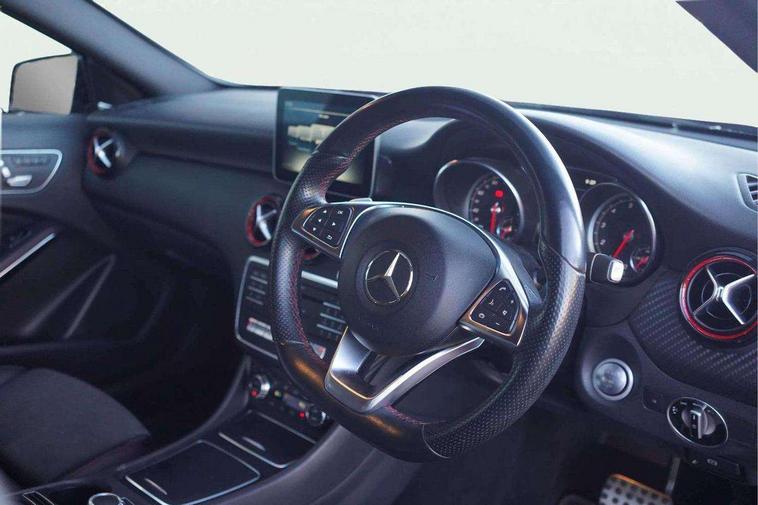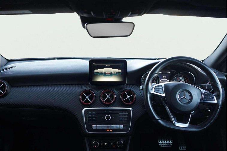 8" colour display screen, AMG speed sensitive sports steering, Attention assist, Bluetooth interface for hands free telephone, Bulb failure indicator, Collision prevention assist plus, DYNAMIC SELECT with a choice of driving modes (ECO, Comfort, Sport, Sport+ and Individual), External temperature gauge, Low fluid warning light, Park assist pilot with front and rear park assist, Reversing camera, Service indicator (ASSYST PLUS), Trip computer, Sports suspension, Harman/Kardon logic 7 surround sound system + 12 speakers, USB port, Adaptive brake lights, AMG body styling, Auto dimming driver's door mirror, Auto dimming rear view mirror, Body colour bumpers/red strips, Body colour door handles, Body colour side skirt, Body coloured door mirrors, Chrome beltline trim, Diamond radiator grille with chrome pins and gloss black louvre + chrome insert, Electric adjustable heated door mirrors, Electric folding door mirrors, Electric front windows, Electric rear windows, Headlamp assist, Heated rear window with timer, Heated windscreen wash system, High beam assist, LED daytime running lights, LED Headlights, LED rear lights, LED tail lights, Panoramic sliding sunroof, Rain sensor windscreen wipers, Rear wiper, Twin Trapezoidal tailpipes, 1/3 to 2/3 split folding rear seats, 12 colour Ambient lighting, 12V socket, 3 Spoke sports multifunction flat bottomed leather steering wheel, Auto Mercedes-Benz child seat recognition sensor, Black headlining, Brushed stainless steel sports pedals, Dual zone automatic climate control, Electric front seats with memory function, Footwell lights, Front and rear reading lights, Front centre armrest with storage compartment, Front head restraints, Front sport seats, Gearshift paddles on steering wheel, Heated front seats, Height adjustable front seats, Height/reach adjustable steering column, Illuminated door sills, Illuminated glovebox, Illuminated storage compartment, Isofix rear child seat preparation, Load securing rings in luggage compartment, Luggage compartment cover, Rear head restraints, Storage compartment under load area floor, Sunvisors with illuminated vanity mirrors, Twin front cupholders, Seat comfort pack - A Class, 3 rear 3 point seatbelts, ABS with Brake Assist, Active bonnet, Adaptive brake system, Brake calipers with Mercedes-Benz lettering + perforated brake discs, Child proof door locks, Crash responsive emergency lighting, Drivers knee airbag, Dual stage driver/passenger airbags, Electronic parking brake, ESP with ASR, Front and rear seatbelt reminder, Front head airbags, Front passenger seat occupancy sensor, Front side airbags, Hill start assist, Red painted brake calipers, Tyre pressure monitoring system, Warning triangle and first aid kit, Window airbags, Alarm system/interior protection/immobiliser, Keyless Go access/ignition system, Remote central locking, Black air vent surrounds with red insert, Carbon effect trim, Tirefit sealant with electric air pump,