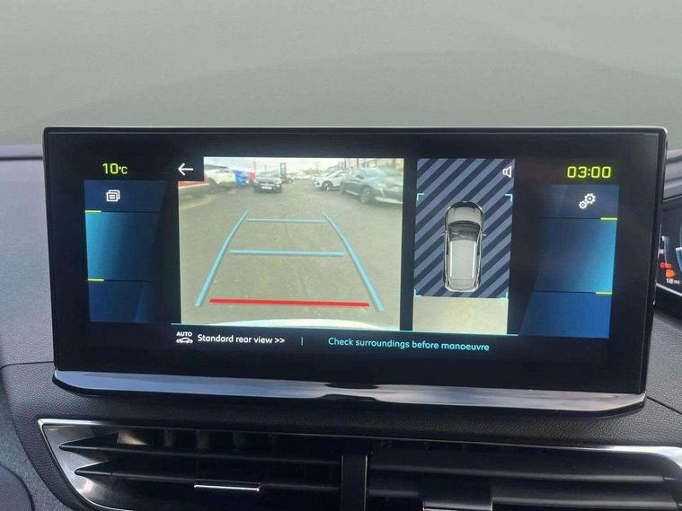 3D connected navigation with 10" HD touchscreen + voice recognition system, Apple car play and Android auto, Bluetooth telephone facility, Drive mode selector (Electric, Hybrid, Sport), Driving Time Warning (DAA1), Emergency services call system, Extended traffic sign recognition, Exterior temperature indicator with ice warning, Front and rear parking sensors, Lane departure warning system, Mirror screen with mirror link, apple carplay and android auto, Multi function trip computer, Peugeot i-cockpit with compact multi-function sports steering wheel, PEUGEOT i-Cockpit with configurable 12.3" Head-up digital instrument panel, PEUGEOT SOS and assistance, Speed limit recognition and recommendation, Deferred charging option, configurable in car or via My PEUGEOT App, Dynamic stability control and electronic anti-skid system, Mode 3 type 2 cable for wallbox charging, 6 speakers radio with mp3 compatible, DAB Digital radio, USB socket, Aluminium front door sills, Aluminium longitudinal roof bars, Automatic hazard light activation upon heavy brake application, Automatic triggered rear windscreen wiper in reverse gear, Black diamond roof, Black rubber side window trim, Black with chrome detailed front wing trim, Body colour door handles, Body colour rear roof spoiler with stainless steel edging trim, Body protectors (bottom of front and rear bumpers + wheel arches + protection at bottom of doors) in black, Chrome frameless 'Classic' grille, Chrome rear bumper facia, Dark tinted rear side windows + tailgate window, Diamond Black door mirror shells, Door mirror mounted LED courtesy floor lighting, Eco LED headlights, Electric folding door mirrors with exterior courtesy LED lighting, Electric operated/heated door mirrors, Front and rear door and sill protectors with polished stainless steel insert, Front bumper lower trim in Silver, Front windscreen wiper with magic wash cleaning system, Gloss black B and C pillar and aerodynamic deflector trim, Gloss black front bumper air scoops, Gloss black rear cluster connecting strip, Gloss black windscreen trim, Headlights left on audible warning, Heated rear windscreen with integrated antenna, HYBRID emblem on front wings and tailgate, LED daytime running lights, LED front indicator, LED rear number plate lighting, LED side indicator lights integrated into door mirrors, LED third brake light, One touch electric front/rear windows with pinch protection, Rear LED Peugeot signature 'Claw Effect' lights with clear lens and scrolling LED direction indicators, Rear side wing doors, Stainless steel door sill scuff plates, Stainless steel roof arches, 1/3 to 2/3 split folding rear seats, 12V Sockets in dashboard, rear cabin and load area, 2 cupholders in front centre console, 2 cupholders in rear armrest, 2 x Rear reading spotlights, 2x Rear coat hooks, 3x Isofix child seat fittings in the front passenger and outer rear seats, 4 Grab handles retractable and damped, Aluminium pedals, Blue ambient lighting for connecting zone, Blue ambient lighting to front door panels, Blue ambient lighting to headup instrument panel, Brumeo fabric trimmed door armrests, Cabin pre-conditioning, Centre front armrest with butterfly wing opening and illuminated storage compartment, Driver seat lumbar adjustment, Driver seat manual adjustment (longitudinal and back rest angle), Dual zone automatic climate control, e-Toggle compact gear selector, Electric power steering with reach and rake adjustable steering column, Fixed boot floor with access to the charging cable storage box, Flocked glovebox interior, Foldable front passenger seat with picnic table, Footwell illumination, Front interior light with 2 reading spotlights and rear interior light with timer, Front passenger seat manual adjustment (longitudinal and back rest angle), Front seat back map pockets, Gear shift indicator, Height adjustable front seats, Illuminated glovebox, Individual left and right controls in boot for seat folding, Leather steering wheel with detail stitch, LED interior lighting in storage spaces and load area, LED roof interior lighting, Rear bench seat with central armrest and ski hatch, Rear centre console ventilation system, Roof lining - Mistral black, Satin chrome dashboard trim, Satin chrome digital instrument panel and touchscreen trim, Satin chrome front door panel recess trim, Satin chrome interior door handles, Satin chrome scorpion's tail and toggle switch trim, Seatbelt not fastened audible and visual alert for front seats, Seatbelt unfastened on the move audible and visual alert for front and rear seats, Sunvisors with illuminated vanity mirrors, Safety Plus Pack - 3008, Visibility pack - 3008, 3x Rear three-point retractable seatbelts with force limiters in the outer rear seats, ABS (Anti-lock Braking System) with EBD (Electronic Brakeforce Distribution) and EBA (Emergency Braking Assistance), Acoustic vehicle alerting system, Adaptive driver and front passenger airbags with passenger airbag deactivation function, Driver and front passenger side airbags, Electric child locking functionality on rear windows and doors, Electric parking brake, Front and rear curtain airbags, Front optimised safety headrests and 3 x rear retractable headrests with height adjustable, Front three point retractable seatbelts with pre tensioners and force limiters, Front ventilated disc brakes and rear disc brakes, Hill start assist, Two tone horn, Automatic door locking when moving off, Electronic immobiliser, key operated exterior door lock from the left hand door, Perimetric and volumetric alarm with lift and tilt sensor, Peugeot Open and Go System, Remote control central locking with two plip keys, Brumeo fabric Dashboard, front and rear door panel finish, 18" Detroit storm grey diamond cut alloy wheels, Michelin e-primacy 225/55 R18 102V class A+ tyres, Puncture repair kit including compressor, sealant cartridge and towing eye,