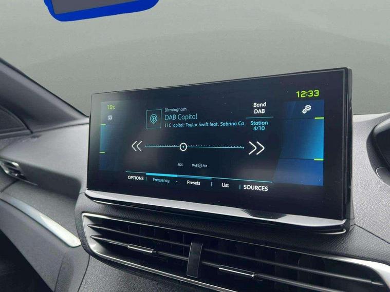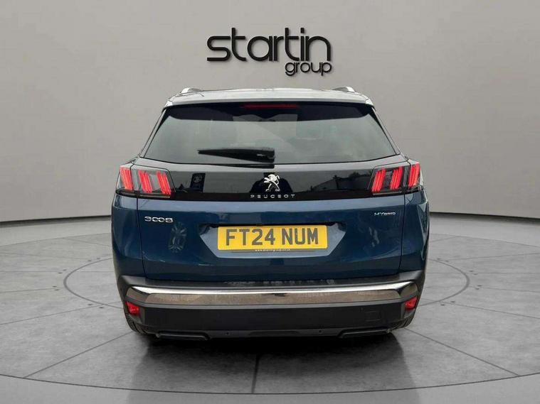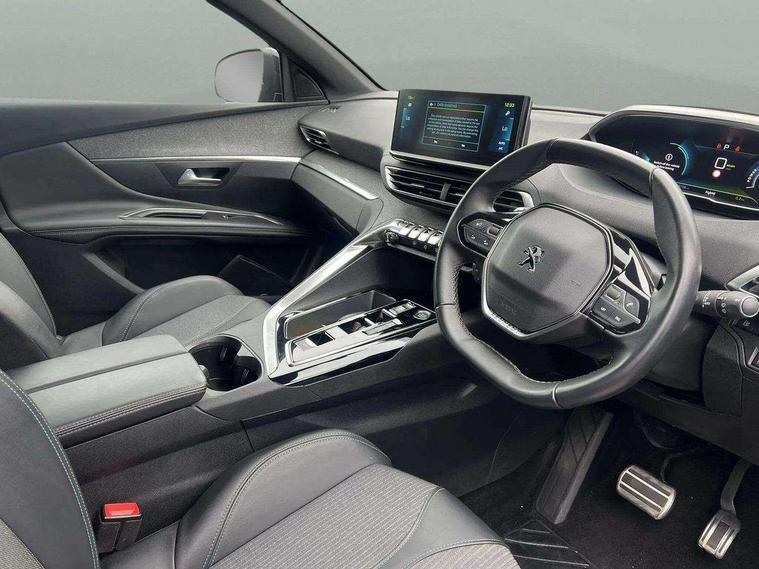 3D connected navigation with 10" HD touchscreen + voice recognition system, Apple car play and Android auto, Bluetooth telephone facility, Drive mode selector (Electric, Hybrid, Sport), Driving Time Warning (DAA1), Emergency services call system, Extended traffic sign recognition, Exterior temperature indicator with ice warning, Front and rear parking sensors, Lane departure warning system, Mirror screen with mirror link, apple carplay and android auto, Multi function trip computer, Peugeot i-cockpit with compact multi-function sports steering wheel, PEUGEOT i-Cockpit with configurable 12.3" Head-up digital instrument panel, PEUGEOT SOS and assistance, Speed limit recognition and recommendation, Deferred charging option, configurable in car or via My PEUGEOT App, Dynamic stability control and electronic anti-skid system, Mode 3 type 2 cable for wallbox charging, 6 speakers radio with mp3 compatible, DAB Digital radio, USB socket, Aluminium front door sills, Aluminium longitudinal roof bars, Automatic hazard light activation upon heavy brake application, Automatic triggered rear windscreen wiper in reverse gear, Black diamond roof, Black rubber side window trim, Black with chrome detailed front wing trim, Body colour door handles, Body colour rear roof spoiler with stainless steel edging trim, Body protectors (bottom of front and rear bumpers + wheel arches + protection at bottom of doors) in black, Chrome frameless 'Classic' grille, Chrome rear bumper facia, Dark tinted rear side windows + tailgate window, Diamond Black door mirror shells, Door mirror mounted LED courtesy floor lighting, Eco LED headlights, Electric folding door mirrors with exterior courtesy LED lighting, Electric operated/heated door mirrors, Front and rear door and sill protectors with polished stainless steel insert, Front bumper lower trim in Silver, Front windscreen wiper with magic wash cleaning system, Gloss black B and C pillar and aerodynamic deflector trim, Gloss black front bumper air scoops, Gloss black rear cluster connecting strip, Gloss black windscreen trim, Headlights left on audible warning, Heated rear windscreen with integrated antenna, HYBRID emblem on front wings and tailgate, LED daytime running lights, LED front indicator, LED rear number plate lighting, LED side indicator lights integrated into door mirrors, LED third brake light, One touch electric front/rear windows with pinch protection, Rear LED Peugeot signature 'Claw Effect' lights with clear lens and scrolling LED direction indicators, Rear side wing doors, Stainless steel door sill scuff plates, Stainless steel roof arches, 1/3 to 2/3 split folding rear seats, 12V Sockets in dashboard, rear cabin and load area, 2 cupholders in front centre console, 2 cupholders in rear armrest, 2 x Rear reading spotlights, 2x Rear coat hooks, 3x Isofix child seat fittings in the front passenger and outer rear seats, 4 Grab handles retractable and damped, Aluminium pedals, Blue ambient lighting for connecting zone, Blue ambient lighting to front door panels, Blue ambient lighting to headup instrument panel, Brumeo fabric trimmed door armrests, Cabin pre-conditioning, Centre front armrest with butterfly wing opening and illuminated storage compartment, Driver seat lumbar adjustment, Driver seat manual adjustment (longitudinal and back rest angle), Dual zone automatic climate control, e-Toggle compact gear selector, Electric power steering with reach and rake adjustable steering column, Fixed boot floor with access to the charging cable storage box, Flocked glovebox interior, Foldable front passenger seat with picnic table, Footwell illumination, Front interior light with 2 reading spotlights and rear interior light with timer, Front passenger seat manual adjustment (longitudinal and back rest angle), Front seat back map pockets, Gear shift indicator, Height adjustable front seats, Illuminated glovebox, Individual left and right controls in boot for seat folding, Leather steering wheel with detail stitch, LED interior lighting in storage spaces and load area, LED roof interior lighting, Rear bench seat with central armrest and ski hatch, Rear centre console ventilation system, Roof lining - Mistral black, Satin chrome dashboard trim, Satin chrome digital instrument panel and touchscreen trim, Satin chrome front door panel recess trim, Satin chrome interior door handles, Satin chrome scorpion's tail and toggle switch trim, Seatbelt not fastened audible and visual alert for front seats, Seatbelt unfastened on the move audible and visual alert for front and rear seats, Sunvisors with illuminated vanity mirrors, Safety Plus Pack - 3008, Visibility pack - 3008, 3x Rear three-point retractable seatbelts with force limiters in the outer rear seats, ABS (Anti-lock Braking System) with EBD (Electronic Brakeforce Distribution) and EBA (Emergency Braking Assistance), Acoustic vehicle alerting system, Adaptive driver and front passenger airbags with passenger airbag deactivation function, Driver and front passenger side airbags, Electric child locking functionality on rear windows and doors, Electric parking brake, Front and rear curtain airbags, Front optimised safety headrests and 3 x rear retractable headrests with height adjustable, Front three point retractable seatbelts with pre tensioners and force limiters, Front ventilated disc brakes and rear disc brakes, Hill start assist, Two tone horn, Automatic door locking when moving off, Electronic immobiliser, key operated exterior door lock from the left hand door, Perimetric and volumetric alarm with lift and tilt sensor, Peugeot Open and Go System, Remote control central locking with two plip keys, Brumeo fabric Dashboard, front and rear door panel finish, 18" Detroit storm grey diamond cut alloy wheels, Michelin e-primacy 225/55 R18 102V class A+ tyres, Puncture repair kit including compressor, sealant cartridge and towing eye,
