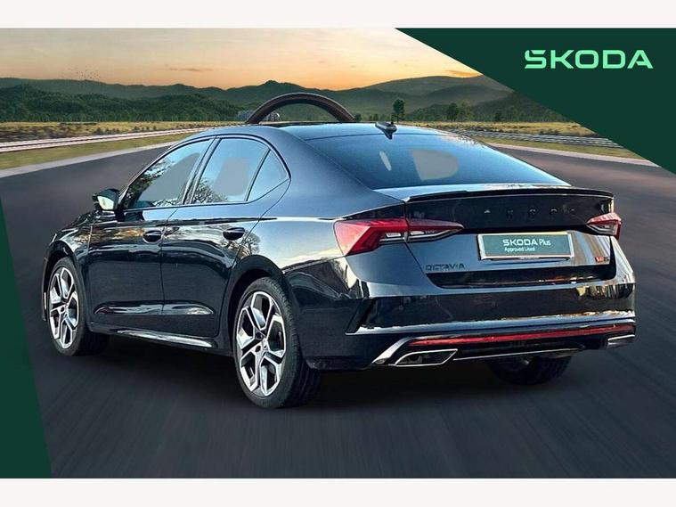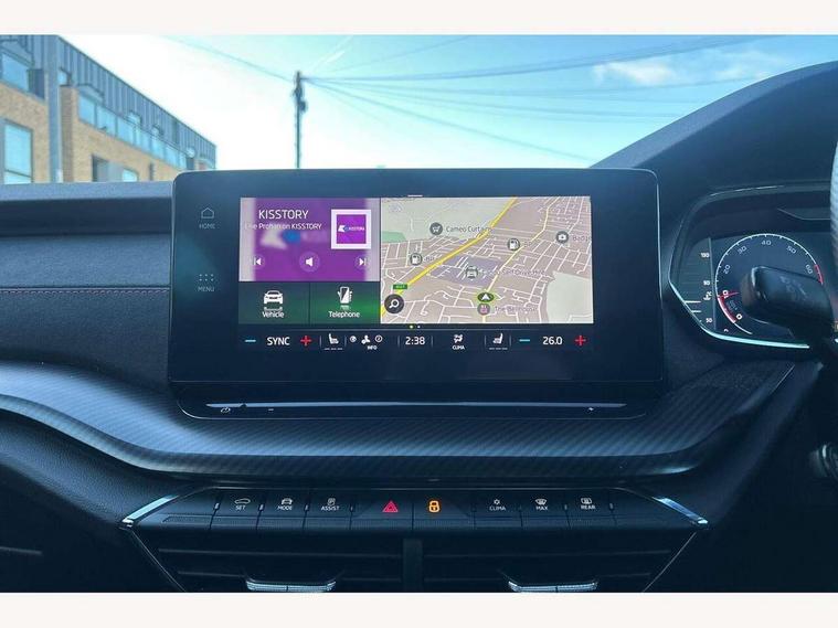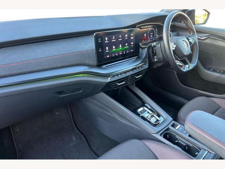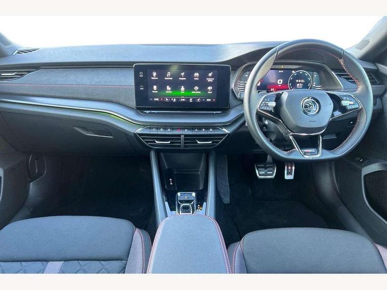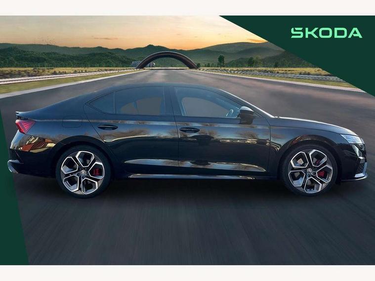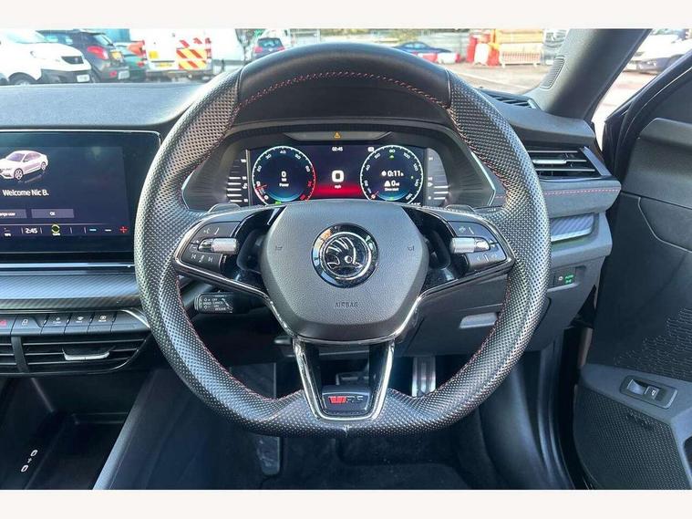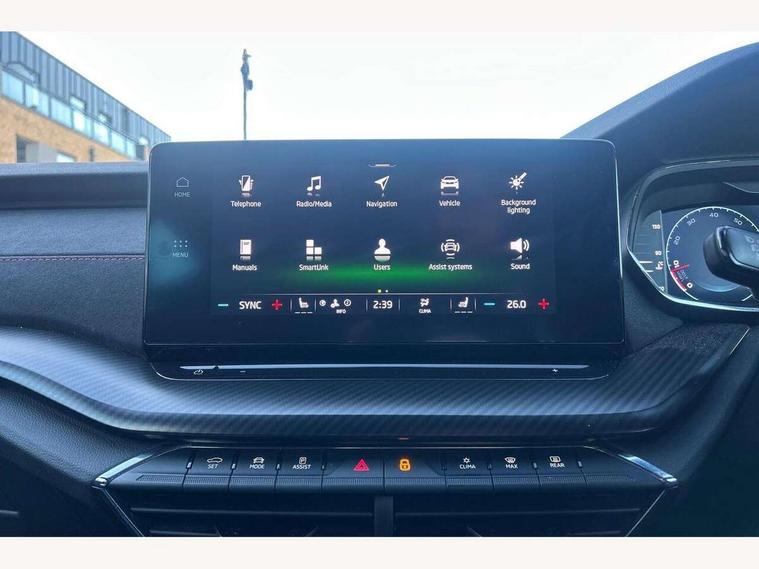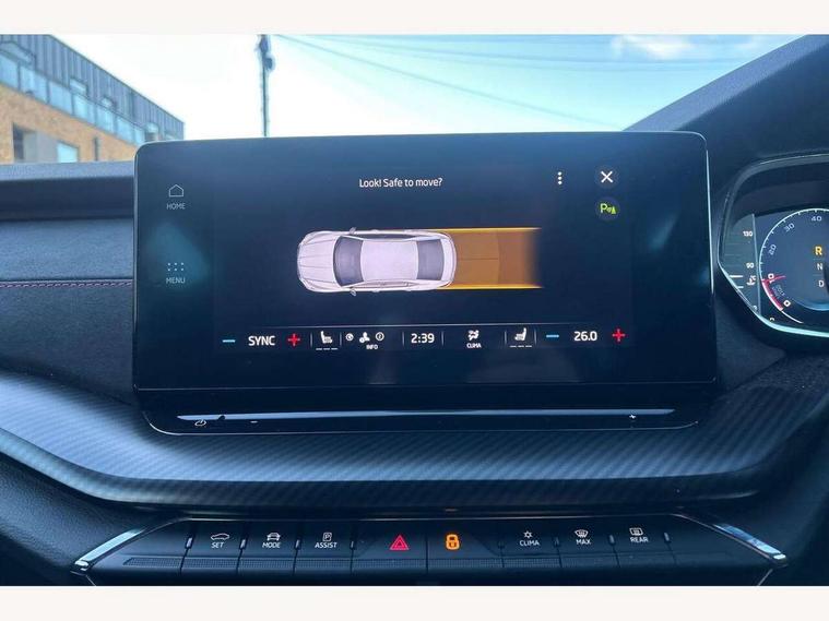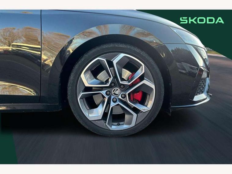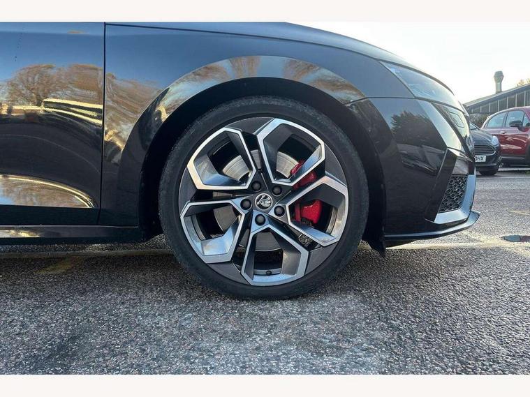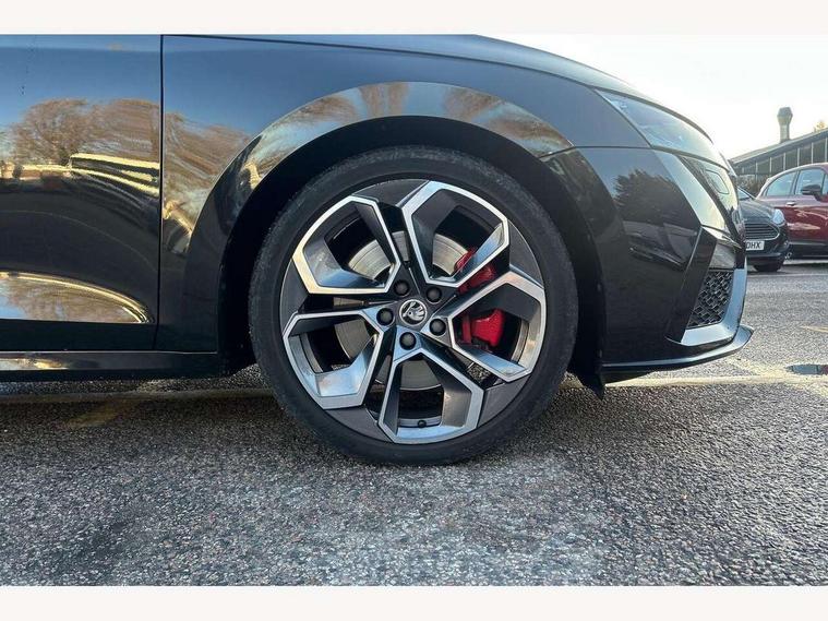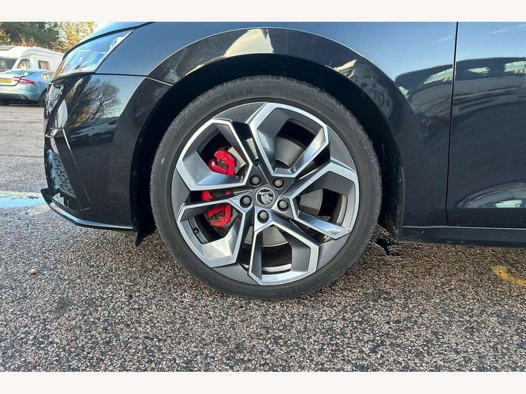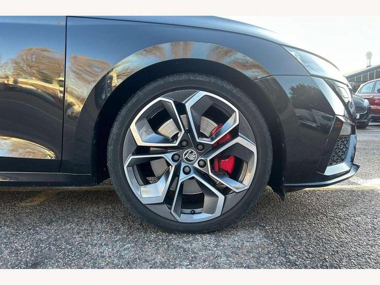 1x USB Type C port in rear view mirror (charging only), 2x USB Type C ports in rear of front centre armrest (charging only), Bluetooth system, Columbus satellite navigation with 10" touchscreen display, eCall emergency system, Front and rear parking sensors with manoeuvre assist, Front assist system, Progressive dynamic steering, Smartlink (includes android auto and mirrorlink), Speed limiter, Turn Assist, Virtual Cockpit - 10.25" digital display, Voice control system, Wireless SmartLink for Apple Car Play, Electronically controlled limited slip differential, Front and rear stabilizers, 2x USB Type C ports (for charging and data transfer), 8 Speakers, DAB Digital radio, Aero front windscreen wipers with intermittent function, Auto dimming rear view mirror, Body colour door handles, Chrome exhaust tailpipes, Door sills with vRS logo, Electric front and rear windows, Exterior gloss black sports styling including front grille, side strip, window surrounds, door mirror and badging, Full LED Matrix headlights with AFS and cornering front fog lights, Headlight washers, Heated rear windscreen, High level third brake light, Ice scraper in fuel cap, LED daytime running lights, Rain and light sensors, Rear fog light on one side, Rear privacy glass, Rear side wing doors, vRS bumpers and lip spoiler, 3 rear headrests, 3 seat bench in 2nd row, 4 foldable roof handles, Aluminium pedals, Black headlining, Black microsuede padded dash panel with red contrast stitching, Chrome inner door handles, Front centre armrest, Front head restraints, Heated front seats, Illuminated air conditioned glovebox, Leather trimmed gearshift lever, Luggage compartment lighting x1 light, Mechanical rear seat release, Parcel shelf - folding, Single front passenger seat, Sunglasses storage, Textile floor mat set, Three spoke leather sports multifunction steering wheel with paddles, Ticket holder, Umbrella in door panel, Unsplit rear bench seat and split folding backrest, LED interior light pack - Octavia, 3 point front/outer rear seatbelts+pre-tensioners, Alarm with interior monitoring, tilt sensor and back up horn, Automatic door unlocking in case of crash, Automatic fuel cut off in case of crash, Automatic warning lights in case of emergency braking, Curtain airbags and front side airbags, Driver and front passenger airbags, Drivers knee airbag, Electronic parking brake, Emergency call and proactive services, ESC including ABS, EBV, MSR, ASR, EDS, HBA, DSR, Front and rear disc brakes, Hill hold control, Hill start assist, ISOFIX on front passenger seat and outer rear seats, Manual rear child locks, Passenger airbag deactivate switch, Red brake calipers, Two tone horn, Tyre pressure monitor, Visual and acoustic seat belt reminder, Warning reflectors in front door, Door locks with immobiliser, Keyless entry and start/stop including rear doors, Remote central locking, Carbon optic decorative inserts, Gloss black air vent surrounds, 19" Altair anthracite alloy wheels,