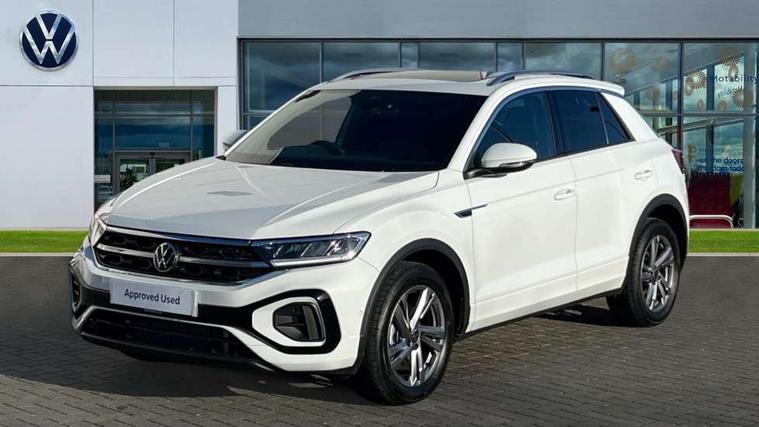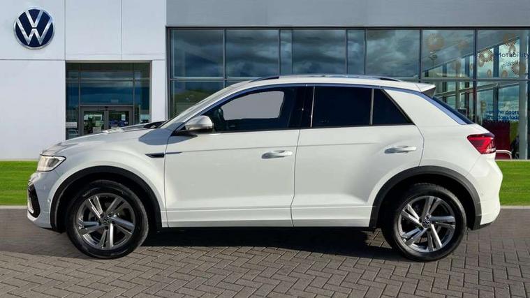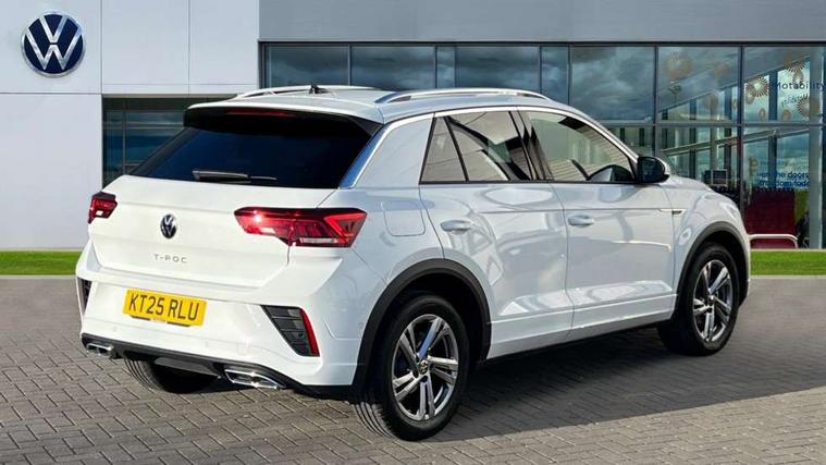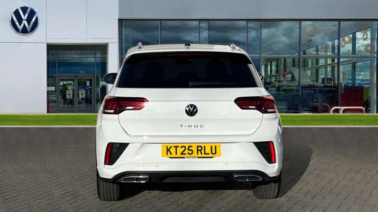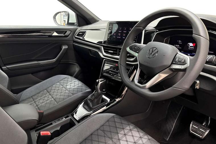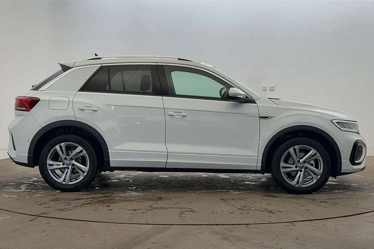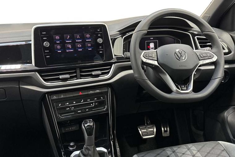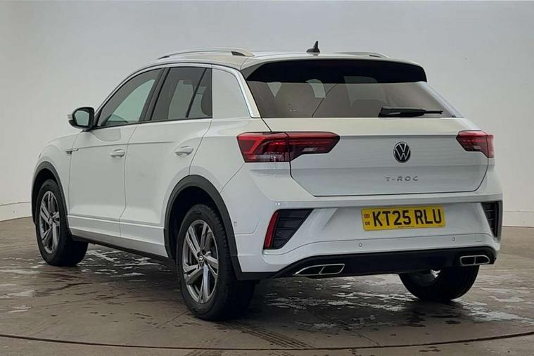 10.25" Digital cockpit pro, Advanced driver attention and drowsiness monitor, Emergency call service, Lane keeping system Lane Assist, Mobile phone interface, Modified key software - reduce switch off time for key status change to Long no motion, Online services, Park assist including front and rear parking sensors, Service interval indicator, Tailgate/trunk lid release from outside, Think blue trainer driver tips and journey analysis, Warning sound and light for front seatbelts unfastened, Wireless app connect, Battery regeneration during braking, Start/stop function with battery regeneration, DAB Digital radio, Diversity antenna for FM reception, Front and rear 6 speakers, Music playback - MP3, WMA and AAC files, Premium USB cable in choice of either Apple or Android smartphone compatibility, SD card slot, Simultaneous pairing of 2 compatible mobile devices, Title and cover art display, We Connect and We Connect Plus functionality, Auto dimming interior rear view mirror, Automatic hazard lights activation under emergency braking, Automatic headlight control with LED separate daytime running lights with coming/leaving home function, Body coloured exterior mirror housings and door handles, Electrically adjustable and heated door mirrors, Extended roof spoiler, Exterior mirrors aspherical on driver side, convex on front passenger side, External USB type C socket and charging sockets, Front windscreen wiper with intermittent wipe and 4 position delay, Heated rear window, LED 3rd brake light, LED rear combination lamps, LED rear number plate lights, Power windows with comfort operation and circuit breaker, Privacy glass for rear side windows and rear window, R-Line design body coloured bumpers, Rain sensor, Rear exhaust tailpipe, Rear fog light on one side and reversing lights on both sides, Rear side wing doors, Rear wash/wipe with intermittent wipe setting, Remote electrically foldable door mirrors, puddle lights and reverse activated passenger's door mirror, 12V power socket in centre console, 3 rear head restraints, 3 seat bench in 2nd row, 4 load lashing points in luggage compartment, Air care climatronic air conditoning system with active combination filter and 2-zone temperature control, Black roof lining, Chrome plated decorative trims, Chrome plated radiator grille inserts, air vent surrounds and light switch surrounds, Door and side trim panel with leatherette insert, Front + rear carpet mats, Front centre armrest, Front cupholders x 2, Front footwell illumination, Front reading light, Front scuff plates with R Line logo, Front seat back storage pockets, Glove compartment door with light, Instrument lighting, white adjustable panel illumination, Interior ambient lighting and surround lighting, Interior light delay, Isofix child seat preparation, Leather gearshift handle, Load-through provision with cup holder when folded down ('Unsplit rear seat bench, split folding backrest, with centre armrest), Luggage compartment lighting, Single front passenger seat, Stainless steel pedals, Storage compartment in left and right luggage area, Storage compartment in rear doors, Storage compartments in driver and front passenger doors, Sunvisors with illuminated vanity mirrors, Variable boot floor, height adjustable and removable, Driver assistance pack without proactive passenger protection - T-Roc, 3 point height adj front seatbelts + pretensioners, 3 point seatbelts in outer rear with ECE label, ABS, Child locks on rear doors, City emergency braking and pedestrian monitoring, Driver and front passenger airbag with front passenger airbag deactivation, Driver and front passenger safety-optimised head restraints, Drivers seatbelt reminder, Electronic parking brake, Electronic Stability Control (ESC) inc EDL (Electronic Differential Lock) and ASR (Traction Control), Front and rear passengers curtain airbag system including front side airbags, Hill start assist, Predictive pedestrian protection, Rear disc brakes, Two tone horn, Tyre pressure loss indicator, Volkswagen roadside assistance, Piano black decorative inserts in dashboard and front door trim panels, Trims for alloy wheels,