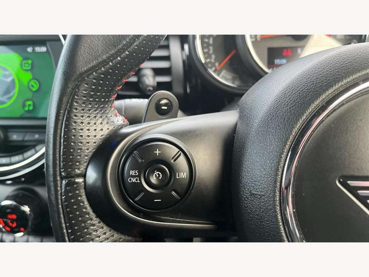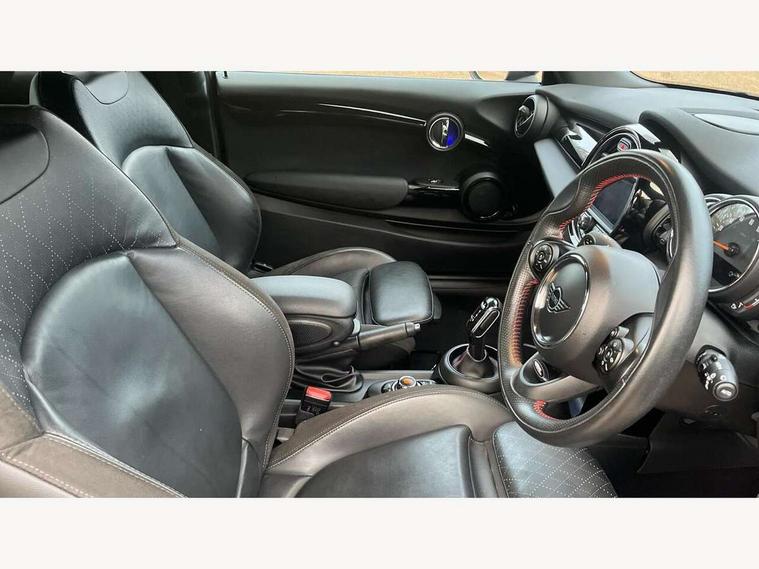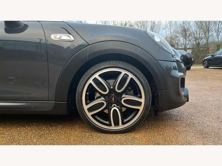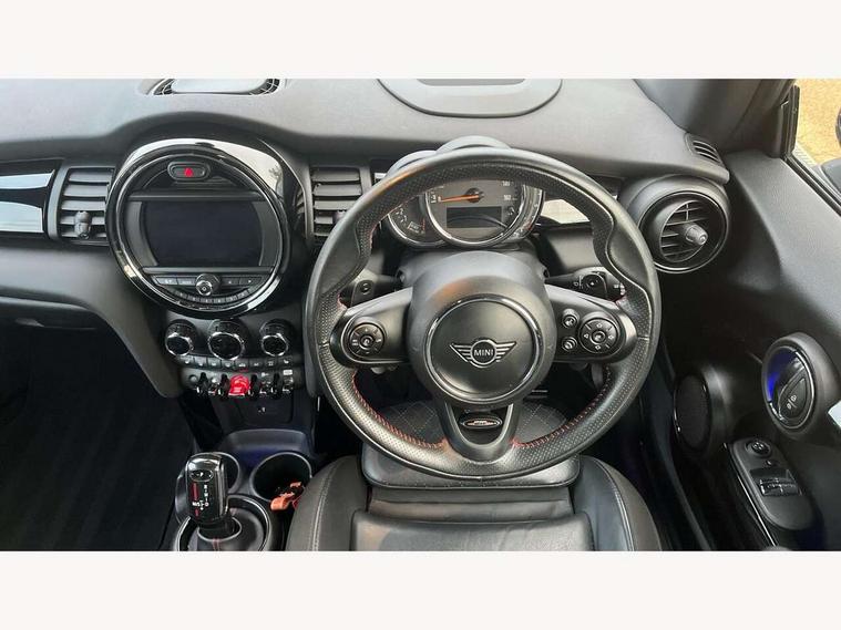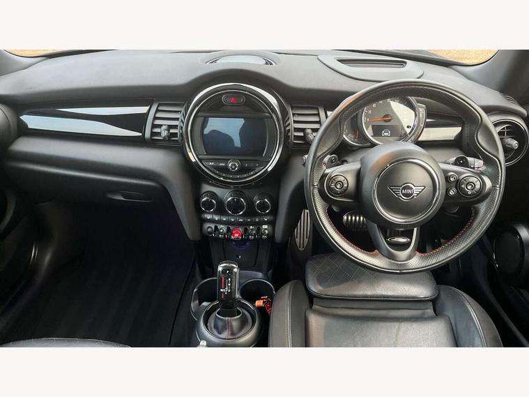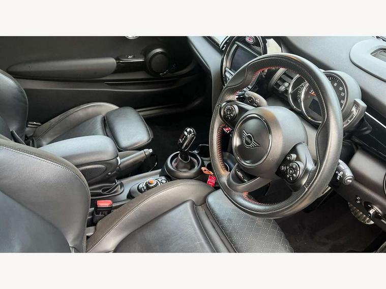 Automatic start/stop function with brake energy recuperation, Compatible mobile phone bluetooth with audio streaming, Electro-mechanical speed dependant steering assistance, Instrument cluster, Mini E-call, MINI TeleServices, On board computer, Service interval indicator, Double Vanos system, Fully variable valve control, High precision injection, Performance Control, Steptronic sport transmission with double clutch and steering wheel paddles, 6.5" touchscreen with LED ring, FM tuner and DAB digital radio, Automatic headlight activation switch, Bonnet scoop, Chrome border honeycomb structure radiator grille with S badge, Chrome plated fuel cap, Dynamic brake lights, Electric front+rear windows, Heated rear window, Heated windscreen washer jets, John Cooper Works - aerodynamic kit (front and rear apron, spoiler), front and rear sport bumpers and part-painted side sills with door sill finishers, John Cooper Works rear spoiler, LED headlight with closed ring and daytime driving lights, Metal door sill strips with Cooper S imprint, Model logo Cooper S on right of tailgate, Rain sensor window wipers, Rear fog lights, Rear LED lights with union jack design, Rear window wiper, Side scuttle panel with integrated indicator, Sun/heat protection glass, Two central exhaust tailpipes with chrome finisher, White indicator lenses, 12V Accessory socket in centre console, 4 lashing eyes in luggage compartment, 60/40 split folding rear seat, Anthracite headlining, Chrome interior highlights, Cupholders, Front and rear head restraints, Front and rear isofix with front passenger airbag deactivation, Glove compartment, Height and length steering column adjustment, Interior lighting with 12 basic colours selectable via toggle switch in roof, John Cooper Works leather steering wheel with contrasting stitching in Chilli Red with John Cooper Works logo, John Cooper Works Logo in seat, Leather gearshift lever and handbrake gaiters, LED reading lights, vanity mirror lights, front foot well light and spotlight on front seats, Manual air conditioning, Mechanical seat adjustment, driver seat height adjust, forward/back and front seats backrest, Mini logo projection on floor from drivers exterior mirror, Multifunction steering wheel, Storage compartments in doors, Storage pocket on back of front seats, Sunvisors with vanity mirrors, 3 point seatbelts on all four seats, 6 Airbags - front, side, head and seat belt tensioners, Anti-lock braking system (ABS), DSC - Dynamic Stability Control, Front and rear disc brakes, Hill start assist, Two tone horn, Tyre pressure monitoring system, Alarm system with tilt sensor, monitoring doors, bonnet interior and tailgate, Electronic vehicle immobiliser, Start/stop toggle with keyless go, Tool kit,