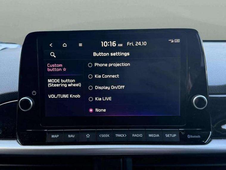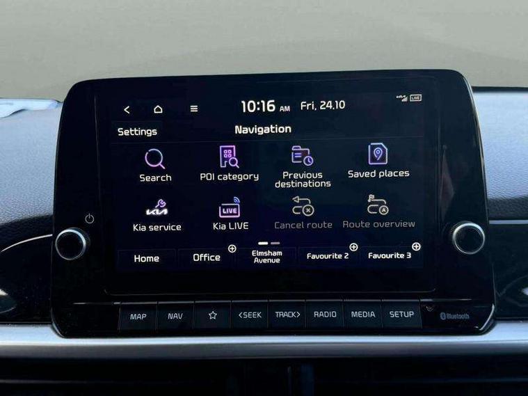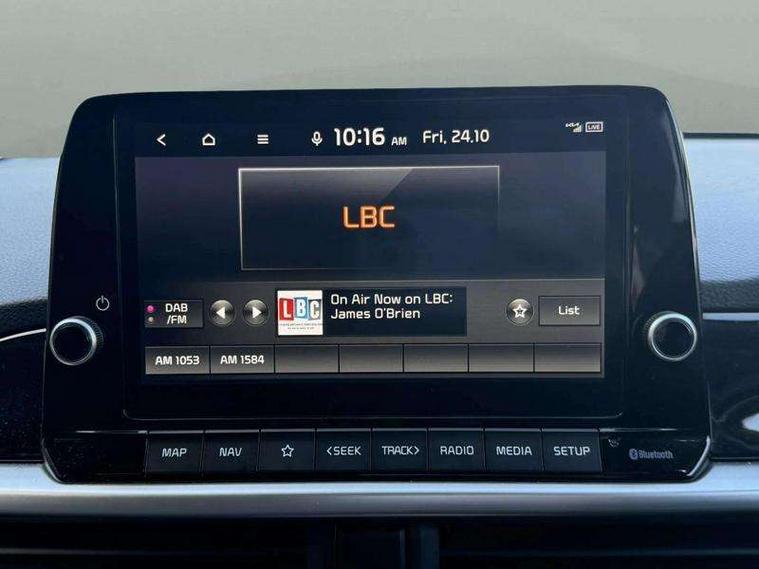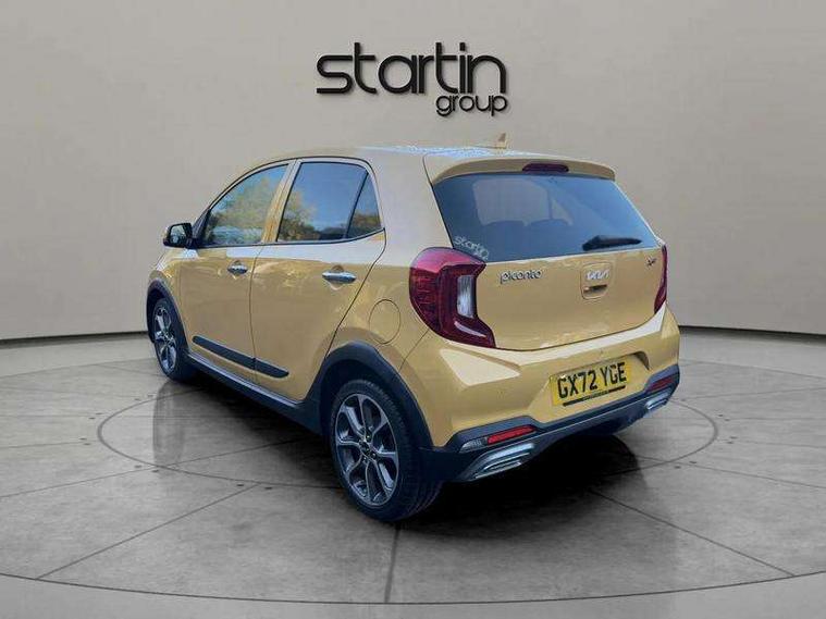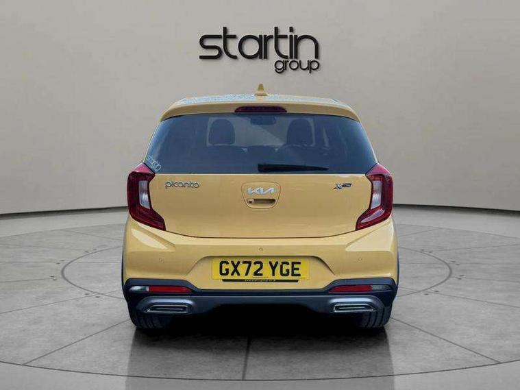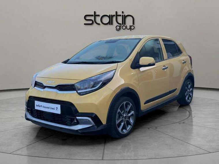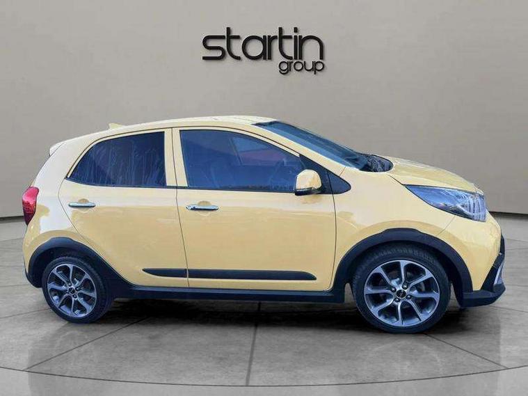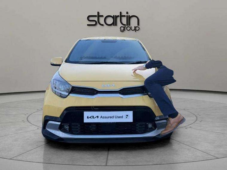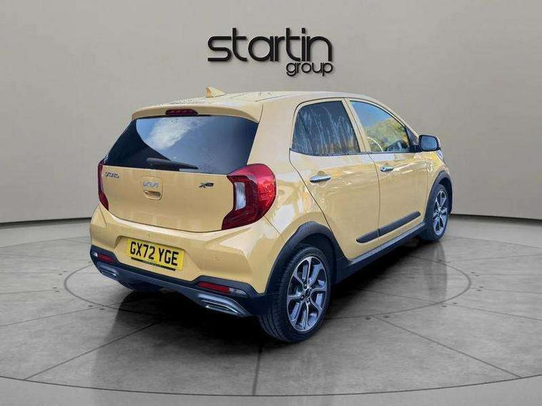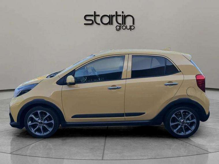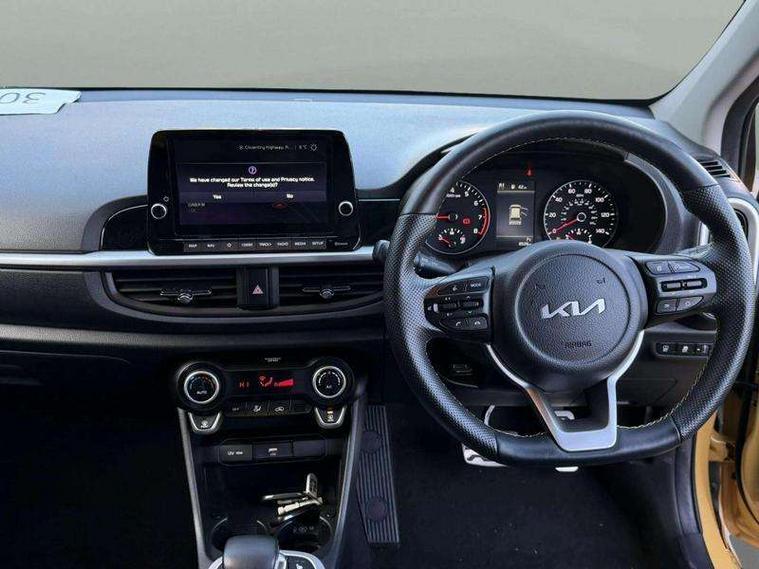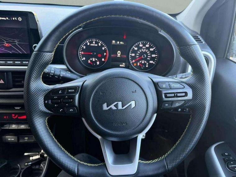 8" touch screen satellite naviagtion with RDS and DAB with telematics, Apple car play/Android Auto with voice control, Cruise control + speed limiter, Emergency call service, Emergency stop signalling system, External temperature gauge, Kia Connect (UVO), Motor driven power steering, Rear parking sensors, Reversing camera system with dynamic guidelines (Integrated into centre fascia screen), Tachometer, Trip computer, Wireless Smartphone charger, 6 speaker audio system, Bluetooth with music streaming, Steering wheel mounted controls, USB ports for connection of a media device, Automatic headlight control system, Bi-function projection headlights, Black beltline mouldings, Black grille with silver surround, Black side sill moulding, Black wheel arch cladding, Body colour B pillars, Body colour bumpers, Body coloured mirrors and chrome exterior handles, Day/night rear view mirror, Electric adjustable/heated/folding door mirrors with LED indicators lights, Front and rear bumpers with silver skid plates and twin exhaust, Front and rear electric windows with drivers's auto up/down function, Front fog lights, Headlamp levelling, Heated rear window, High mount brake light, LED daytime running lights, LED rear fog lights, LED rear lights, Privacy glass - Rear windows and tailgate, Rain sensor, Rear side wing doors, Rear wash/wipe, Speed variable front wipers, Tinted glass, Visible VIN plate, Welcome and follow-me home light functionality, 1 x rear coat hook, 12V power point front, 3 seat bench in 2nd row, 3 x passenger assist grips, 60/40 split/folding 2nd row of seats, All round height adjustable headrests, Automatic air conditioning, Centre Console with Storage Box and Sliding Armrest, Cupholders in centre console, D-cut steering wheel with green stitching, Driver and front passenger sunvisors with driver's side illuminated vanity mirrors, Driver seat height adjust, Dual Height Luggage Area Floor, Faux leather upholstery, Front cabin lights, Glovebox, Heated front seats, Heated steering wheel, ISOFIX Child seat top tethers and anchor fixings, Leather trimmed steering wheel and gearshift, Luggage area light, Luggage area parcel shelf, Metal pedals, Passenger front seatback pockets, Satin chrome interior door handles, Silver and green accents on door armrests, lower centre console trim and air vents, Single front passenger seat, Slide/reclining front seats, Tilt adjustable steering wheel, Advanced Driver Assistance Pack - Picanto, 3x3 point rear seatbelts, ABS/EBD, Automatic unlocking of doors in case of impact, Dual front airbags, ESC + BAS + VSM + HAC, Front passenger airbag cut-off switch, Front seatbelt height adjusters, Front seatbelt pretensioners + load limiters, Hill hold control, Knee airbags, Rear child proof door locks, Seatbelt warning, Side impact protection, Torque vectoring brake based and straight line stability (SLS), Traction control, Twin curtain airbags, Twin front side airbags, Tyre pressure monitoring system, Anti theft alarm, Engine immobiliser, Locking wheel nuts, Smart key with engine start/stop button, 16" alloy X-Line wheels, Tyre mobility kit,