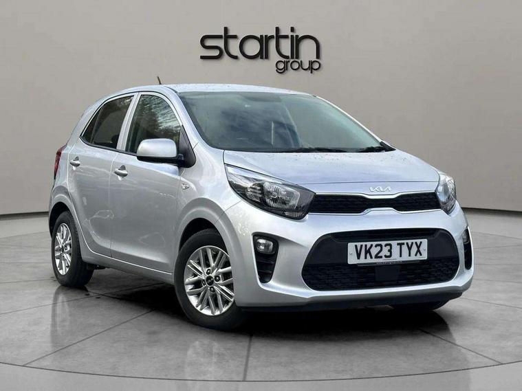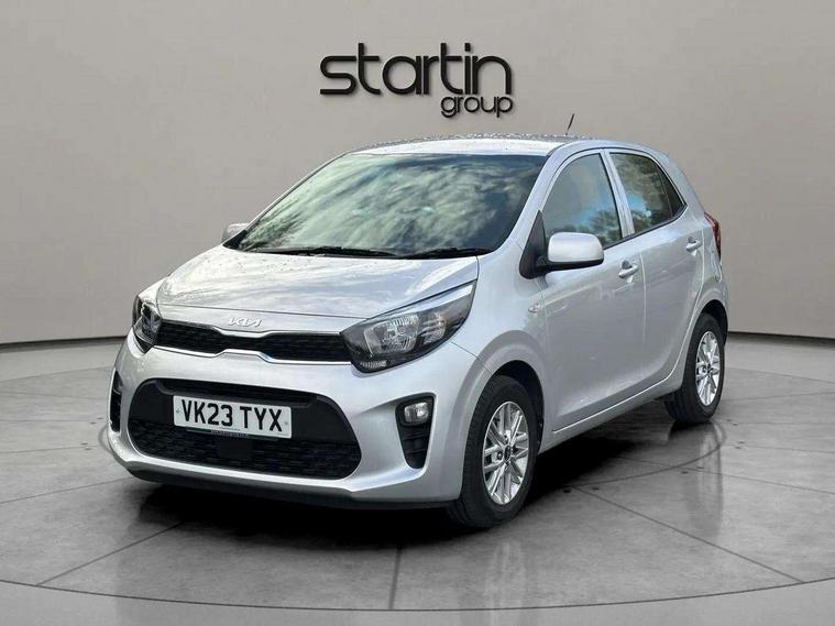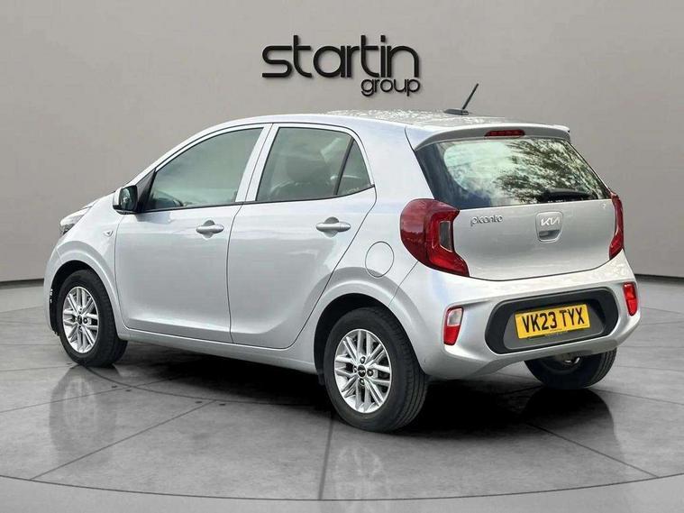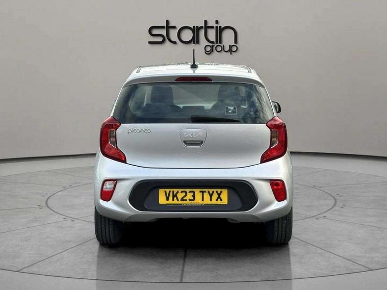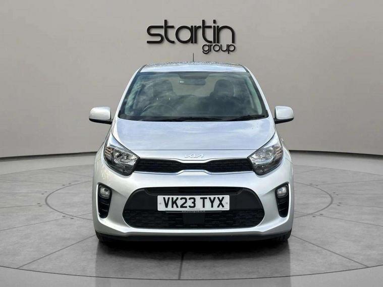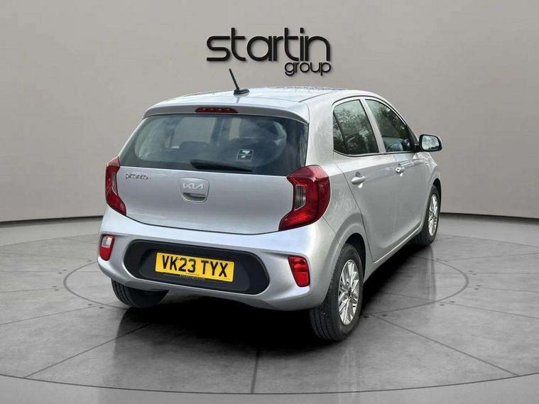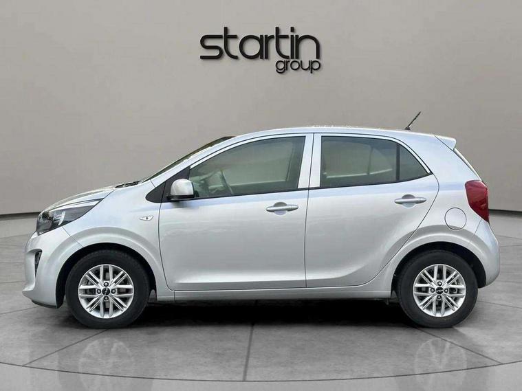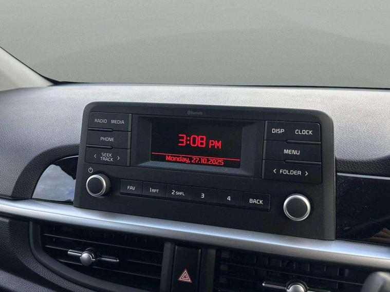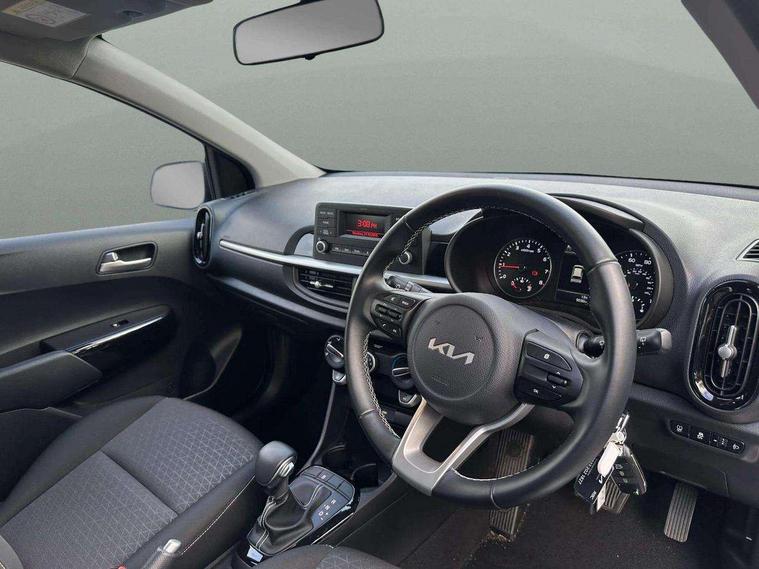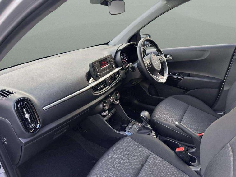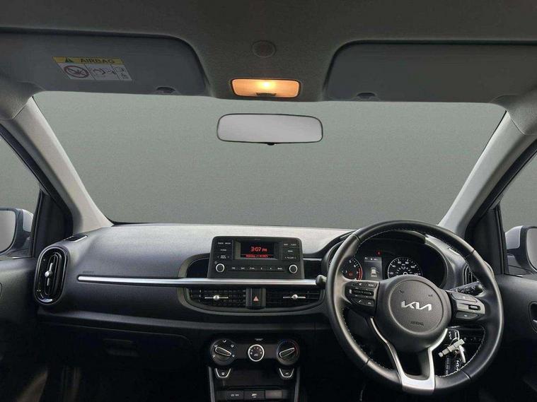 3.8" monochrome audio display with RDS and DAB, Emergency call service, Emergency stop signalling system, External temperature gauge, Motor driven power steering, Tachometer, Tailgate, Trip computer, 4 speaker audio system, Bluetooth with music streaming, Steering wheel mounted controls, USB ports for connection of a media device, Automatic headlight control system, Black radiator grille with chrome surround, Body colour bumpers, Body colour mirrors and door handles, Day/night rear view mirror, Daytime running lights, Electric adjustable heated door mirrors, Front and rear electric windows with drivers's auto up/down function, Headlamp levelling, Heated rear window, High mount brake light, MFR - Multi Focus Reflector halogen headlights with black bezel, Rain sensor, Rear fog lights, Rear side wing doors, Rear wash/wipe, Speed variable front wipers, Tinted glass, Visible VIN plate, Welcome and follow-me home light functionality, 1 x rear coat hook, 12V power point front, 2 seat bench in 2nd row, 3 x passenger assist grips, 60/40 split/folding 2nd row of seats, All round height adjustable headrests, Cupholders in centre console, Driver and front passenger sunvisor with vanity mirror, Driver seat height adjust, Front cabin lights, Glovebox, High gloss lower centre fascia trim, door armrest and air vents, ISOFIX Child seat top tethers and anchor fixings, Leather trimmed steering wheel and gearshift, Luggage area light, Luggage area parcel shelf, Manual air conditioning, Passenger front seatback pockets, Premium cloth upholstery, Silver paint finished interior door handles, Single front passenger seat, Slide/reclining front seats, Tilt adjustable steering wheel, Advanced Driver Assistance Pack - Picanto, 2 x 3-point rear seatbelts, ABS/EBD, Automatic unlocking of doors in case of impact, Dual front airbags, ESC + BAS + VSM + HAC, Front passenger airbag cut-off switch, Front seatbelt height adjusters, Front seatbelt pretensioners + load limiters, Hill hold control, Knee airbags, Rear child proof door locks, Seatbelt warning, Side impact protection, Torque vectoring brake based and straight line stability (SLS), Traction control, Twin curtain airbags, Twin front side airbags, Tyre pressure monitoring system, Anti theft alarm, Engine immobiliser, Folding key, Locking wheel nuts, Remote central door locking, 14" alloy wheels, Tyre mobility kit,